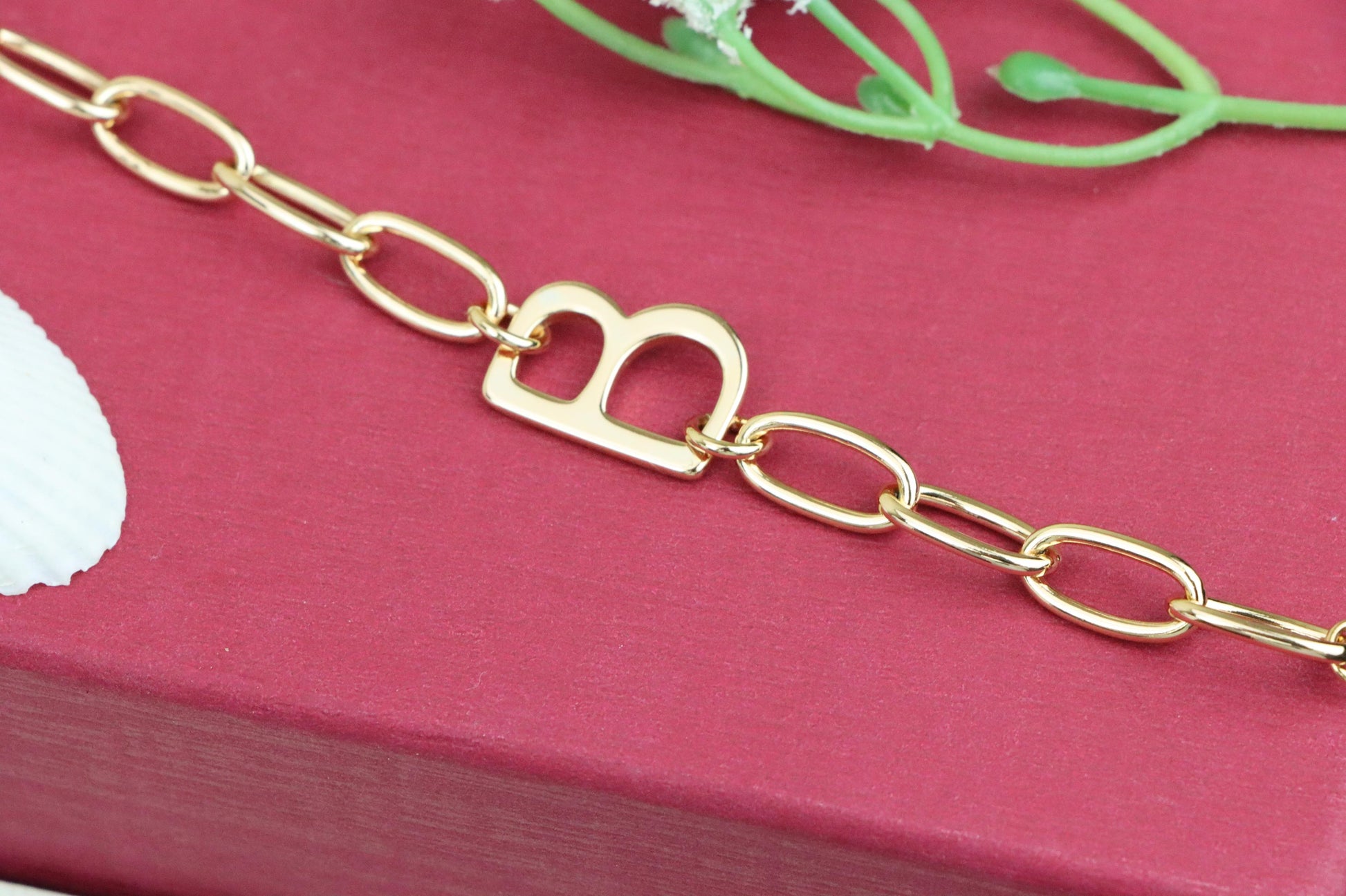 Rose Gold Chain Bracelet with 'B' Initial Charm for Women, XPBL1129