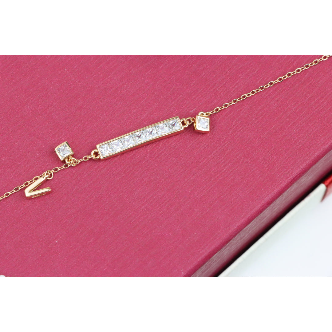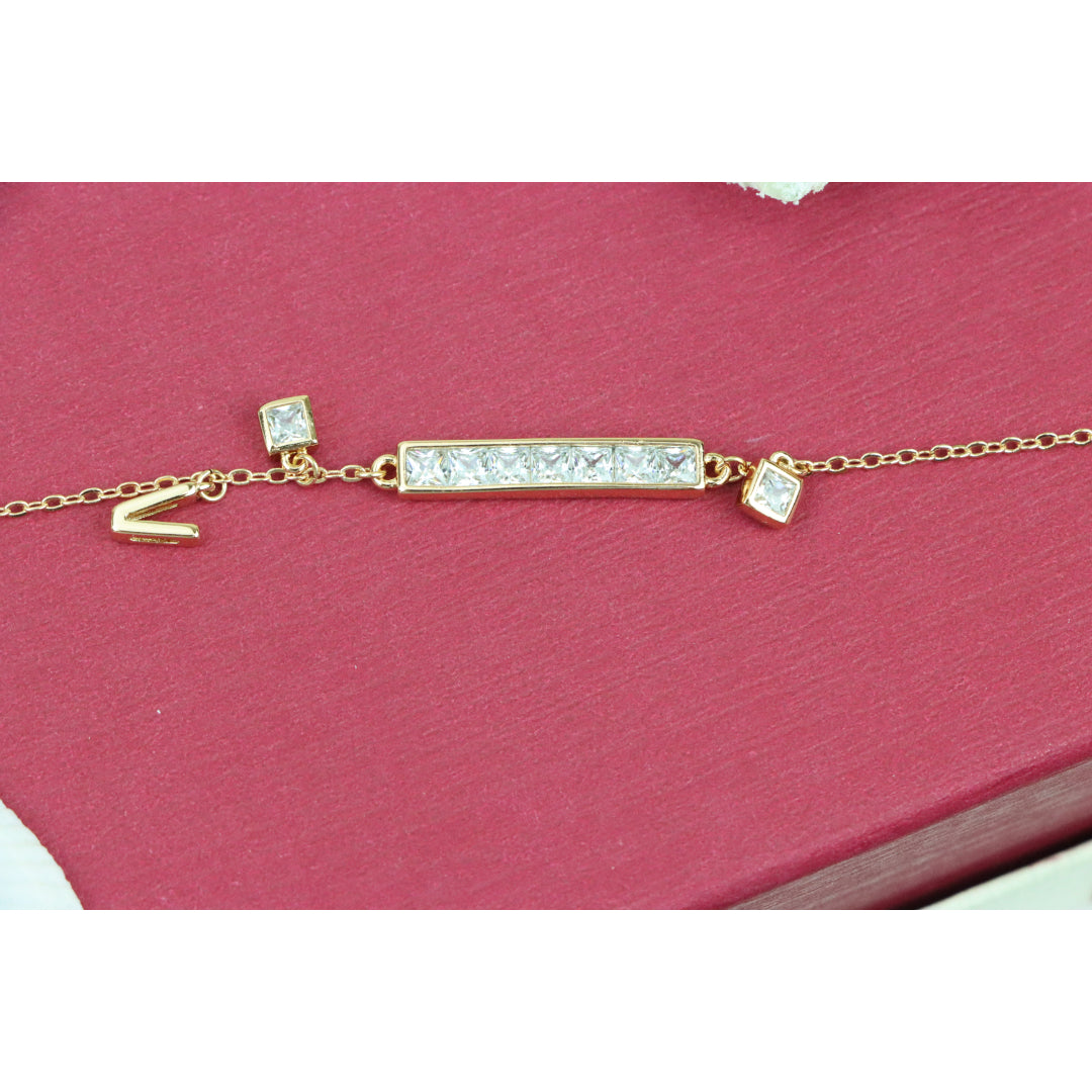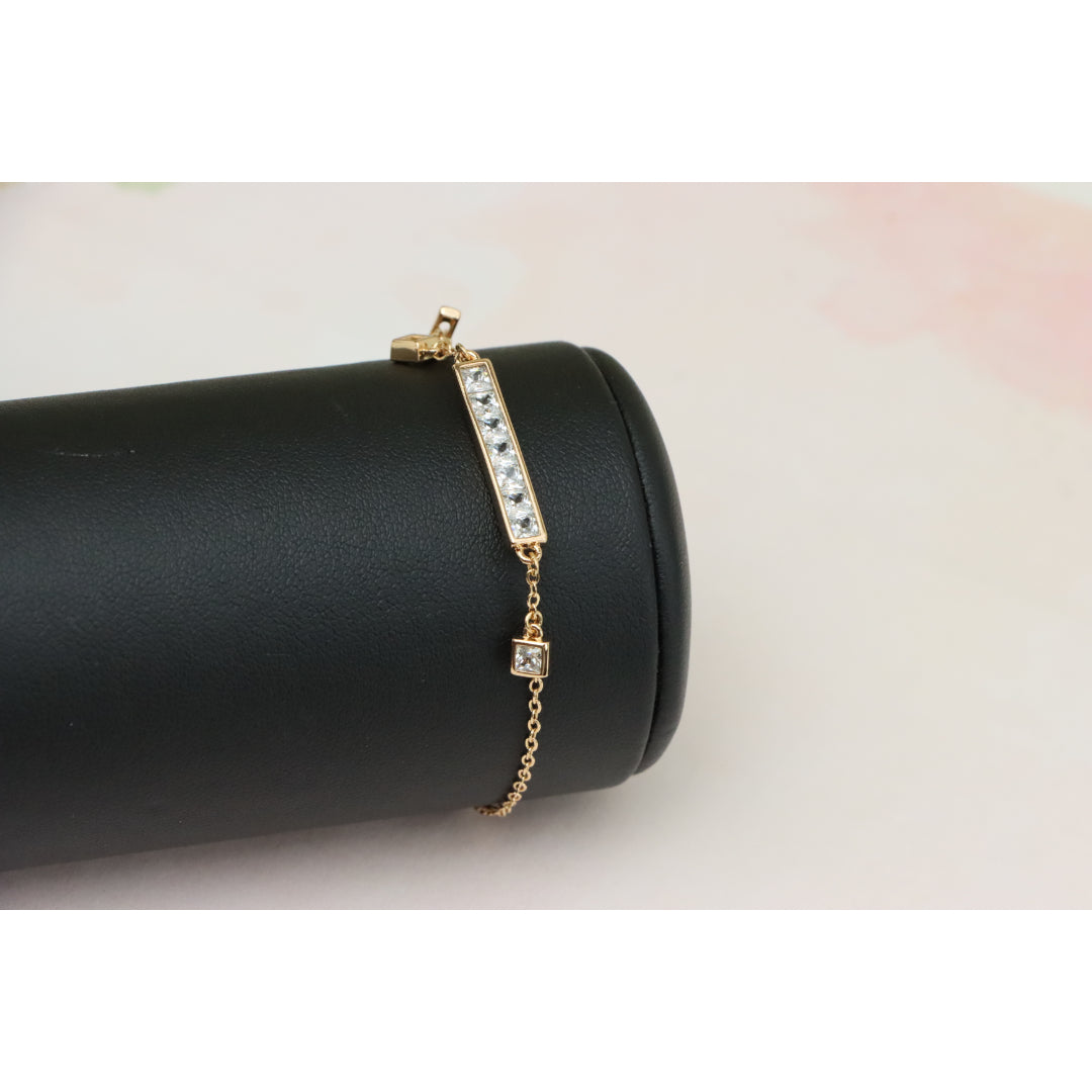 Rose Gold Chain Bracelet with Bar and CZ Charm, Adjustable Fit, XPBL0756