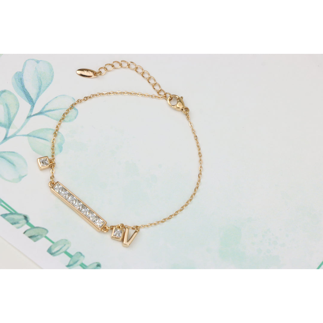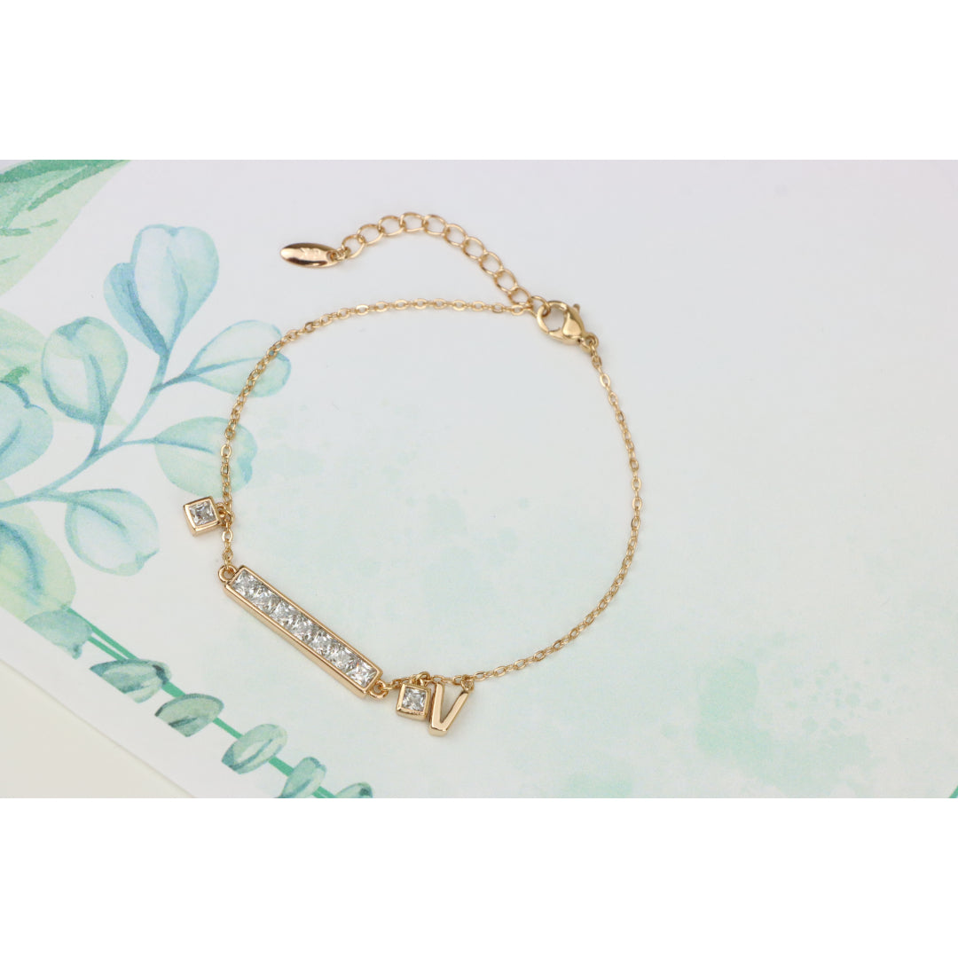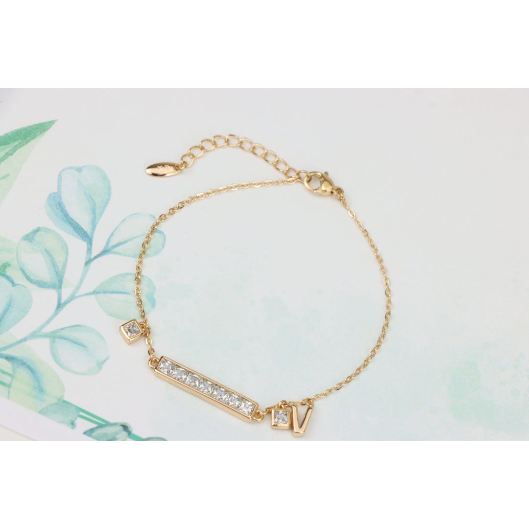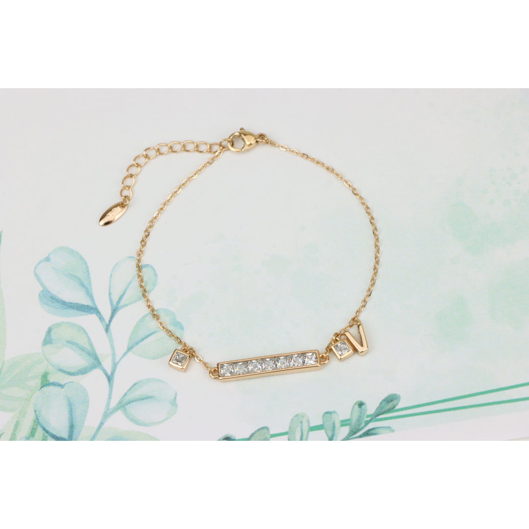 Rose Gold Chain Bracelet with Bar and CZ Charm, Adjustable Fit, XPBL0756