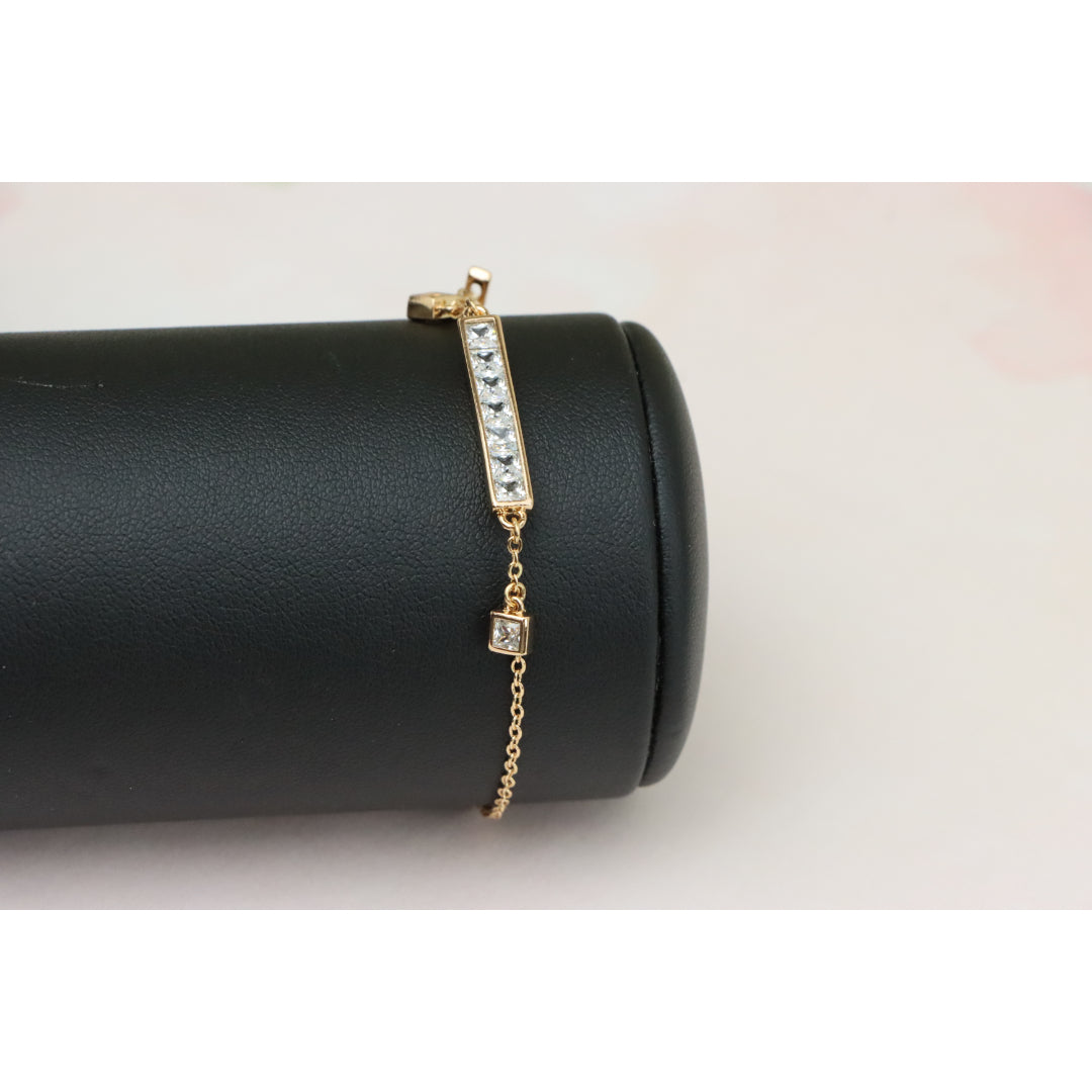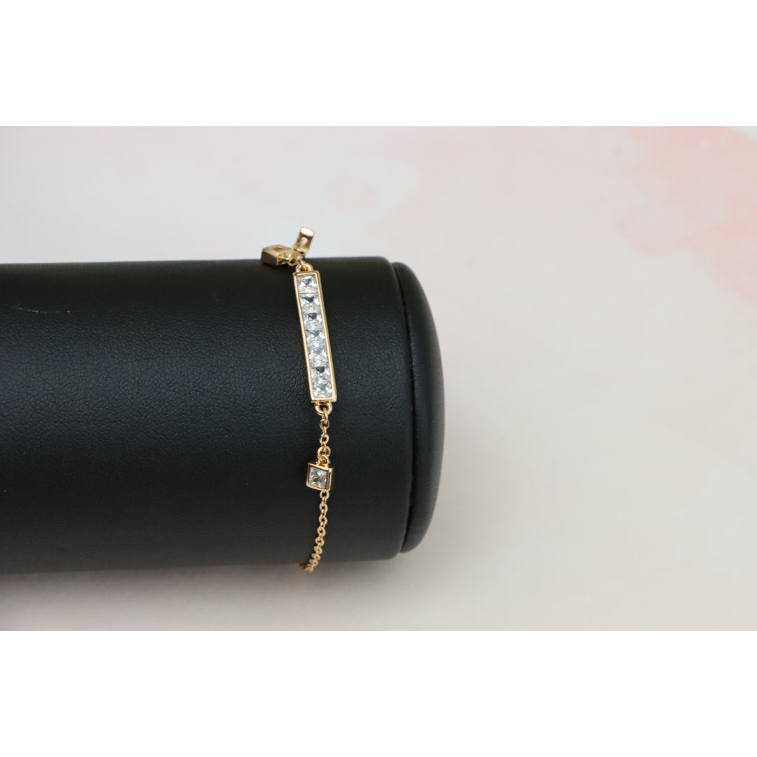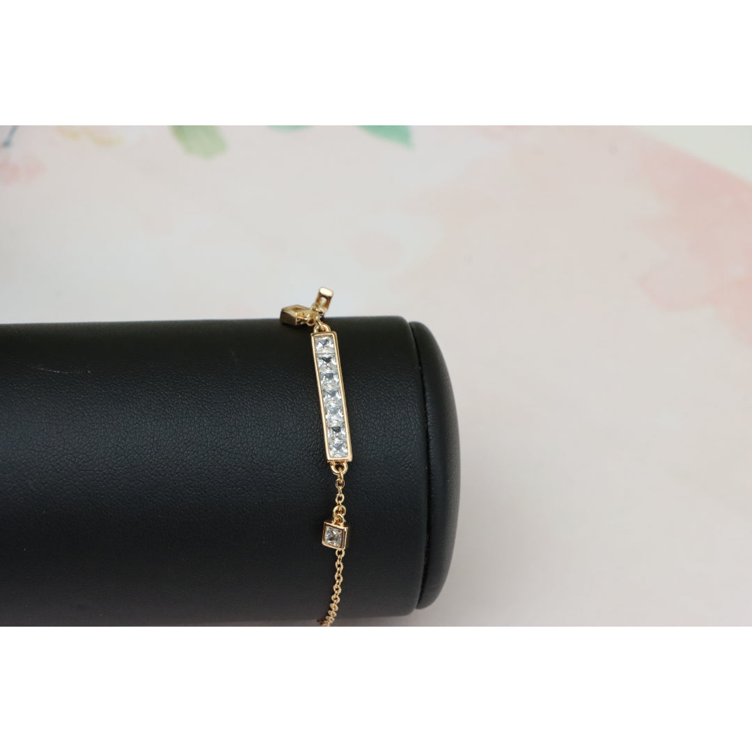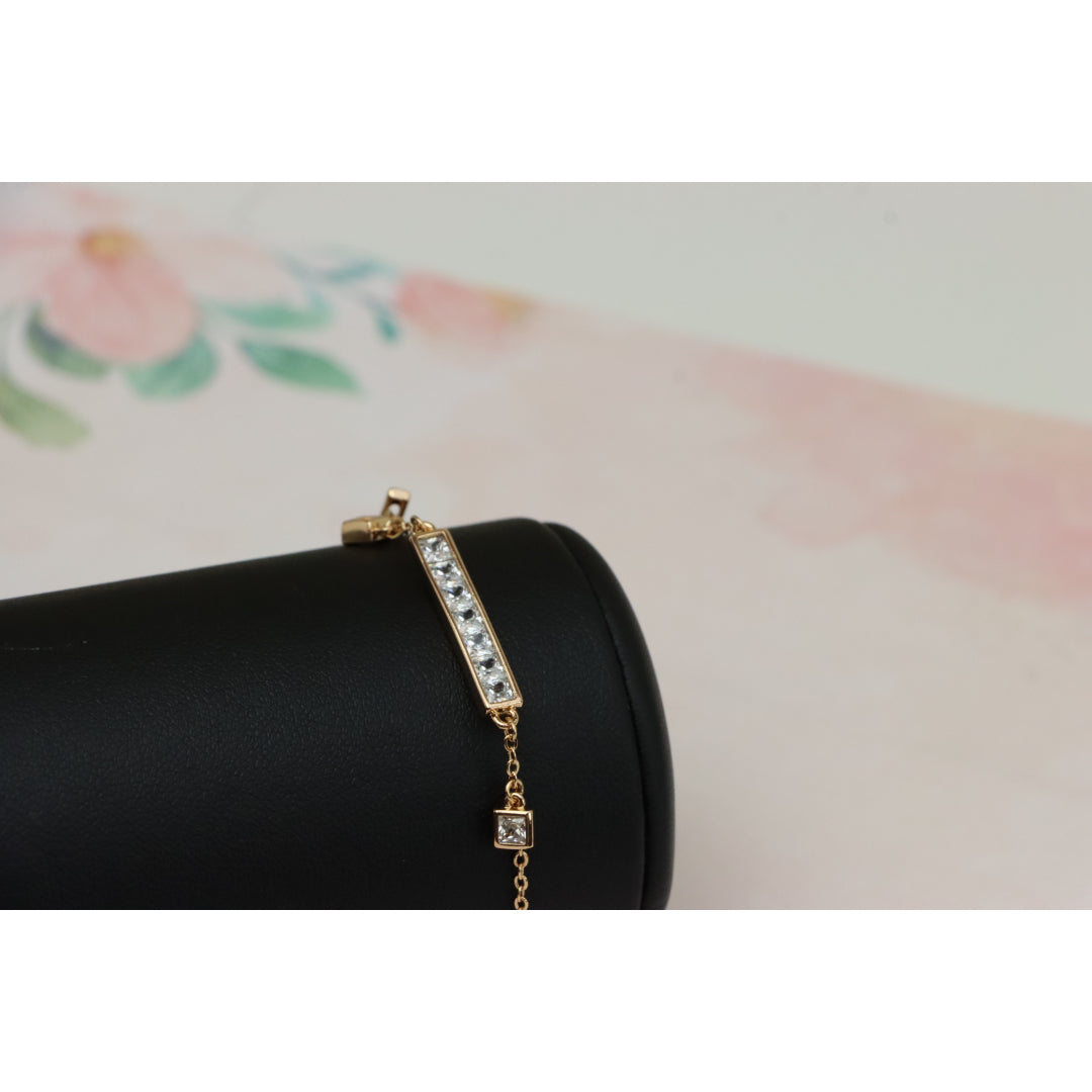 Rose Gold Chain Bracelet with Bar and CZ Charm, Adjustable Fit, XPBL0756 (2076-5)