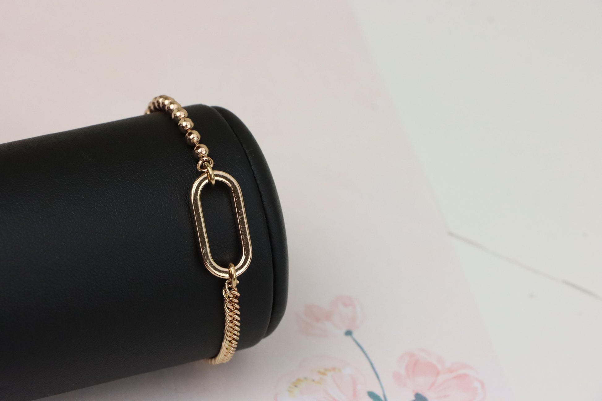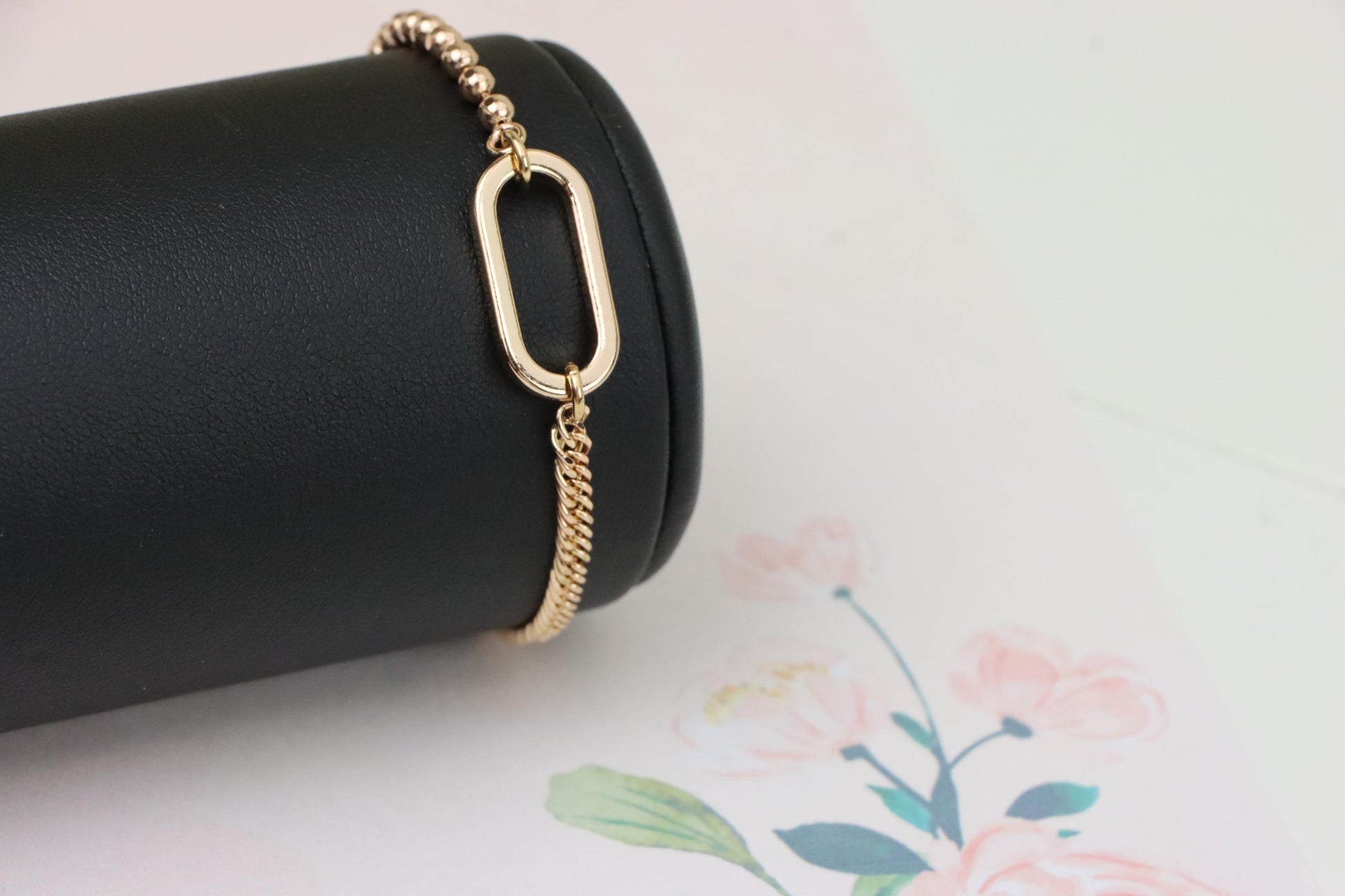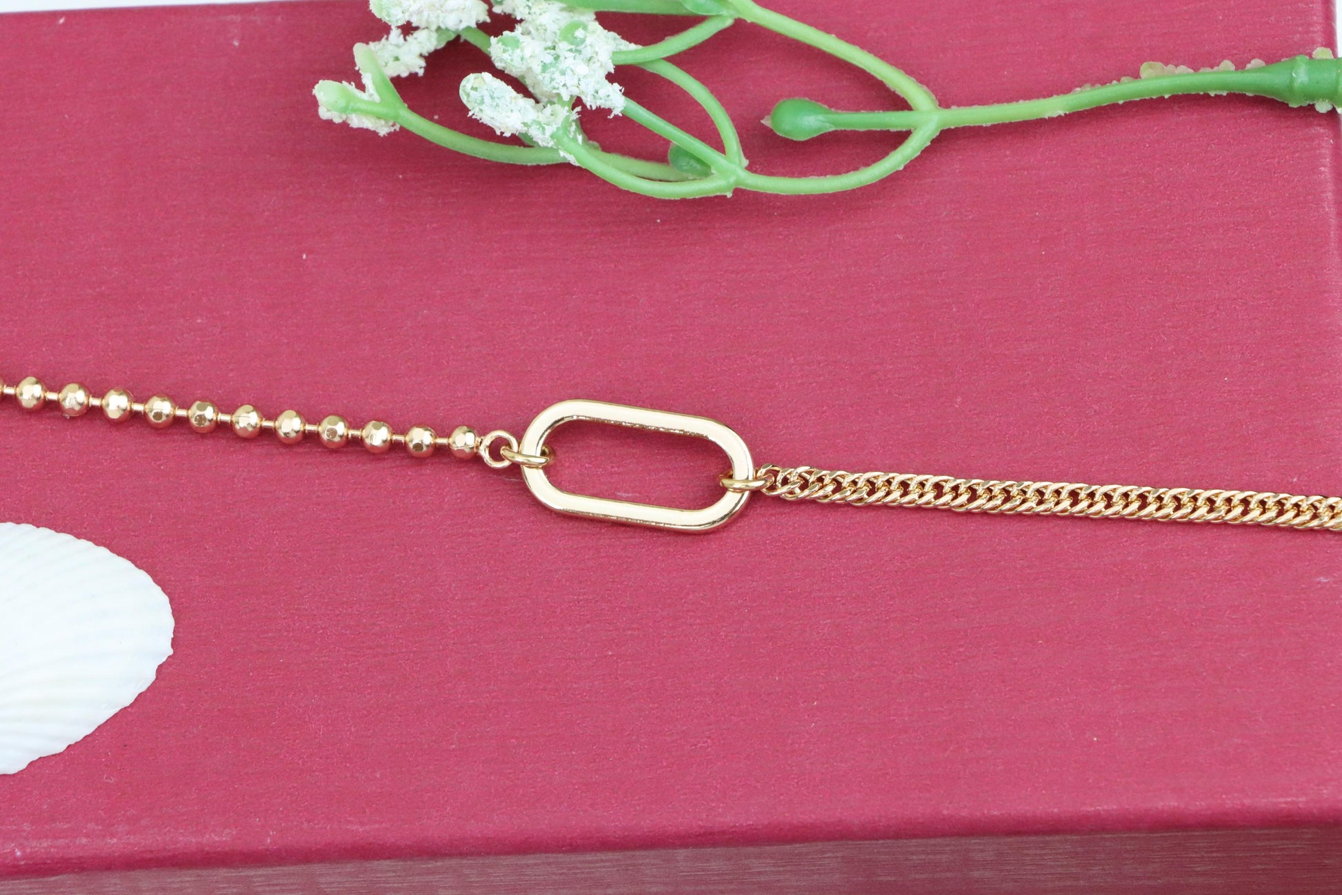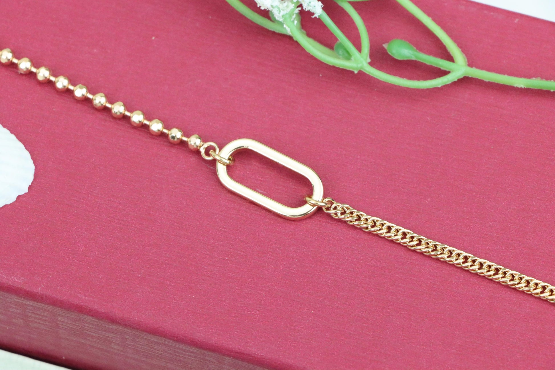 Rose Gold Chain Bracelet with Oval Link Center, Elegant Finish, XPBL0996