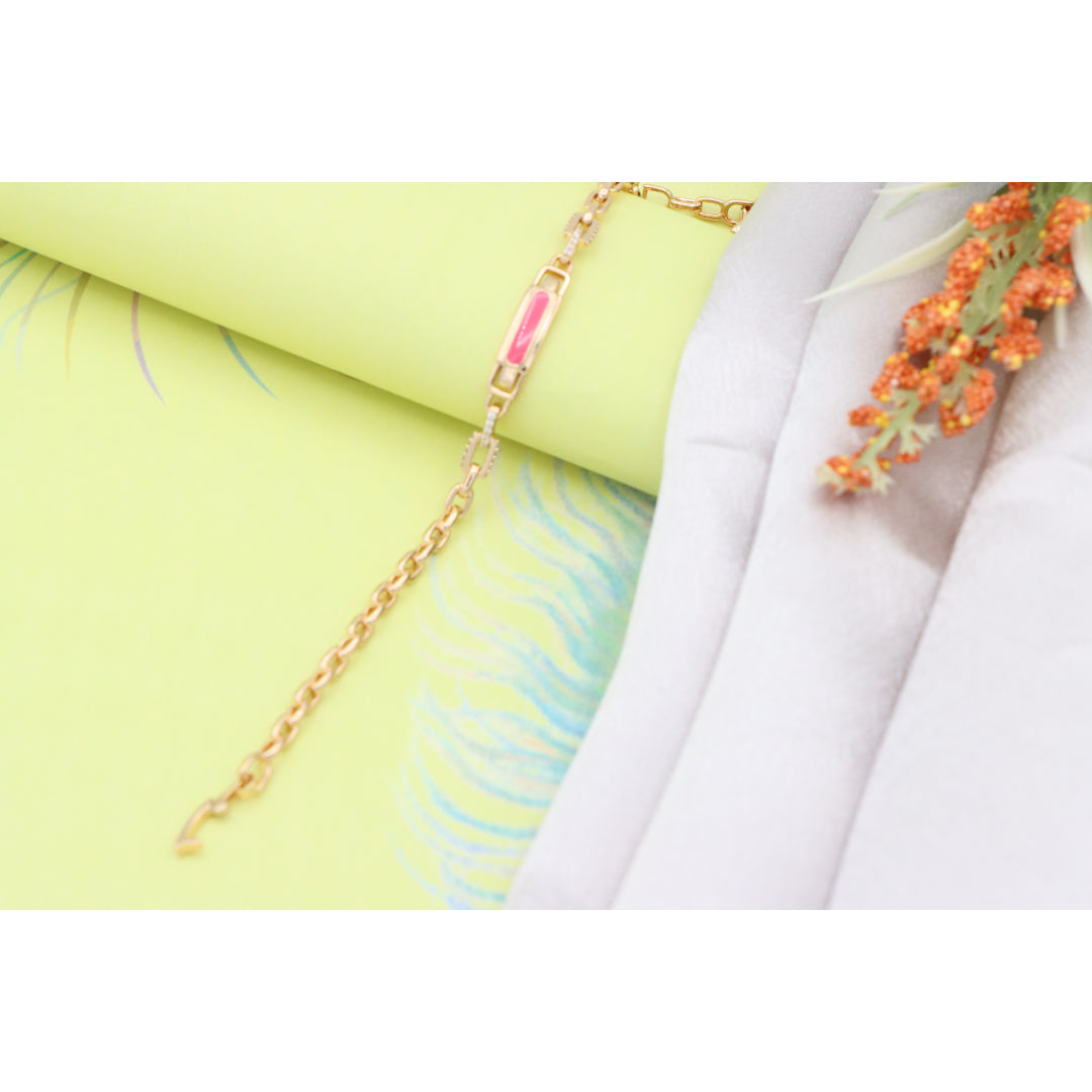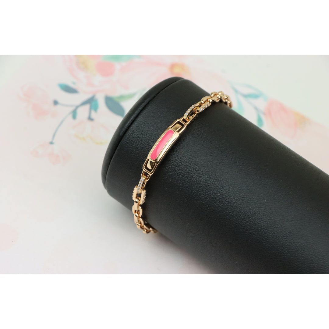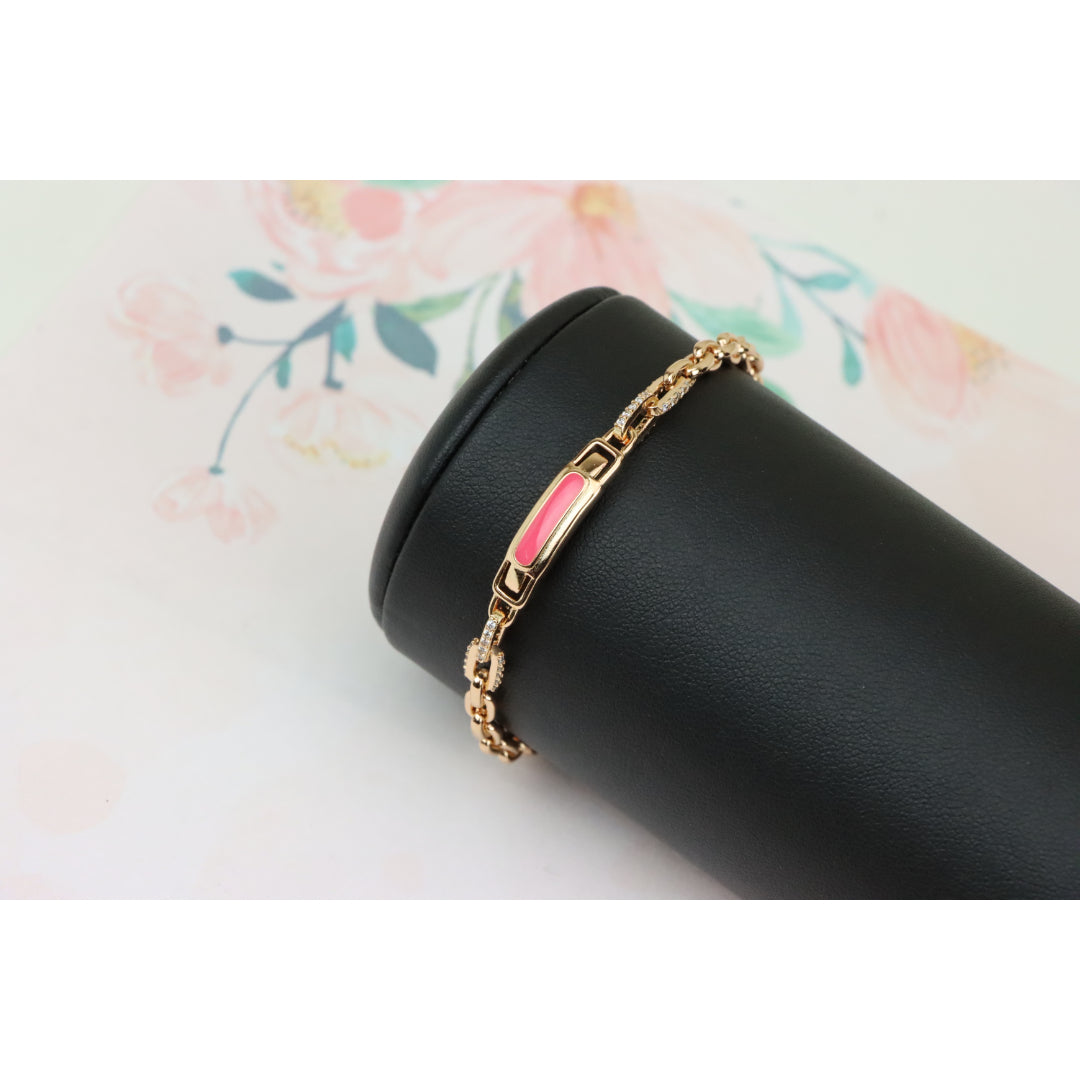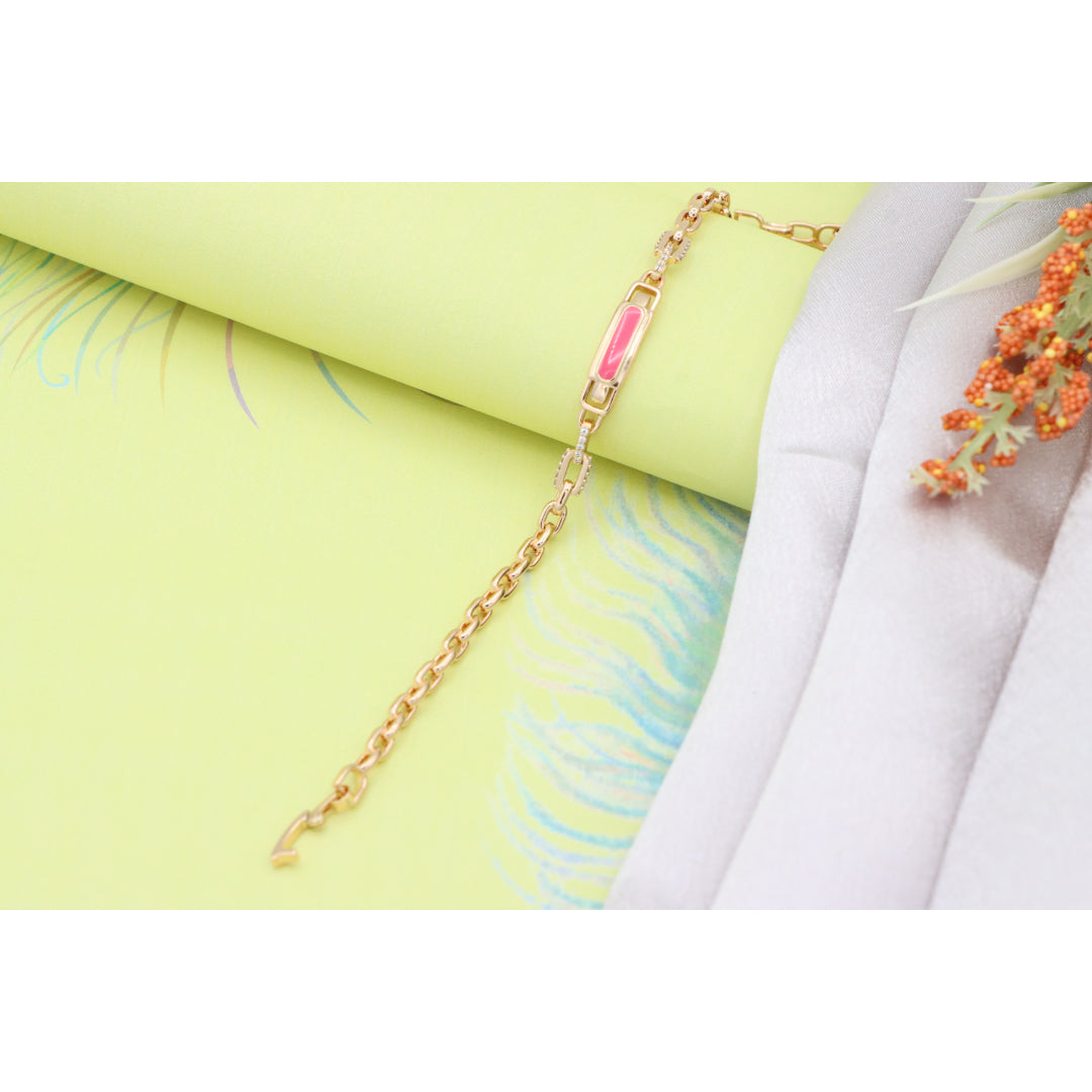 Elegant and eye-catching, this Rose Gold bracelet features a polished pink enamel centerpiece with refined chain links, ideal for adding a modern, feminine touch to your look.