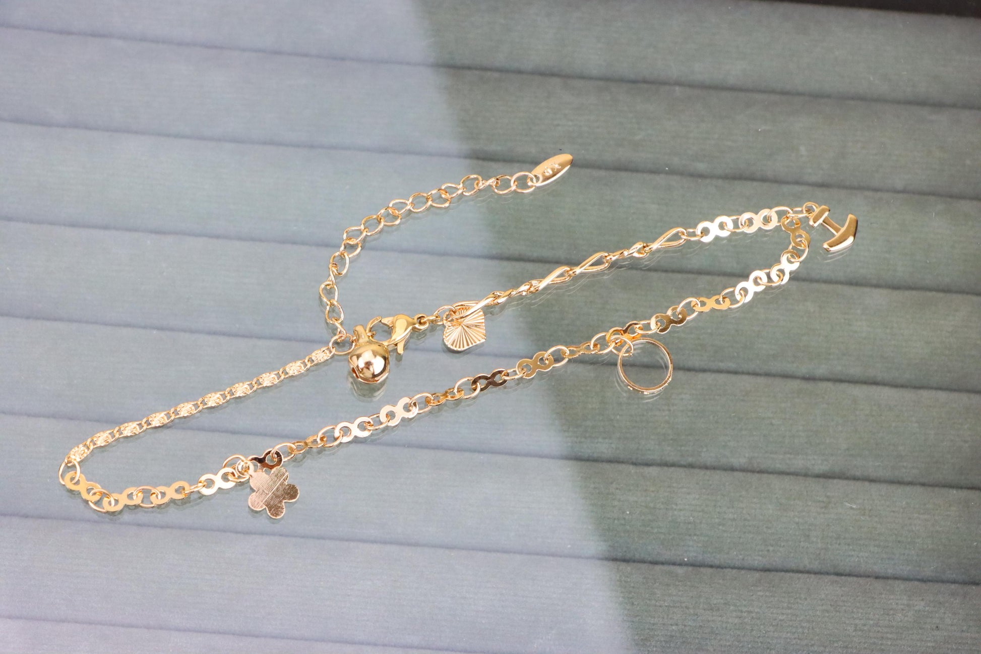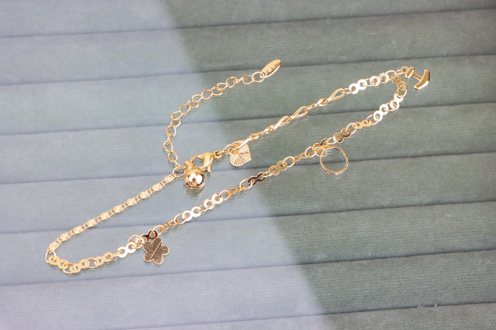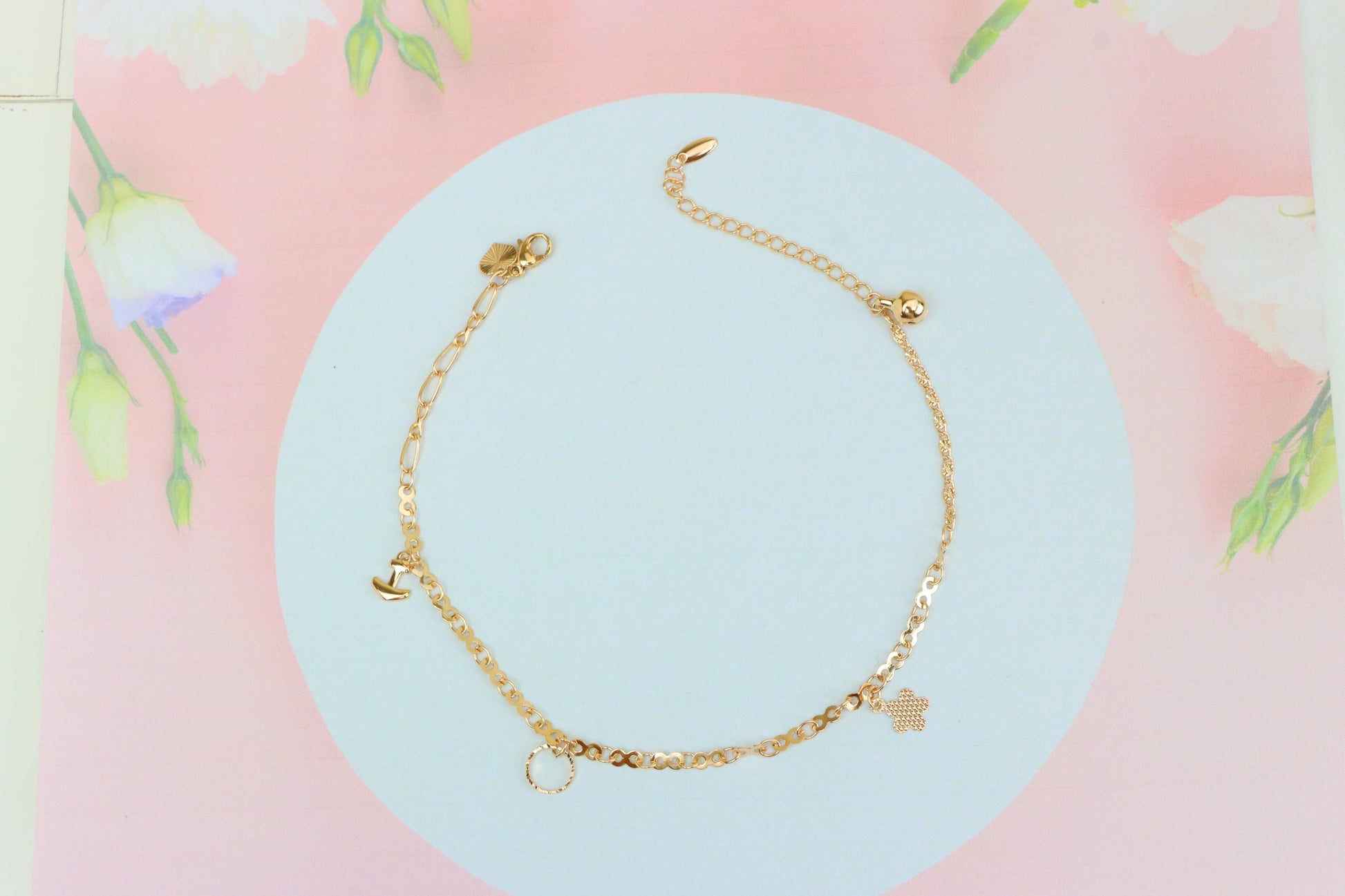 Rose Gold Charm Anklet with Anchor, Circle & Clover Pendants, XPAL1054