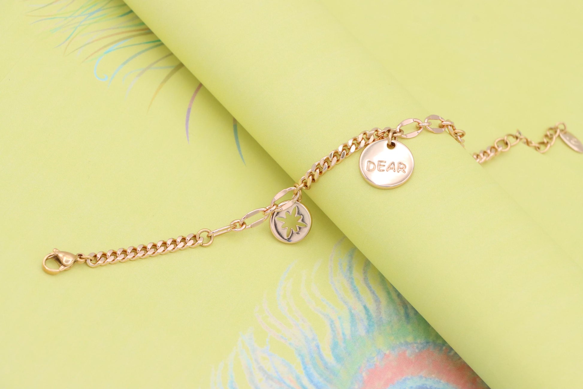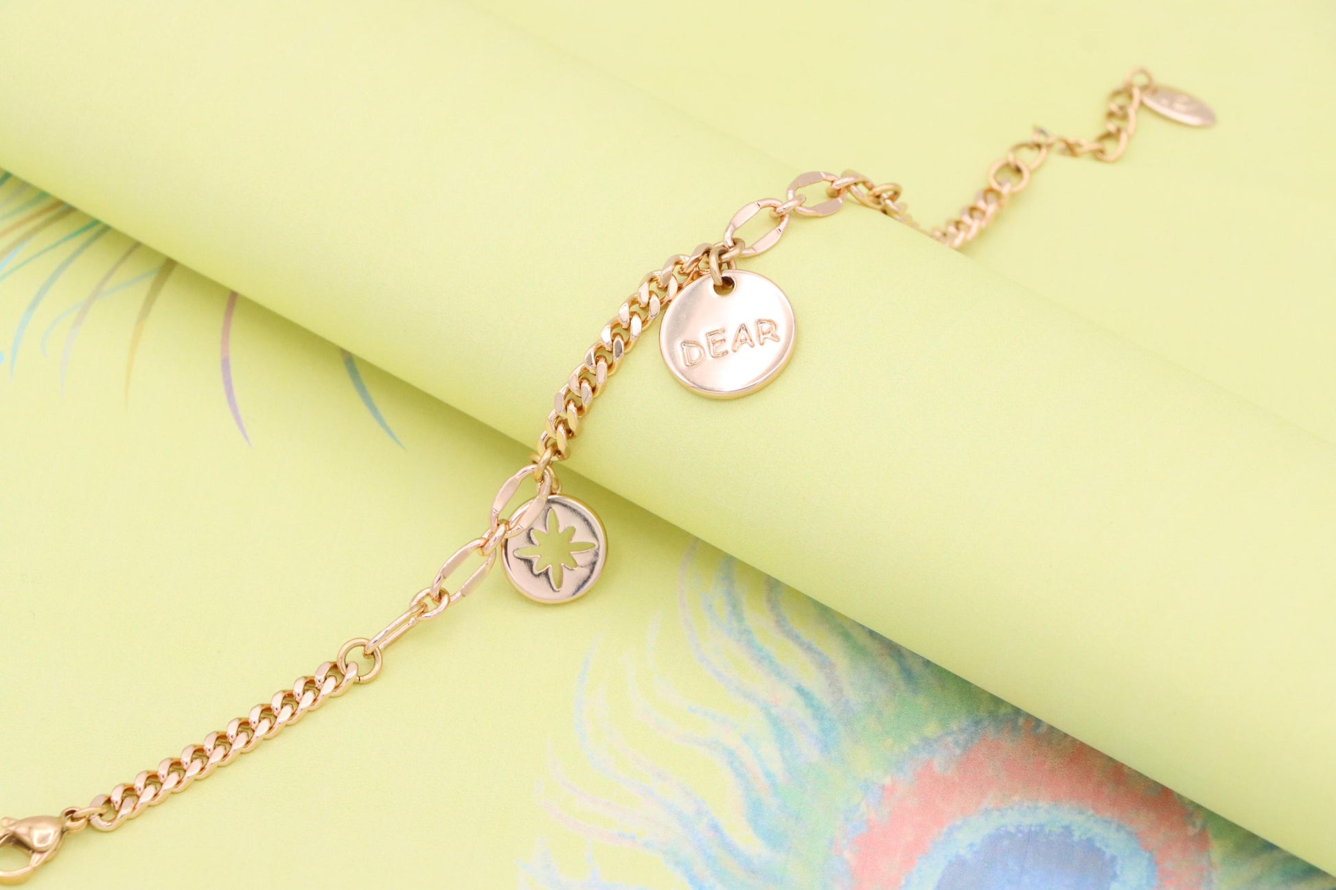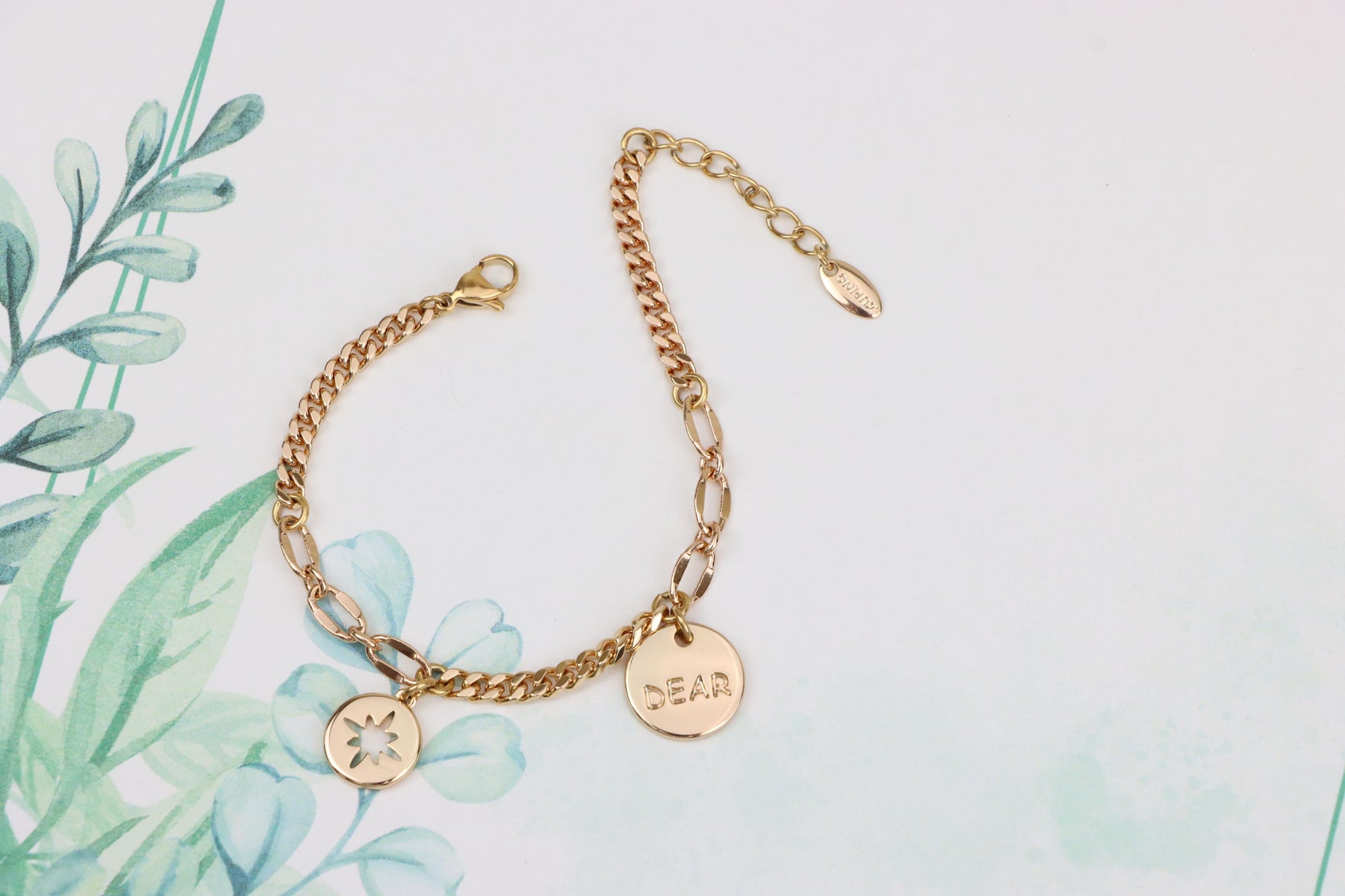 ✓ Elegant rose gold bracelet featuring DEAR and star-themed charms