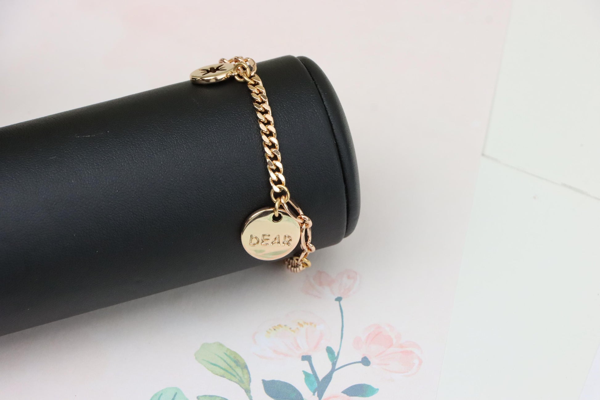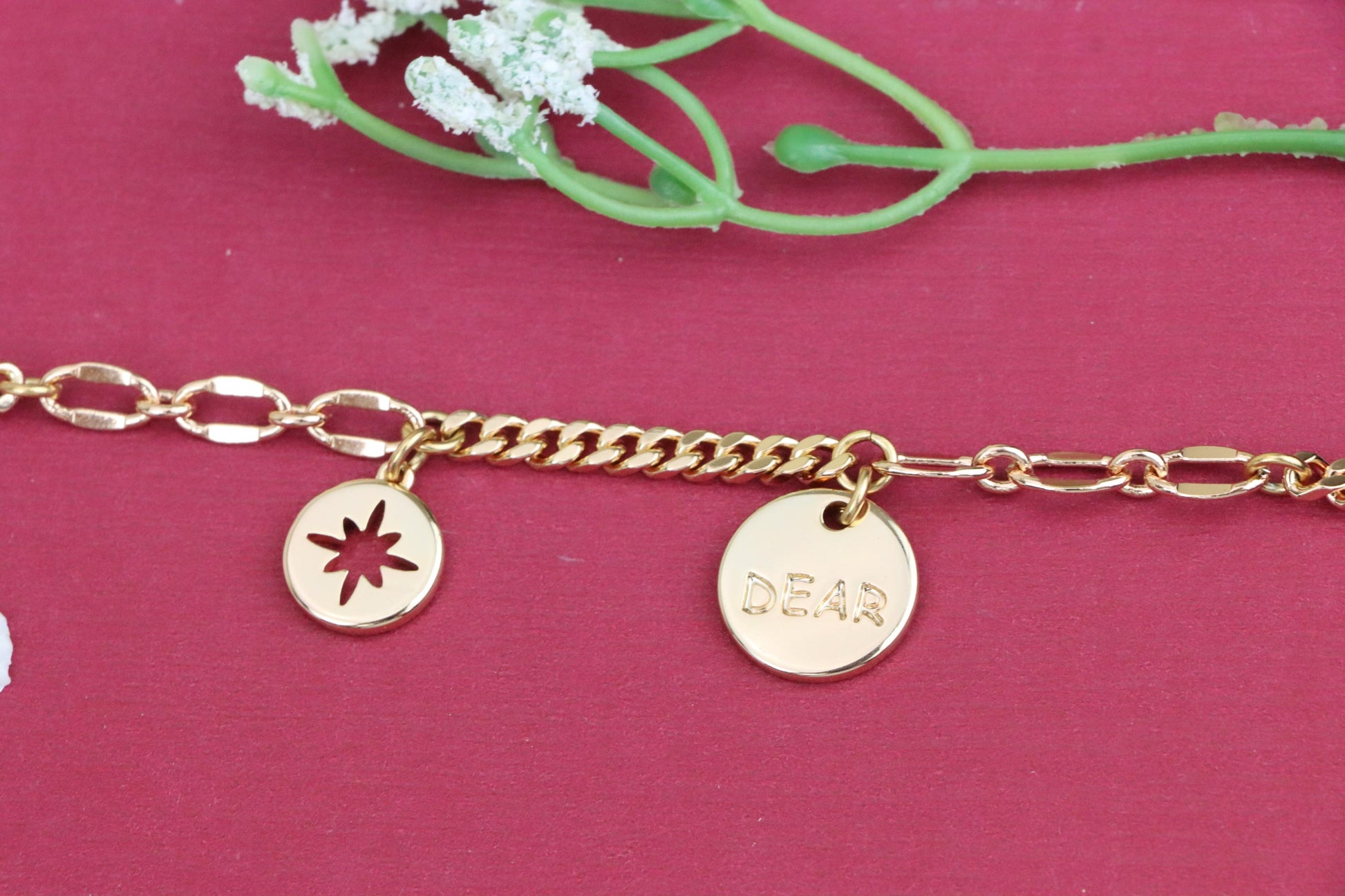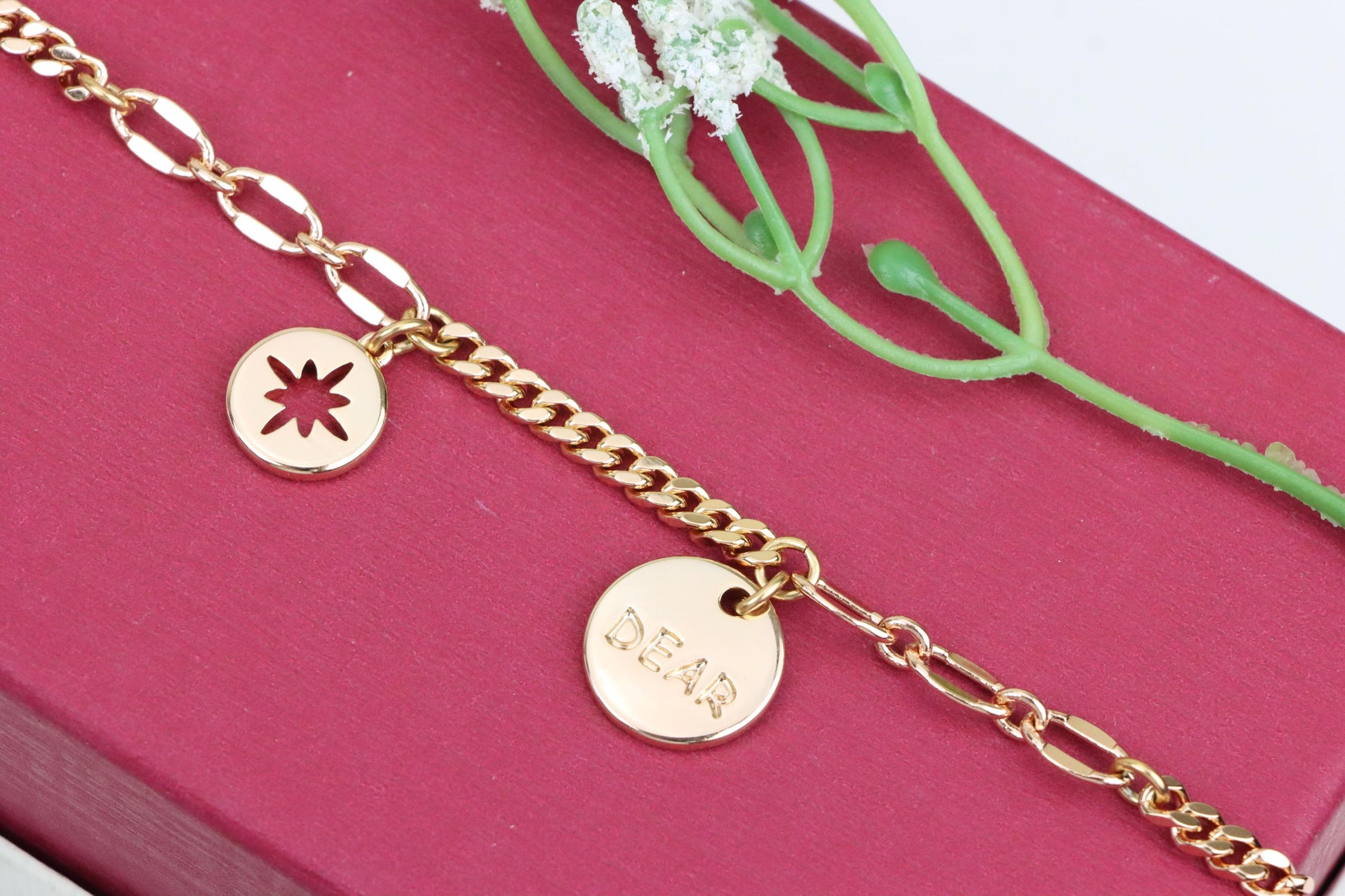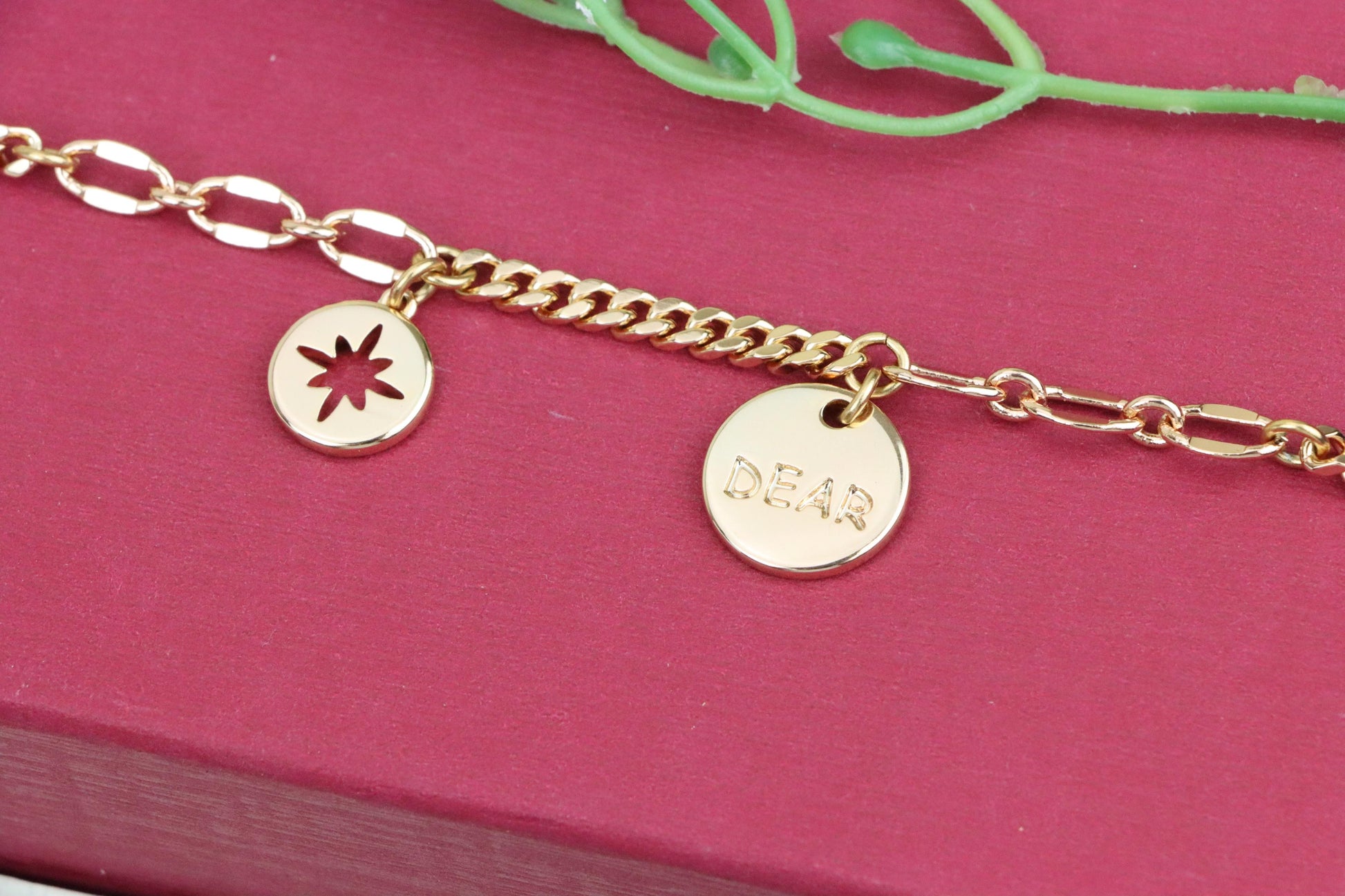 ✓ Elegant rose gold bracelet featuring DEAR and star-themed charms