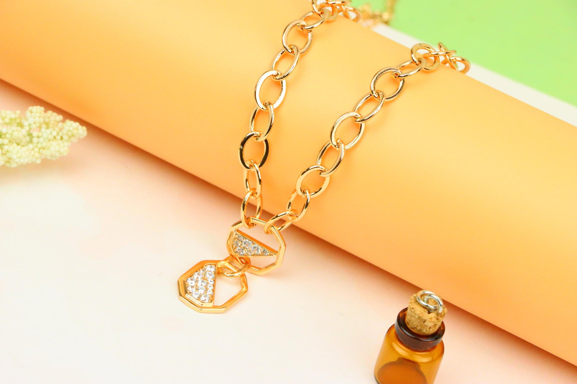Rose Gold Chunky Chain Necklace with Crystal Geometric Charms, XPNL1889