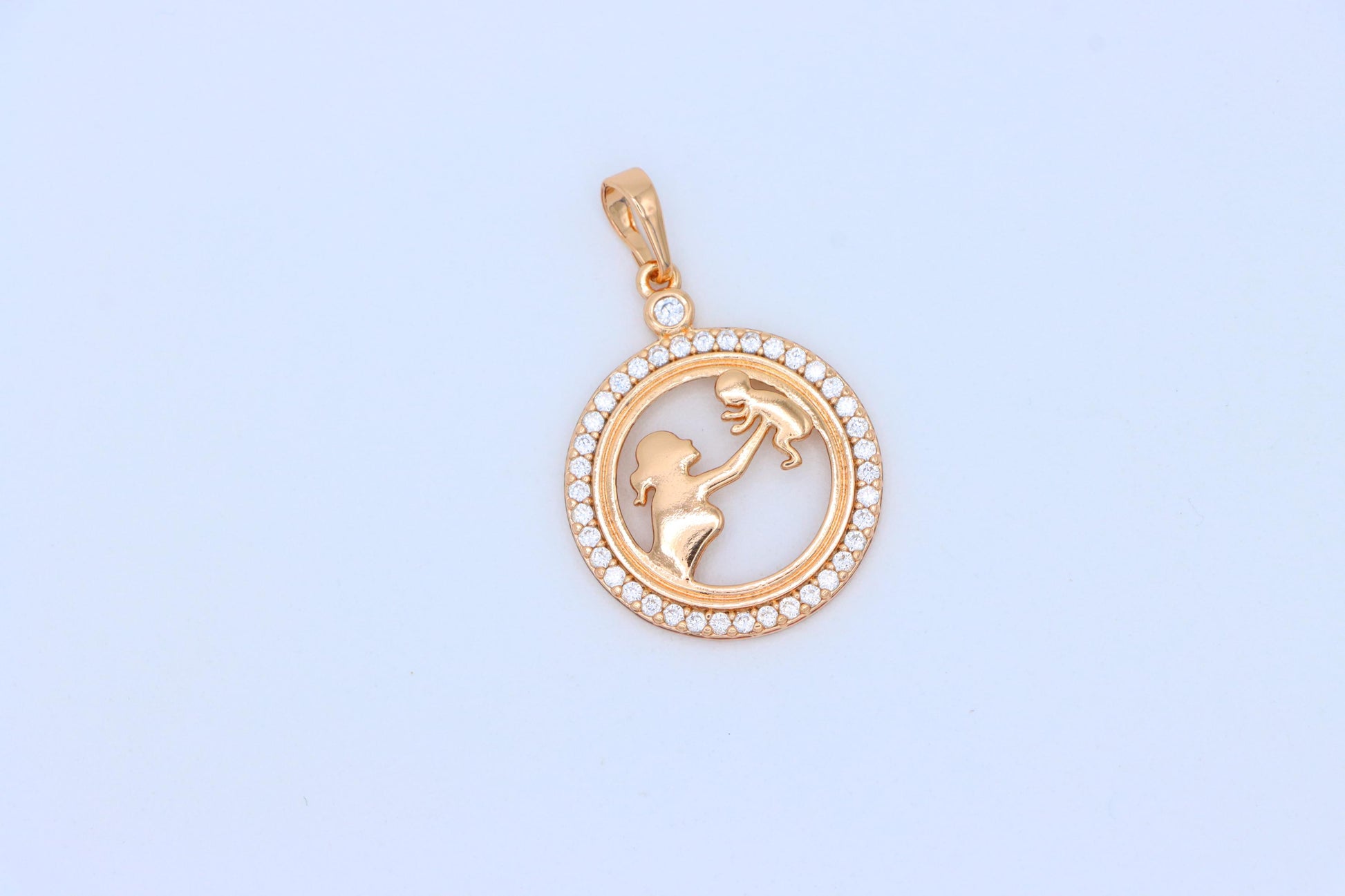 Rose Gold Circle Pendant with Mother & Child Design and CZ Accents, XPPT1401