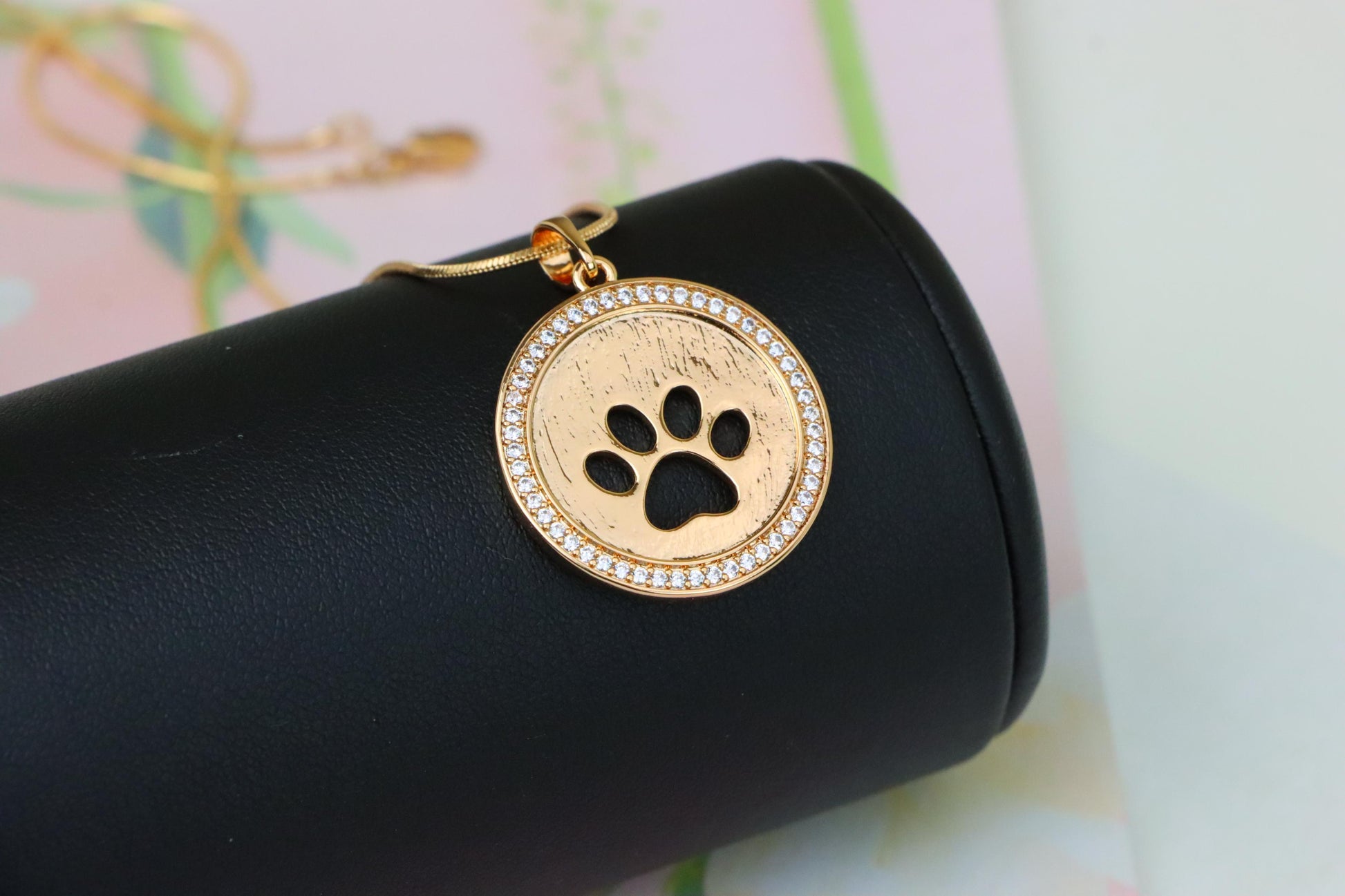 Rose Gold Circle Pendant with Paw Print Cutout and Stone Border, XPPT1242