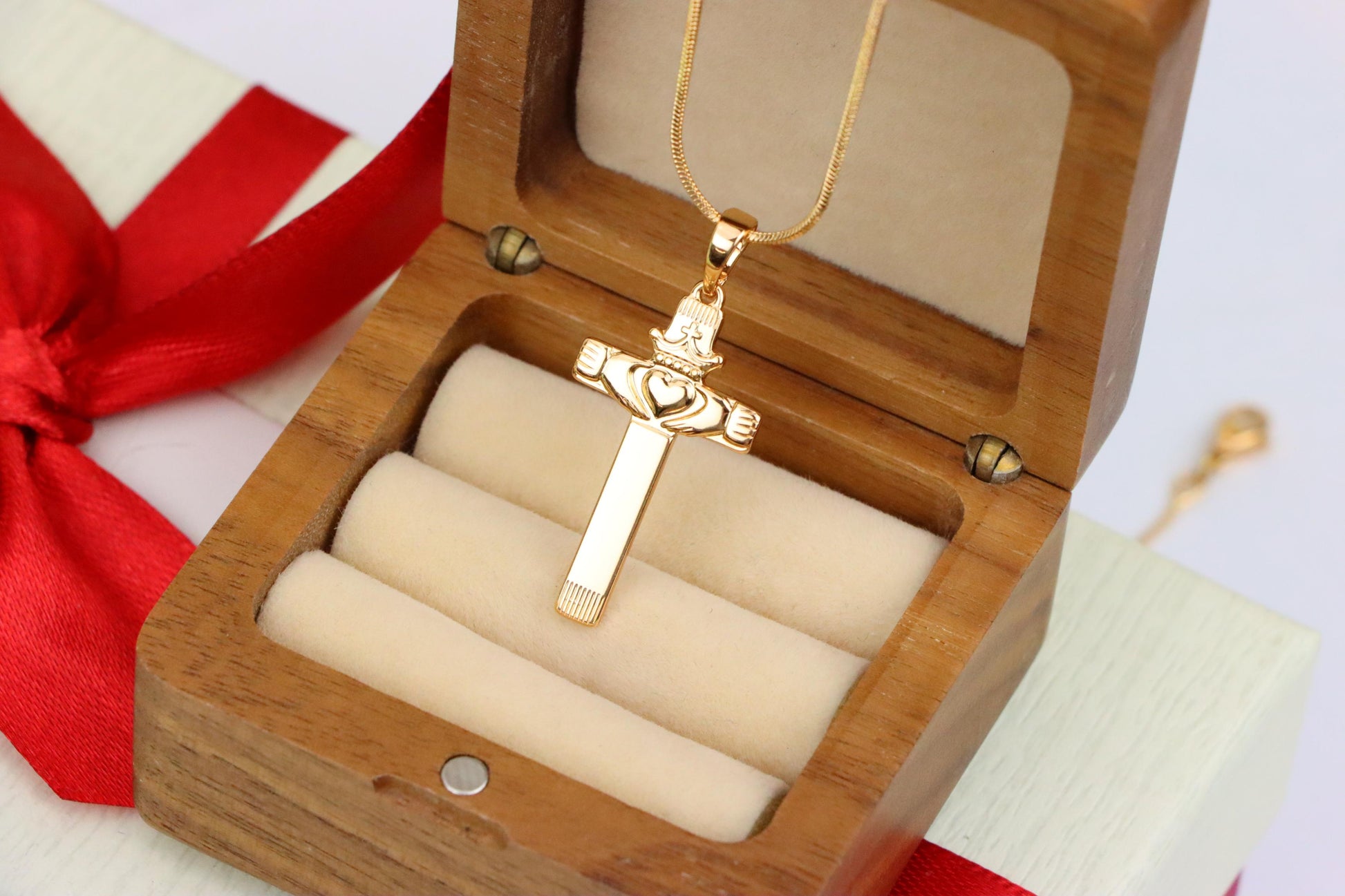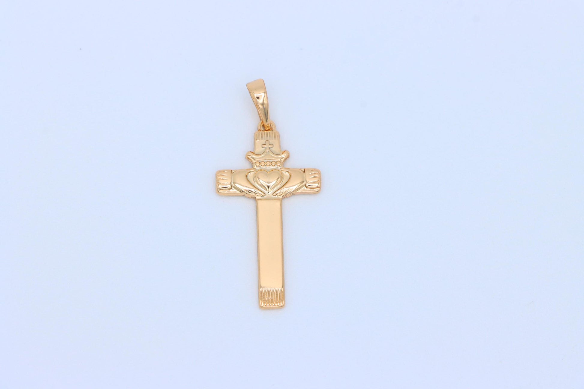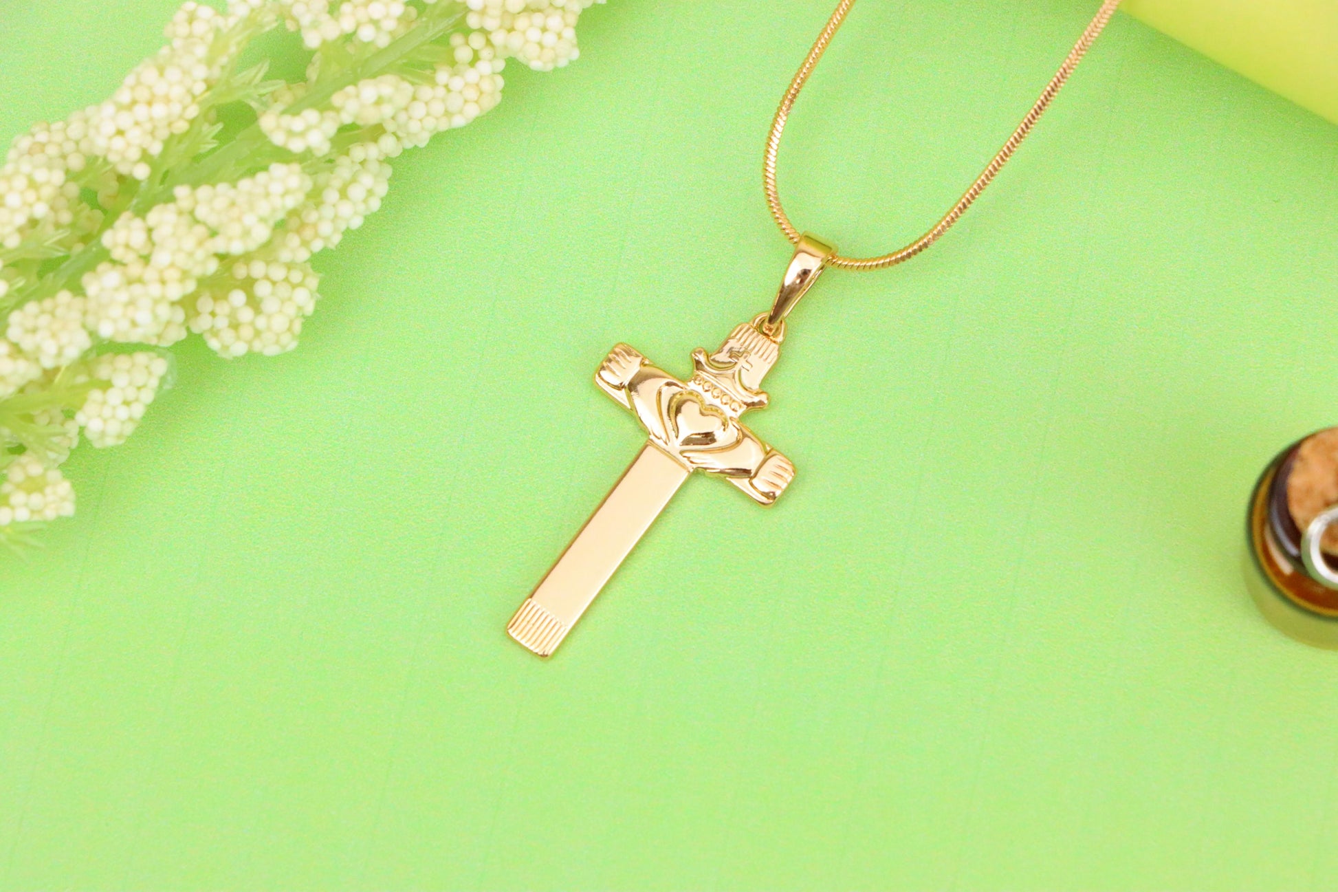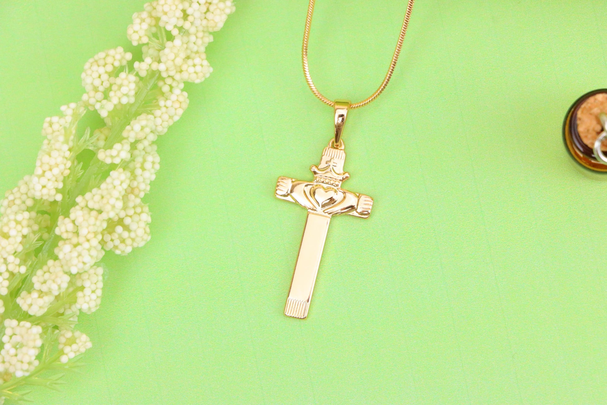 Rose Gold Claddagh Cross Pendant with Crowned Heart and Hands Detail, XPPT1603