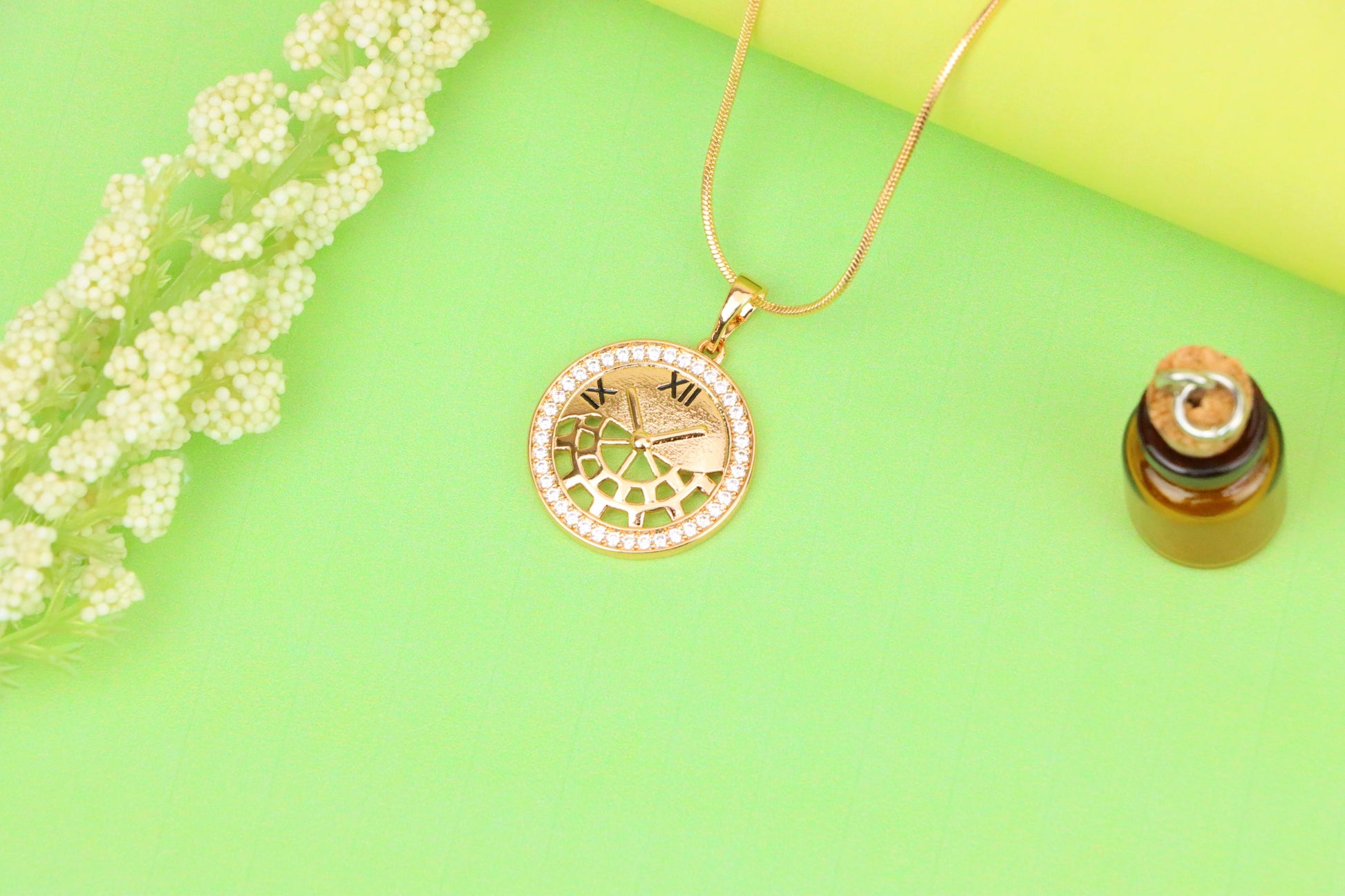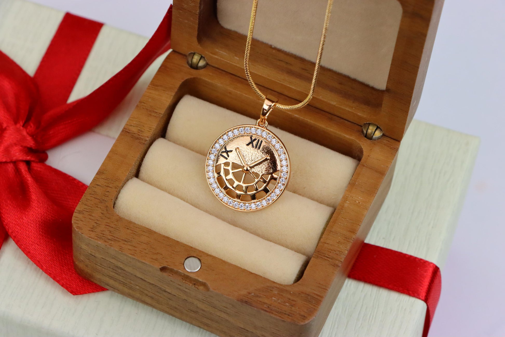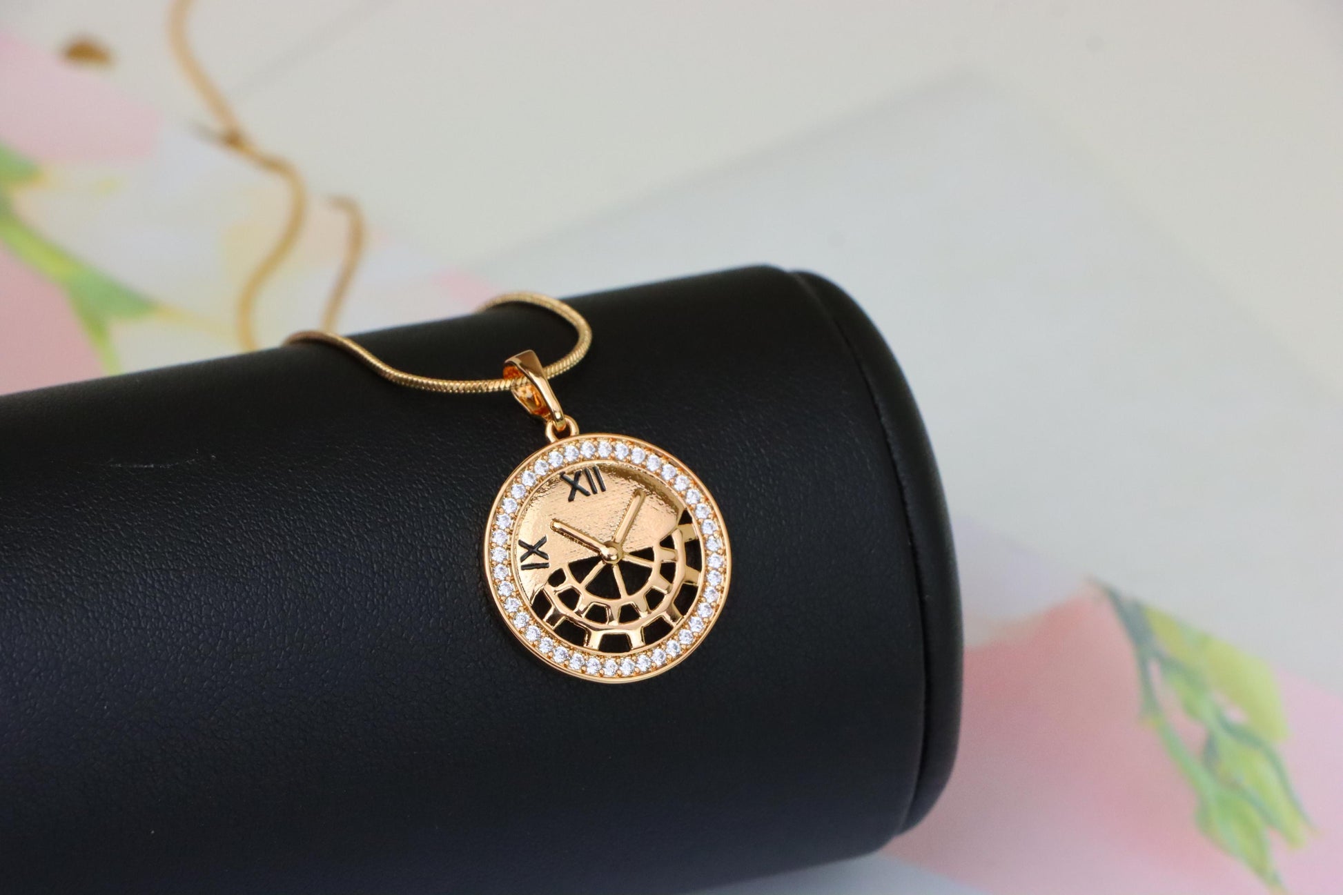 Rose Gold Clock Face Pendant with Roman Numerals and Iced Border, XPPT1406