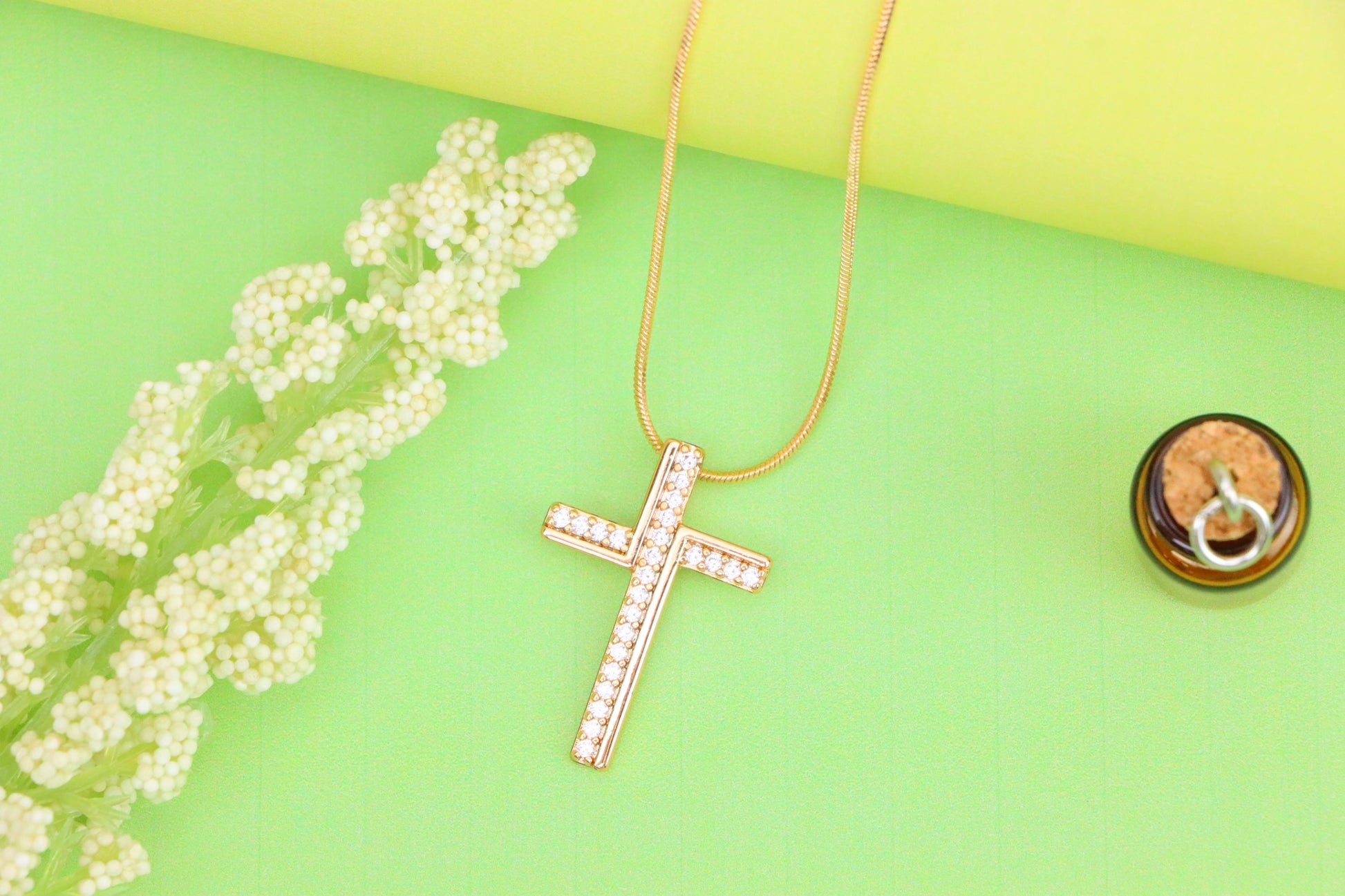 Rose Gold Crescent Moon Pendant with Sparkling Crystal Accents, XPPT1506
