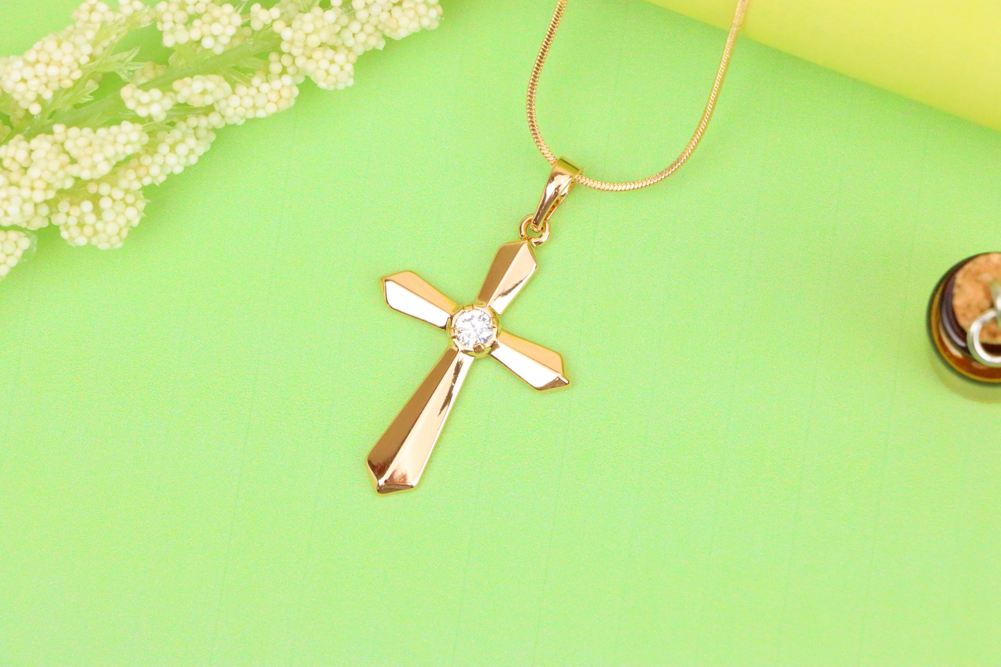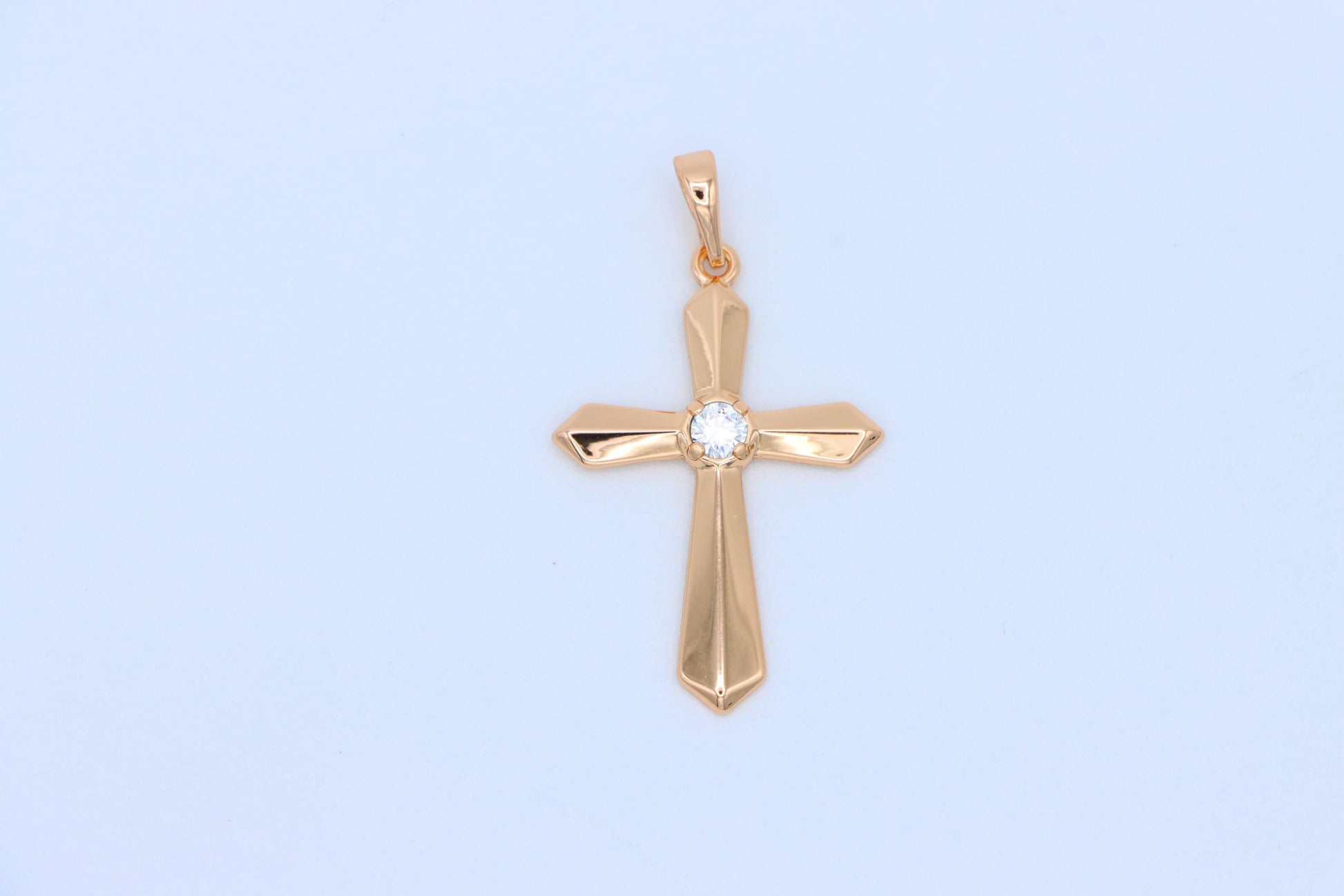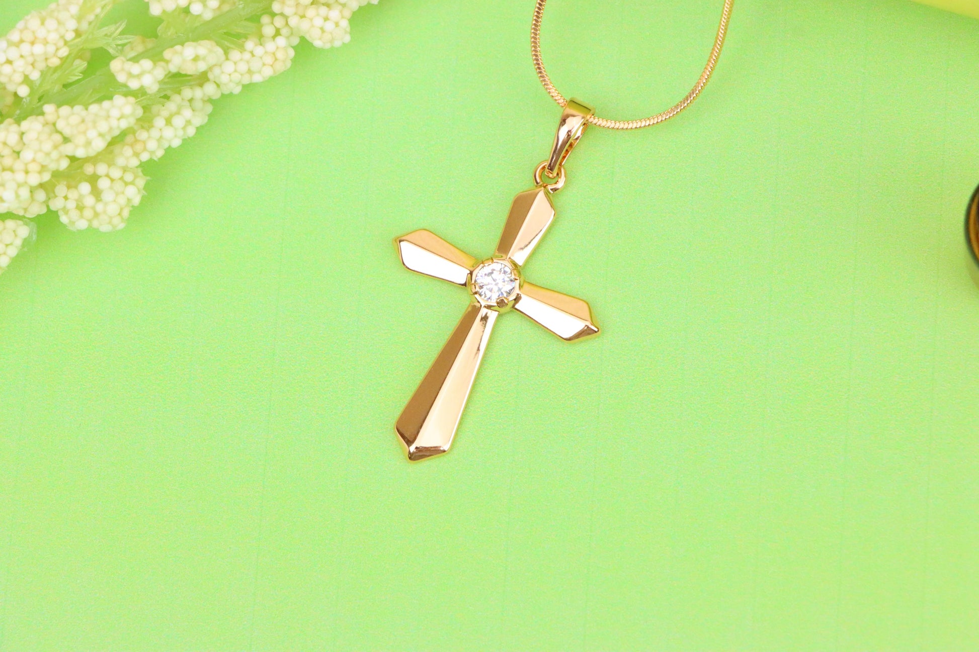 Rose Gold Cross Pendant with Center Stone Accent in Elegant Finish, XPPT1527