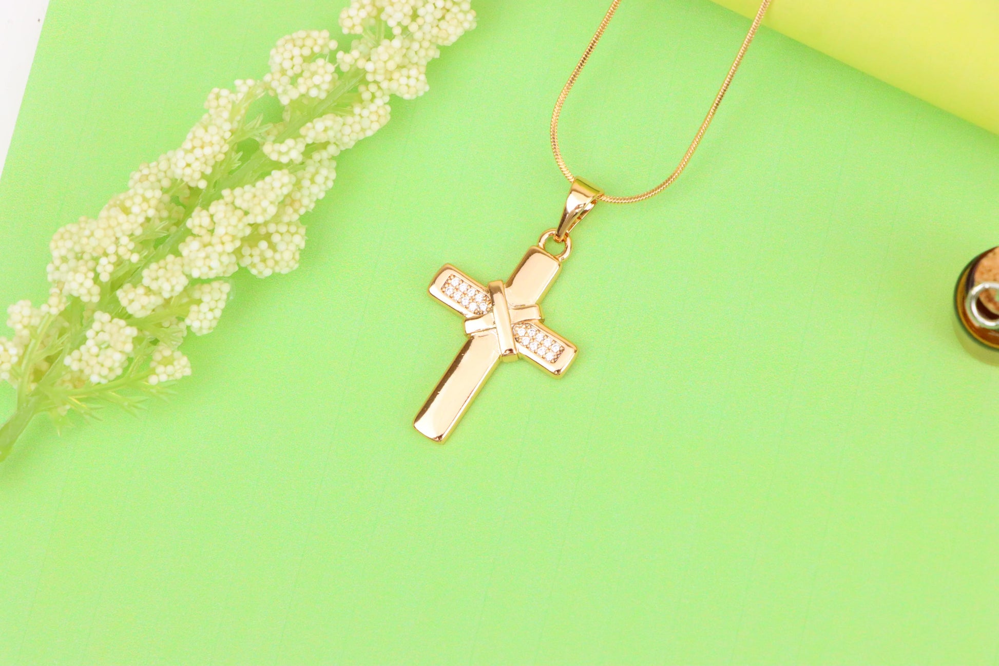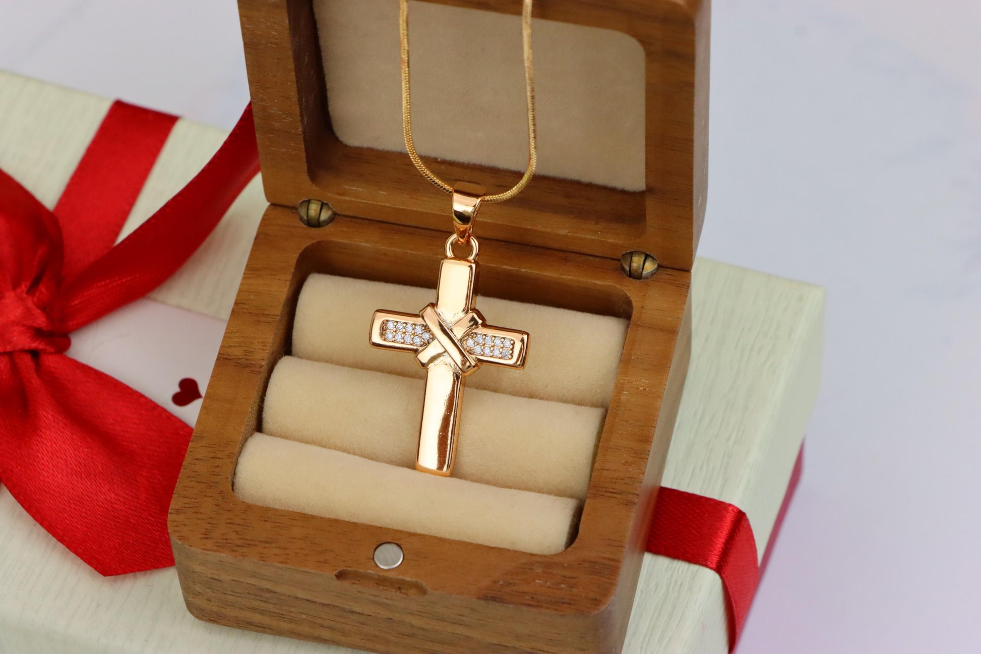 Timeless rose gold cross pendant featuring a polished finish and sparkling crystal accents, perfect for everyday elegance or faith-inspired gifting.