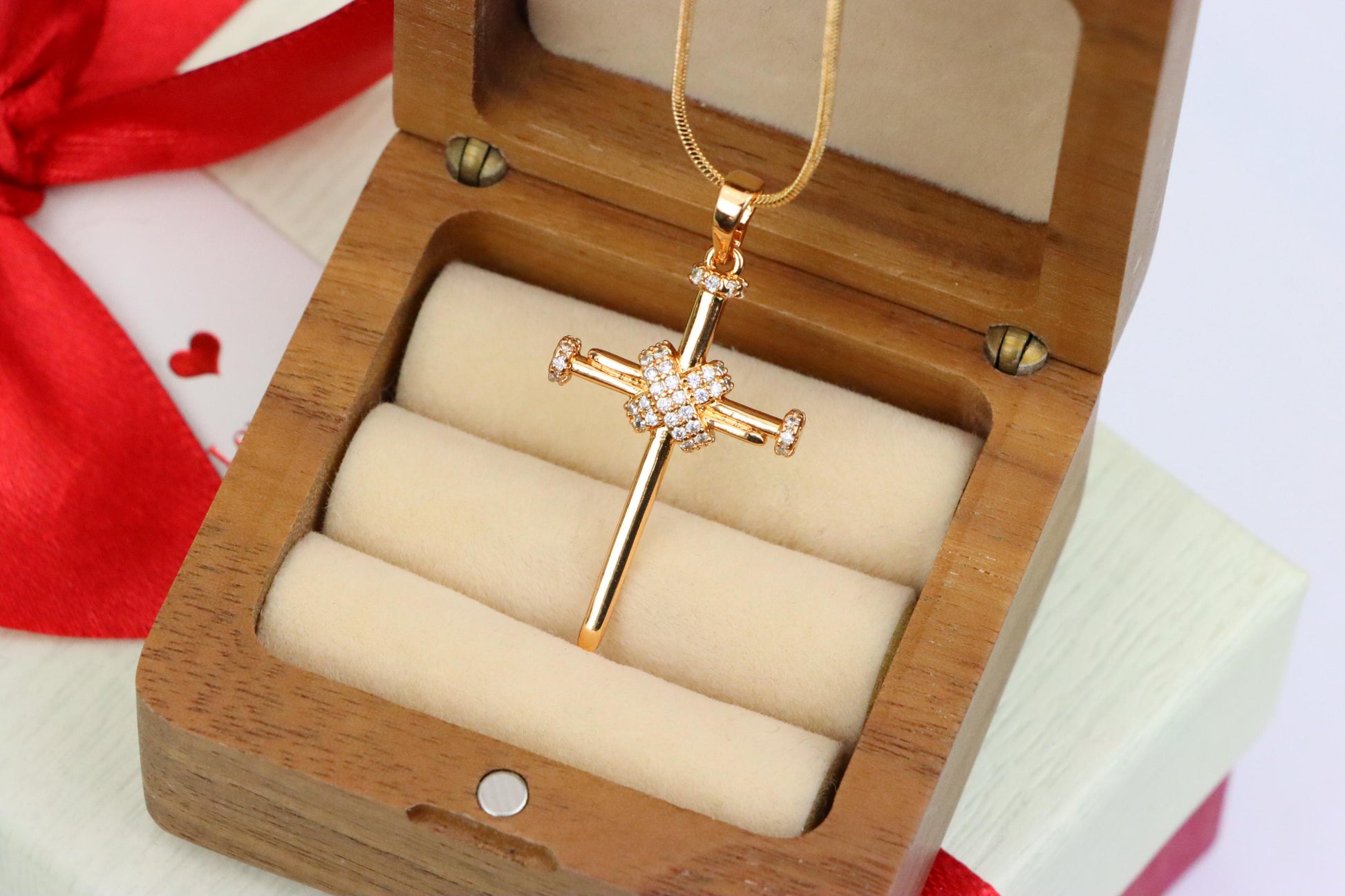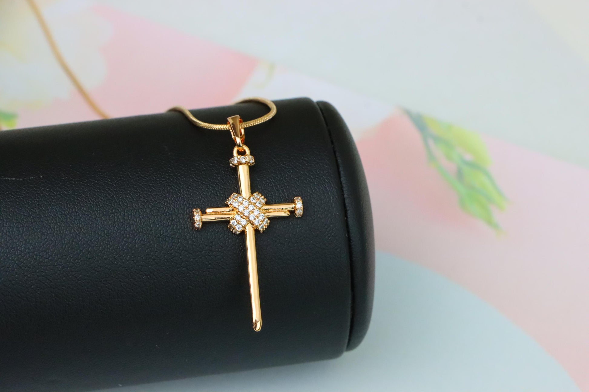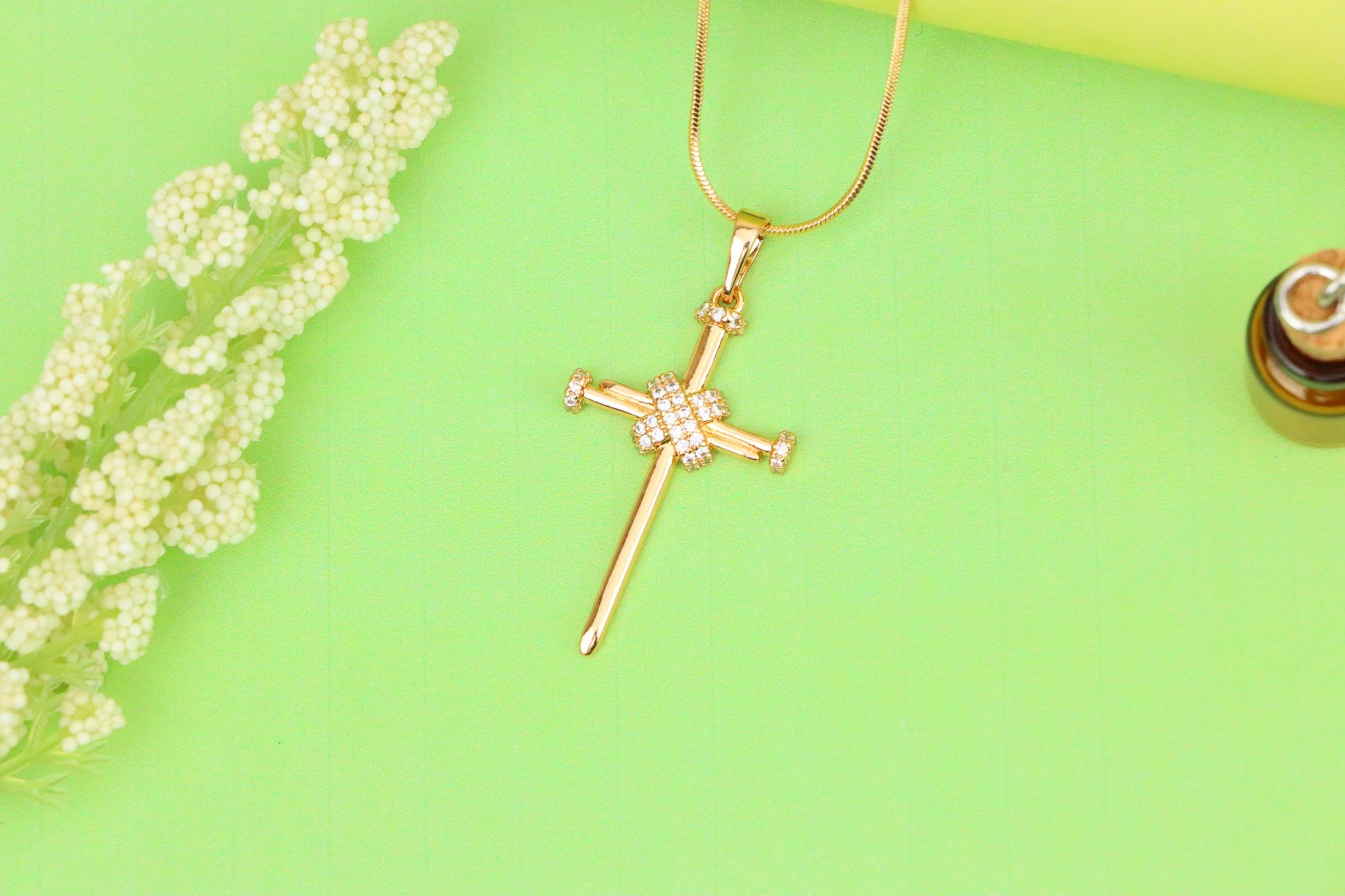 Graceful rose gold cross pendant adorned with brilliant CZ stones.