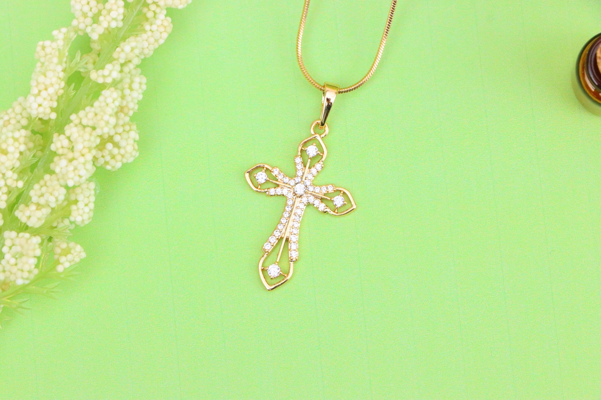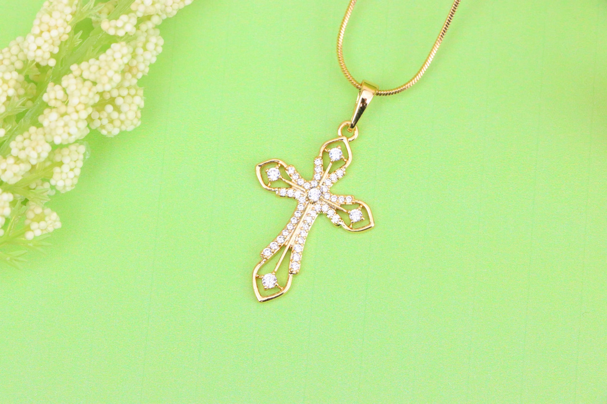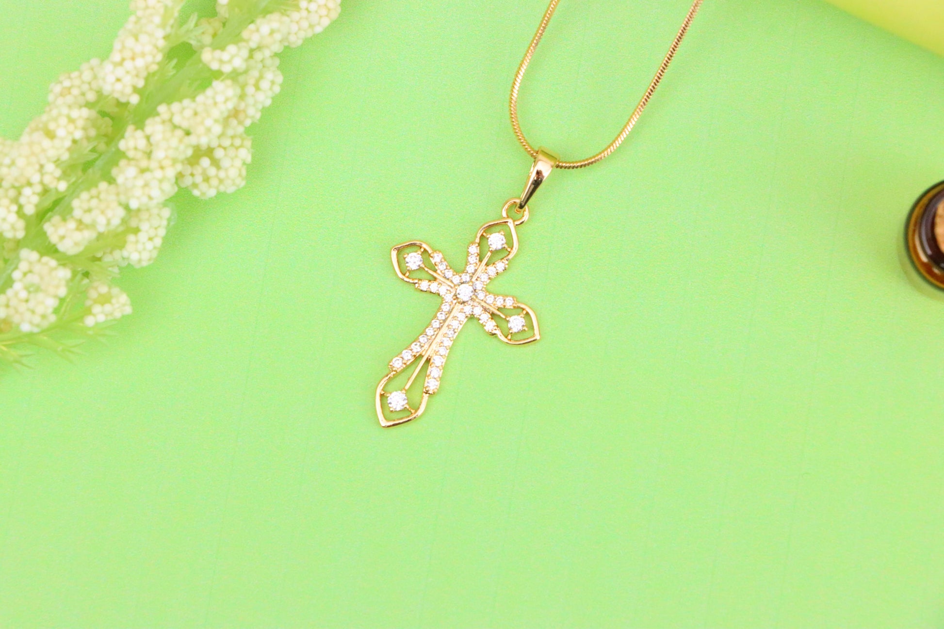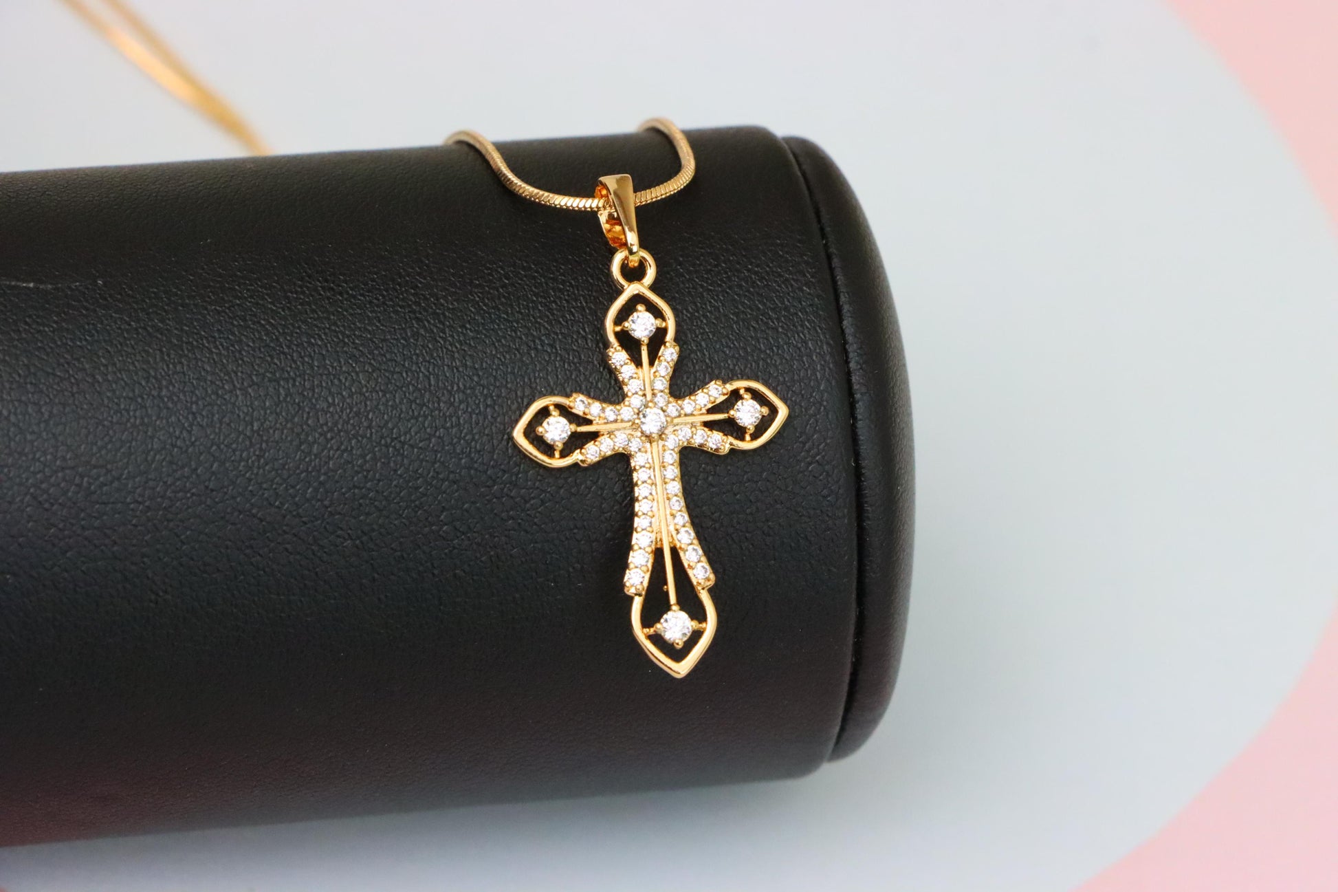 ✔️ Delicate cross design with shimmering cubic zirconia accents