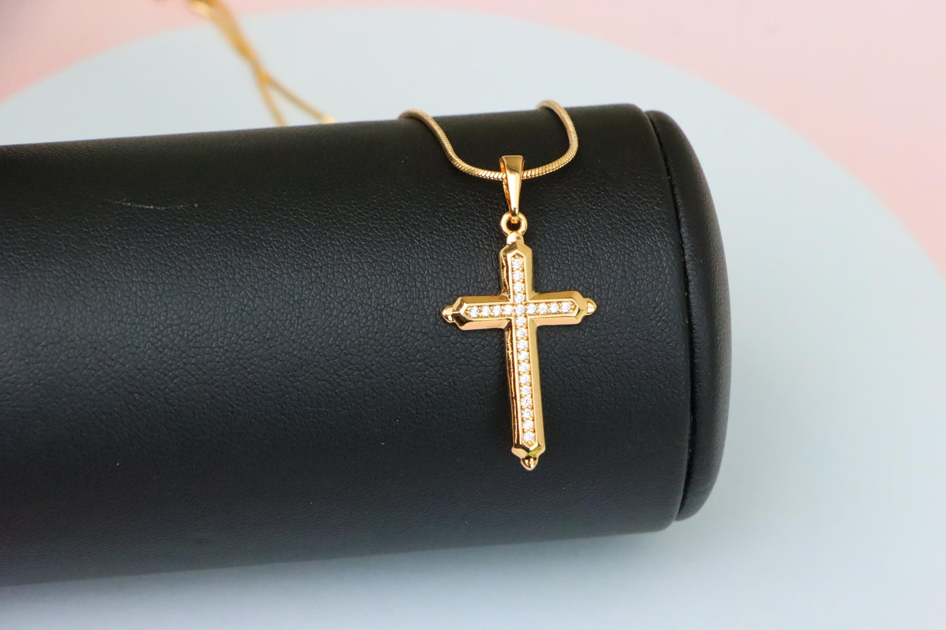 Rose Gold Cross Pendant with Sparkling Stones – Elegant Design, XPPT1745
