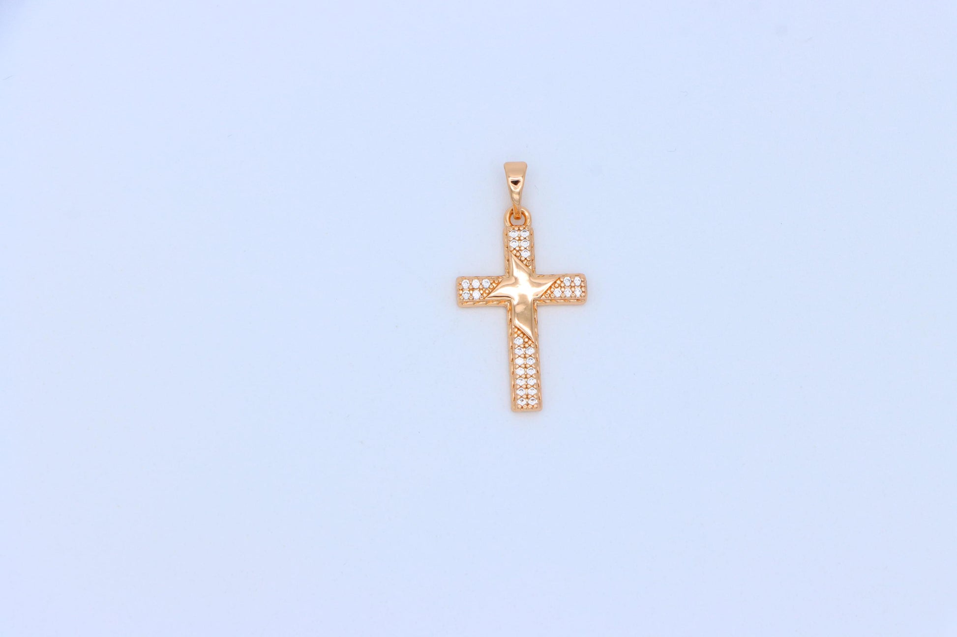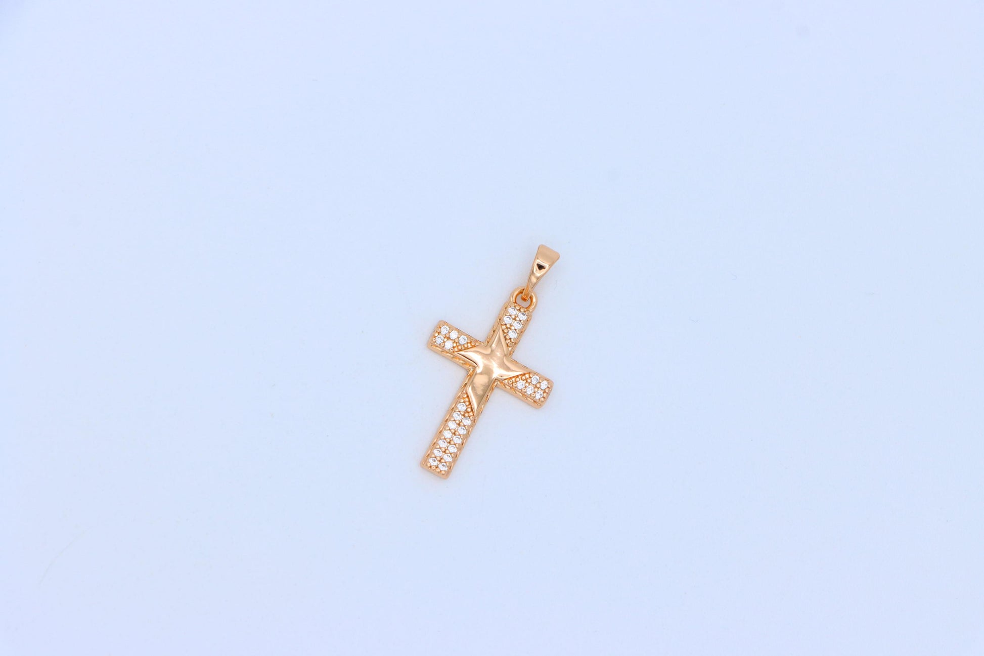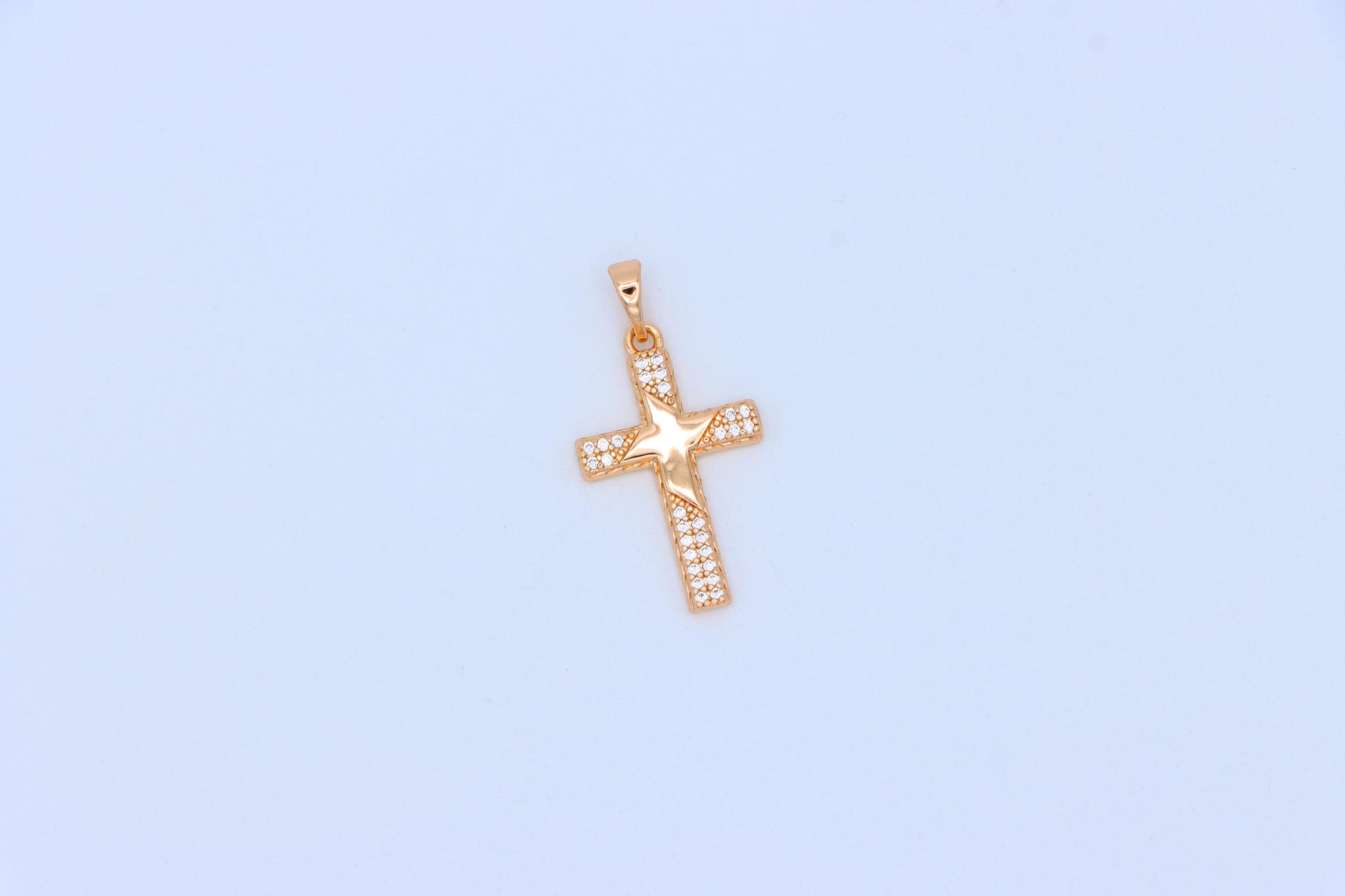 Rose Gold Cross Pendant with Star Design and Sparkling Accents, XPPT1748