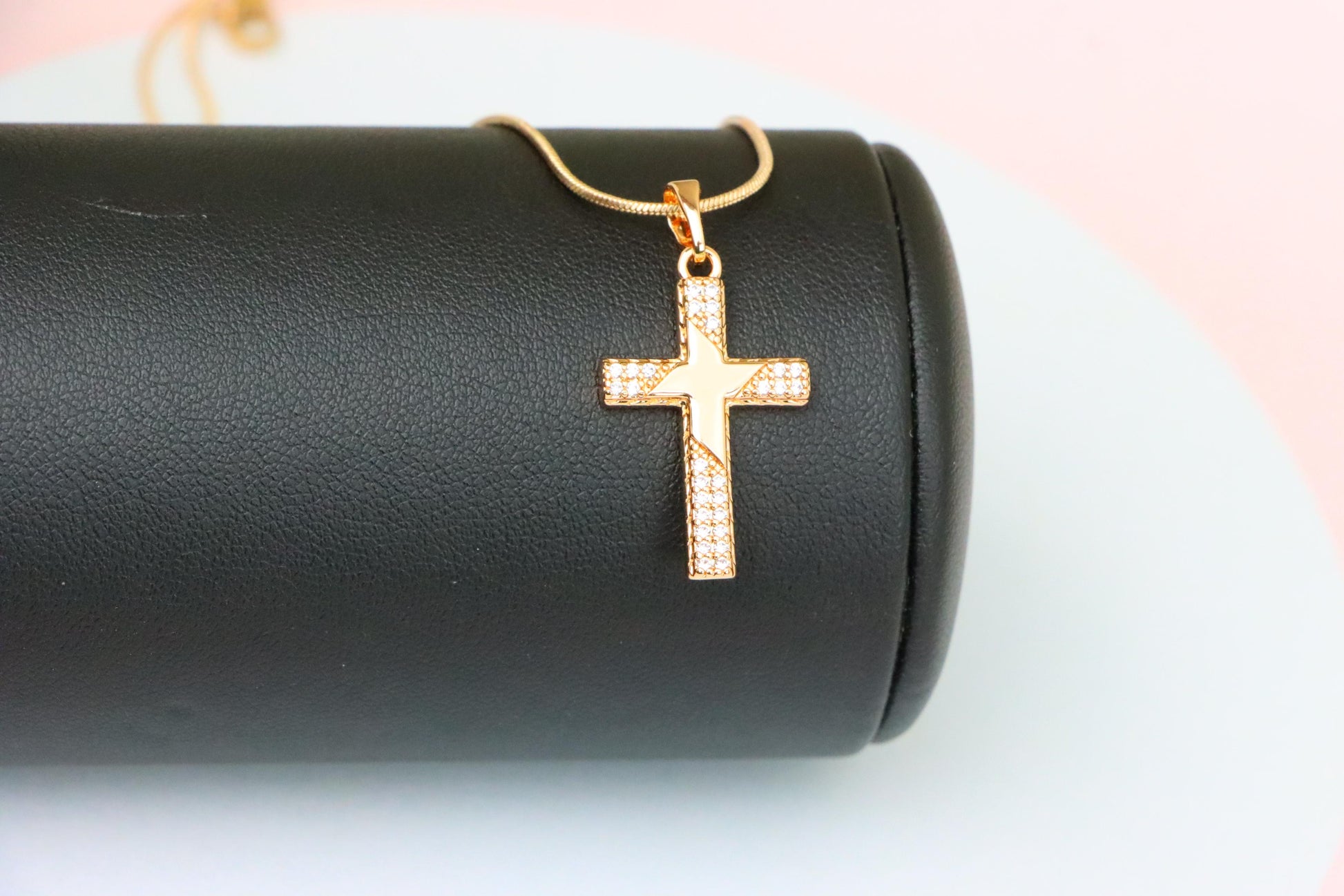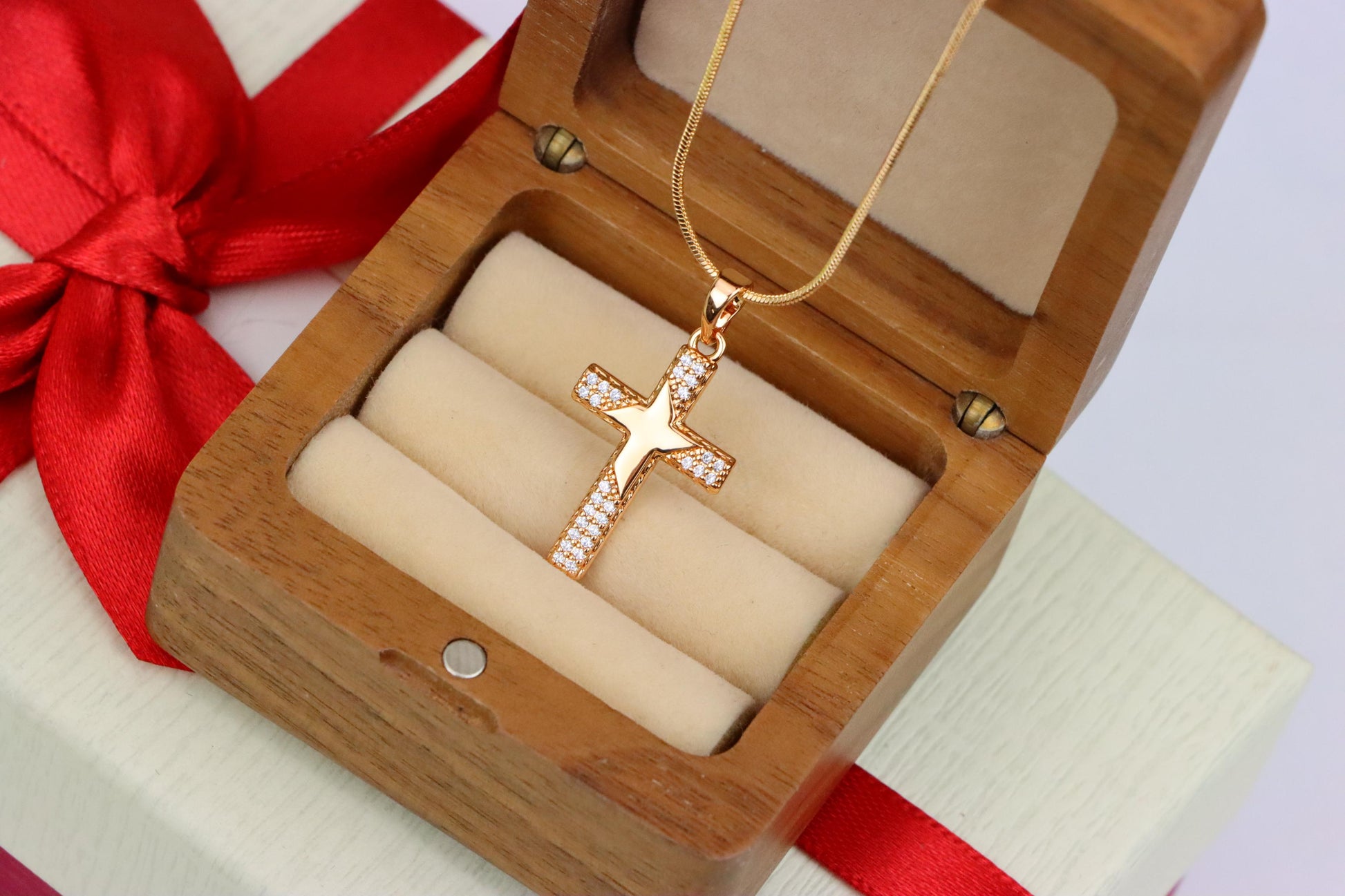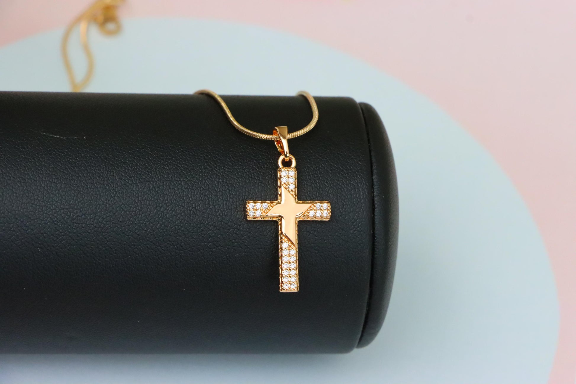 Rose Gold Cross Pendant with Star Design and Sparkling Accents, XPPT1748
