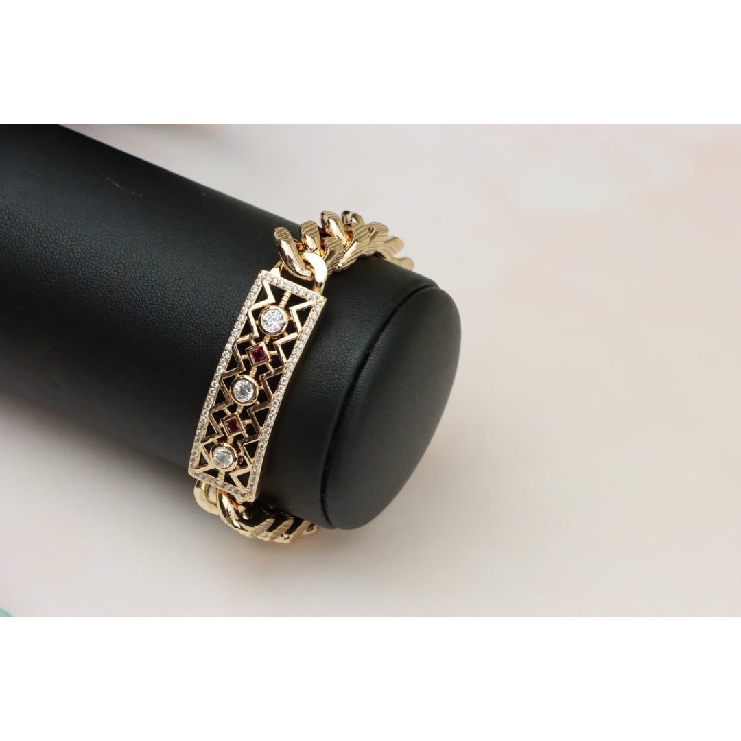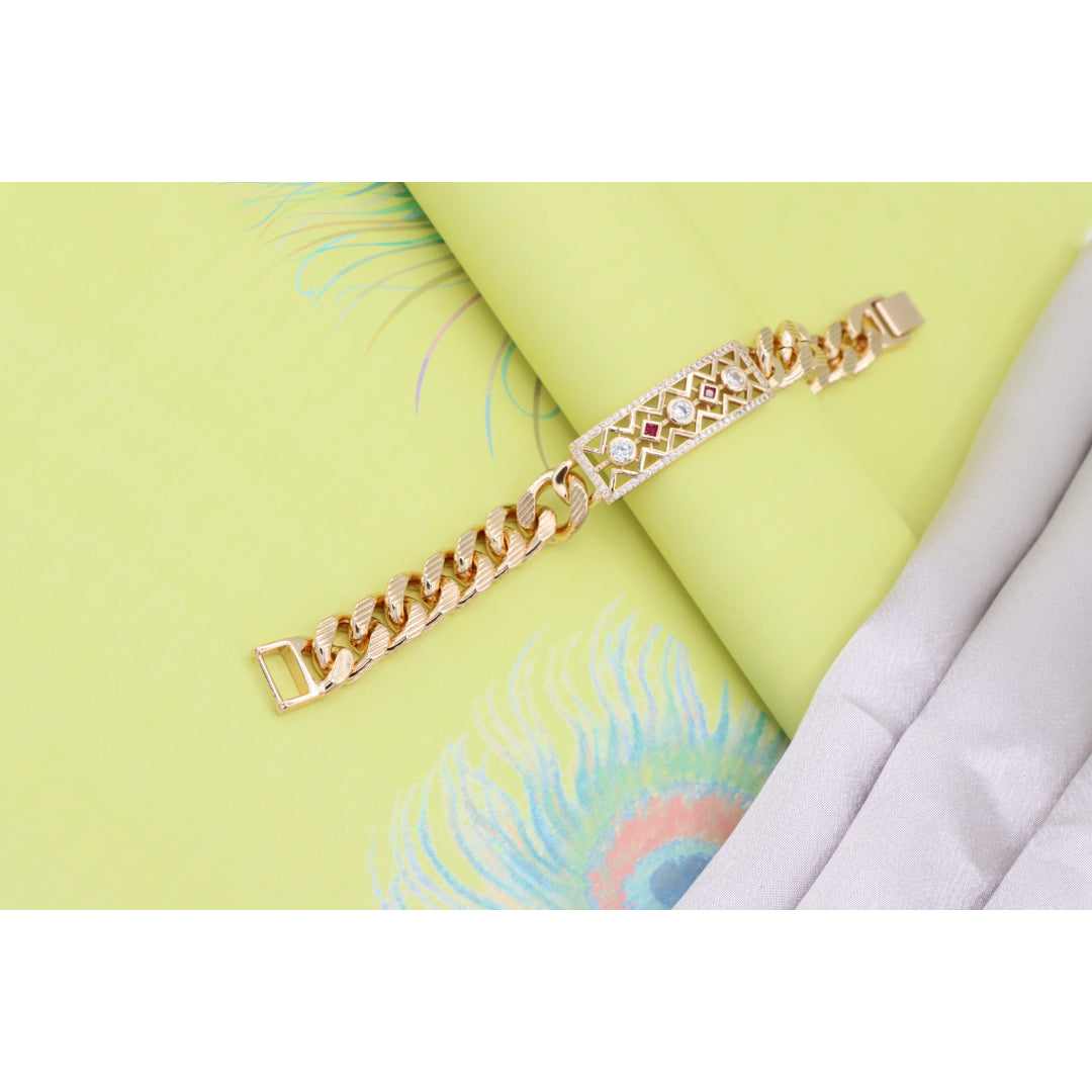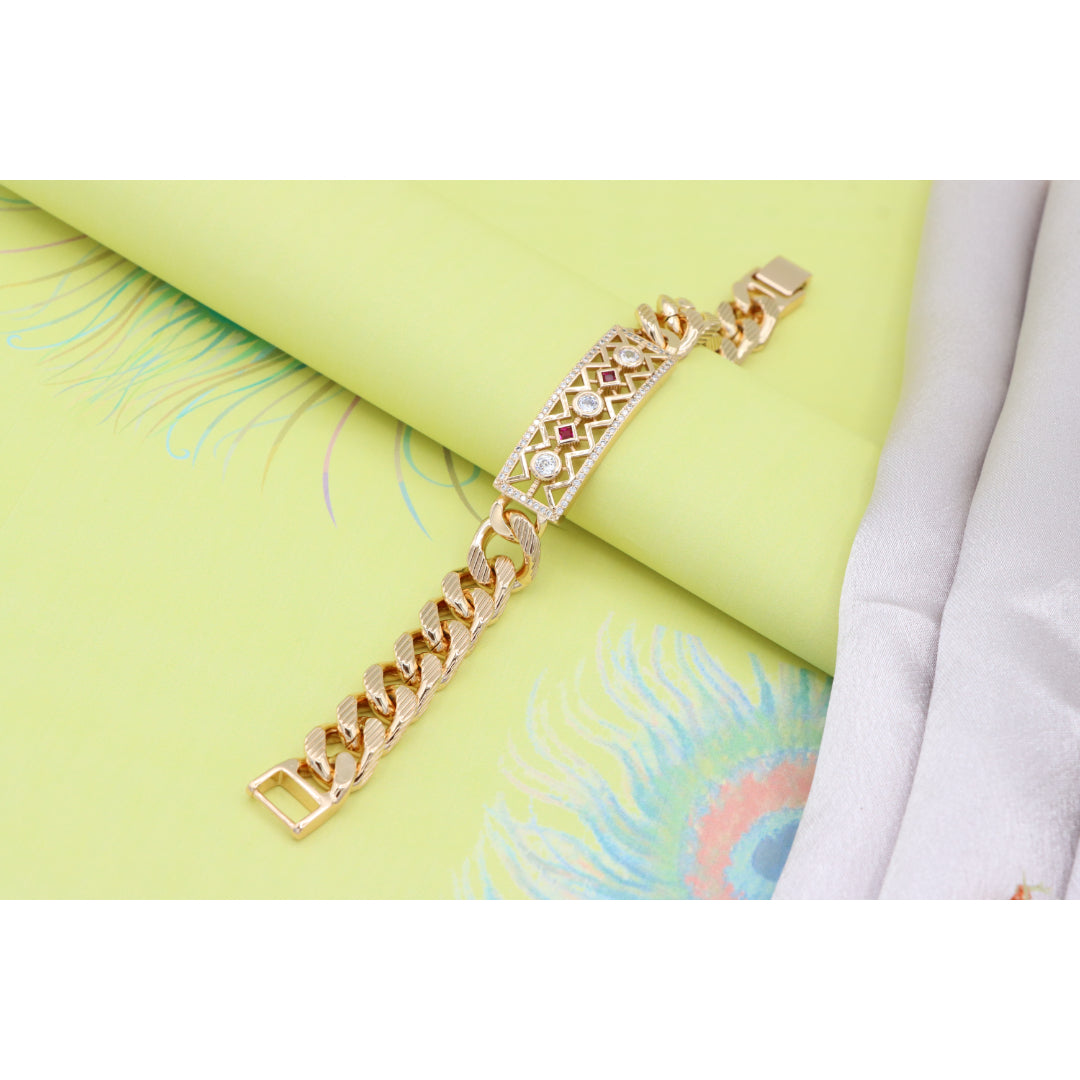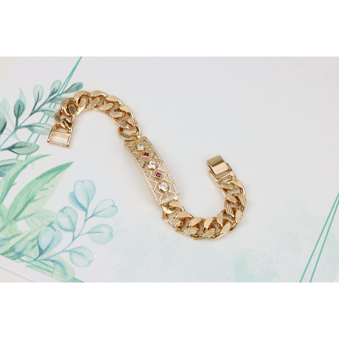 Rose Gold Cuban Link Bracelet with Geometric and Stone Detailing, XPBL0794