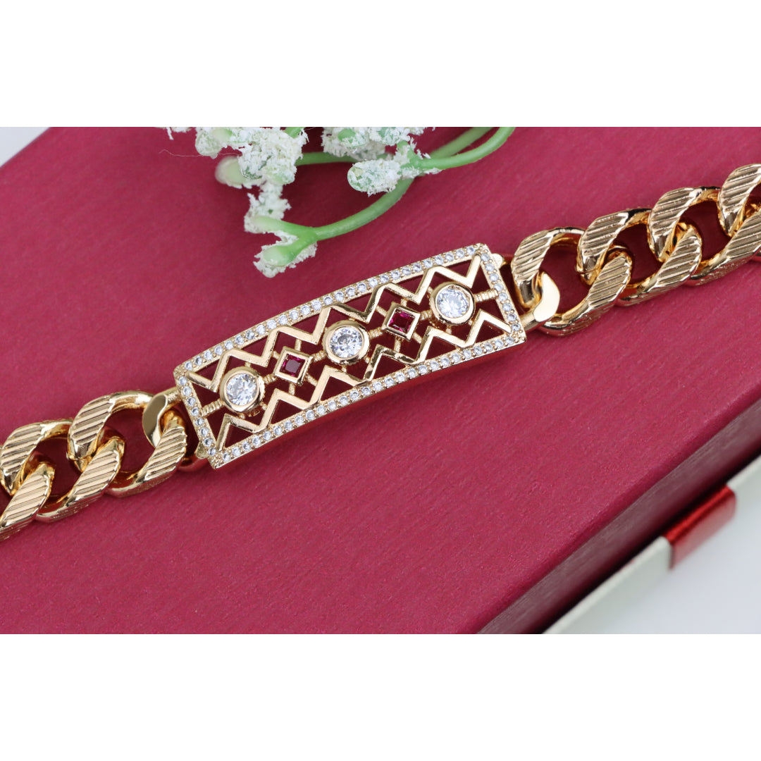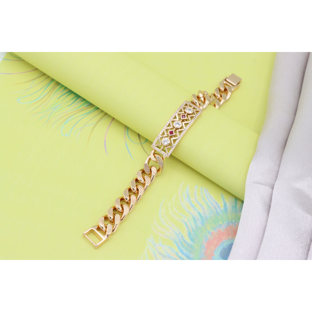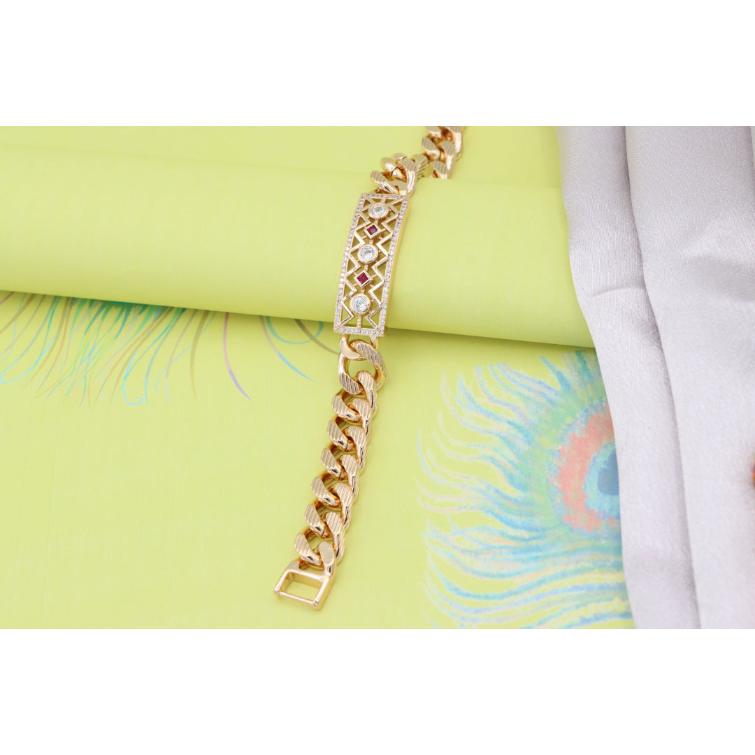 Rose Gold Cuban Link Bracelet with Geometric and Stone Detailing, XPBL0794