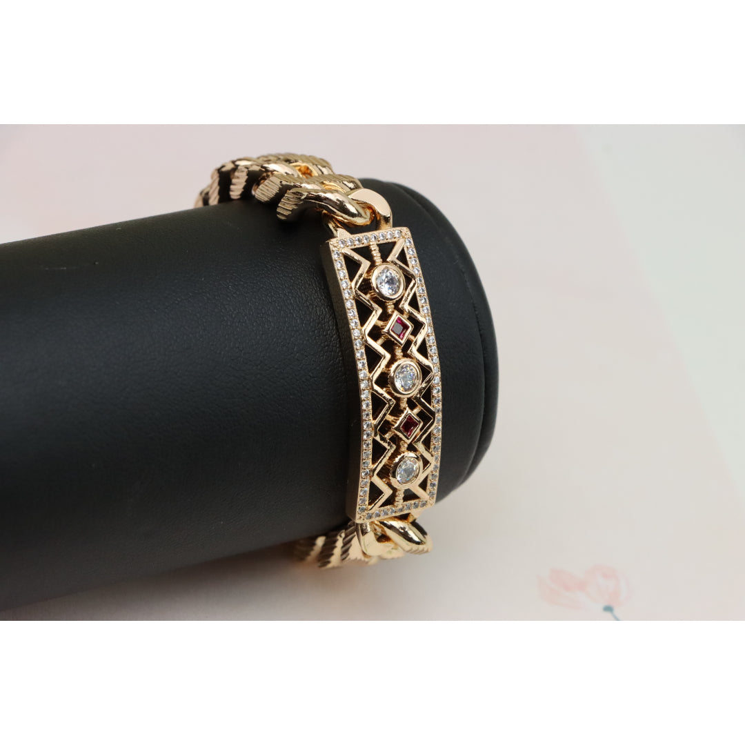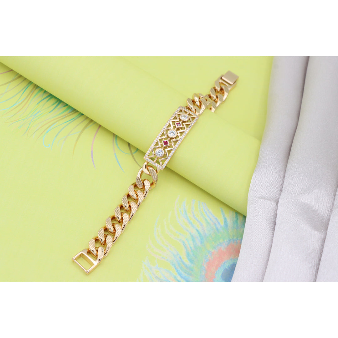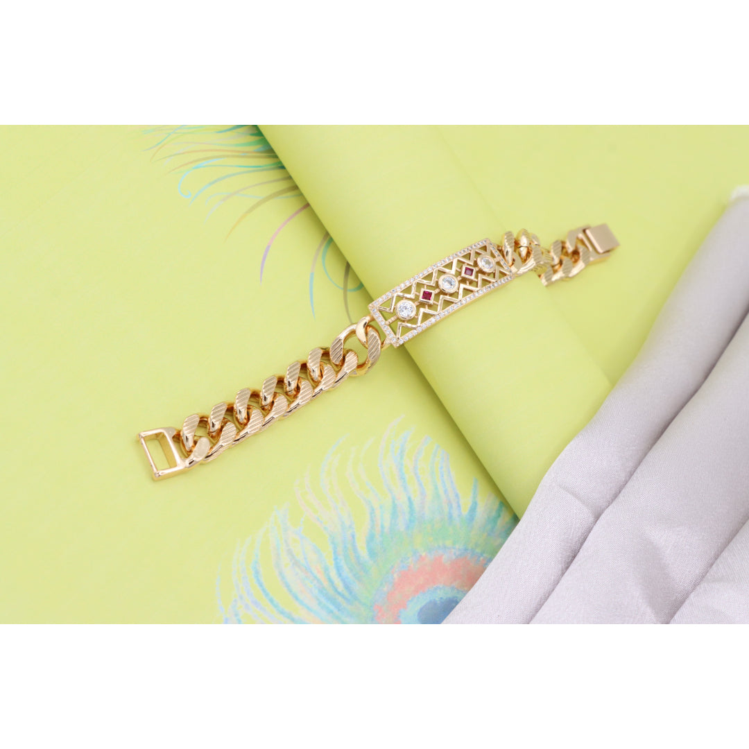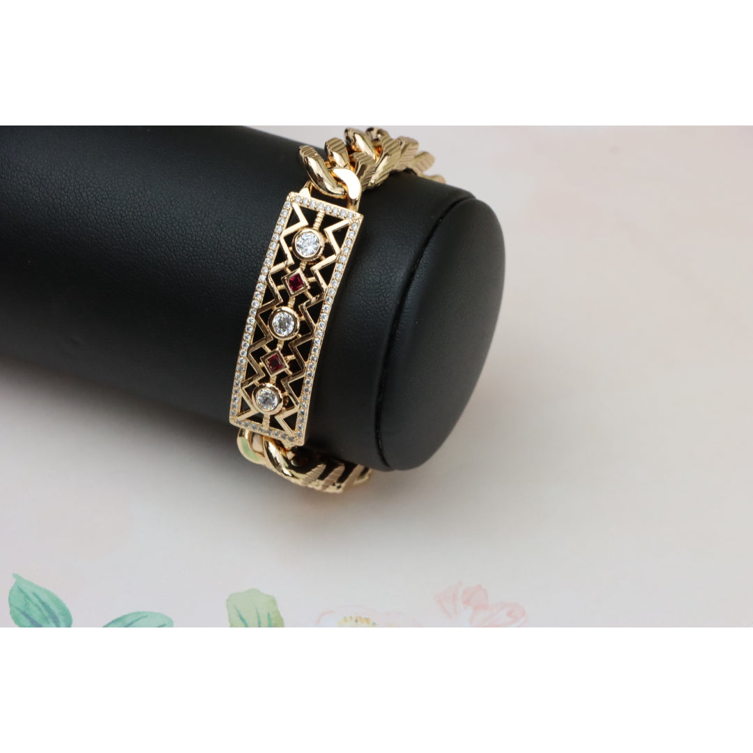 Rose Gold Cuban Link Bracelet with Geometric and Stone Detailing, XPBL0794