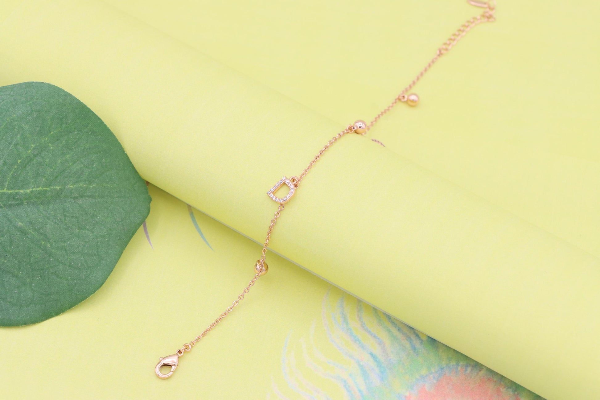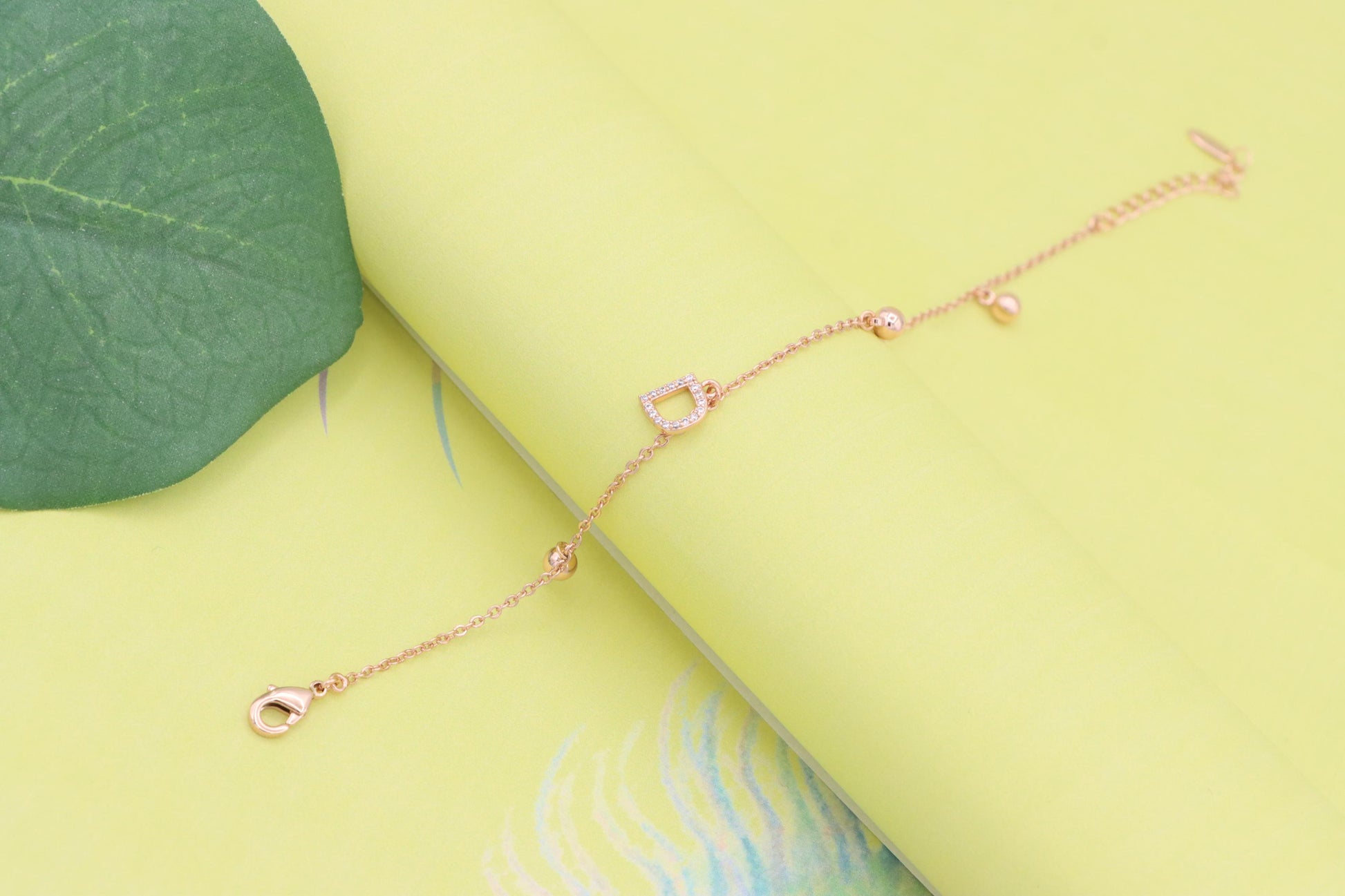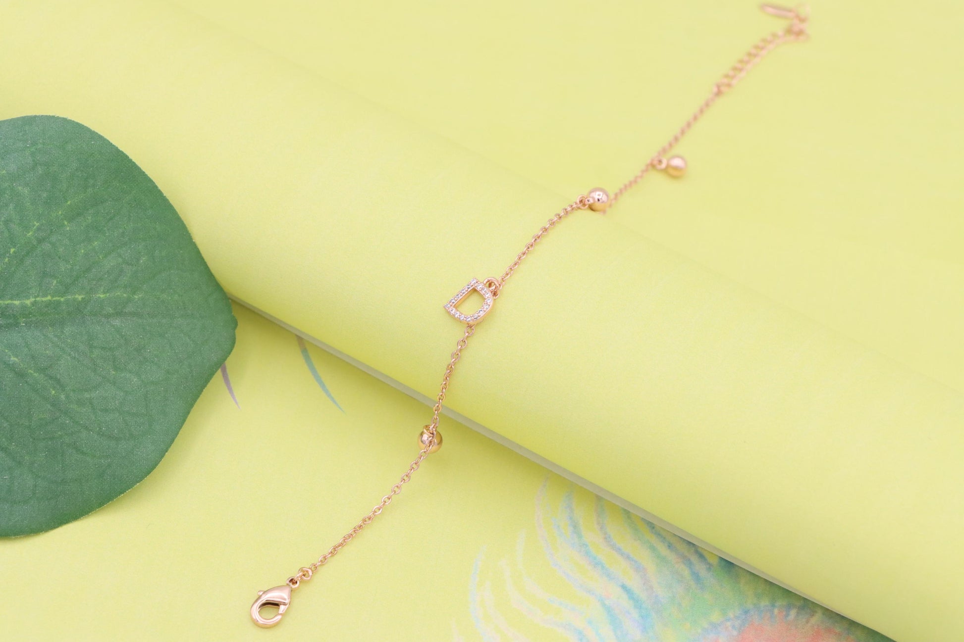 Elegant rose gold bracelet featuring a dazzling 'D' initial charm.