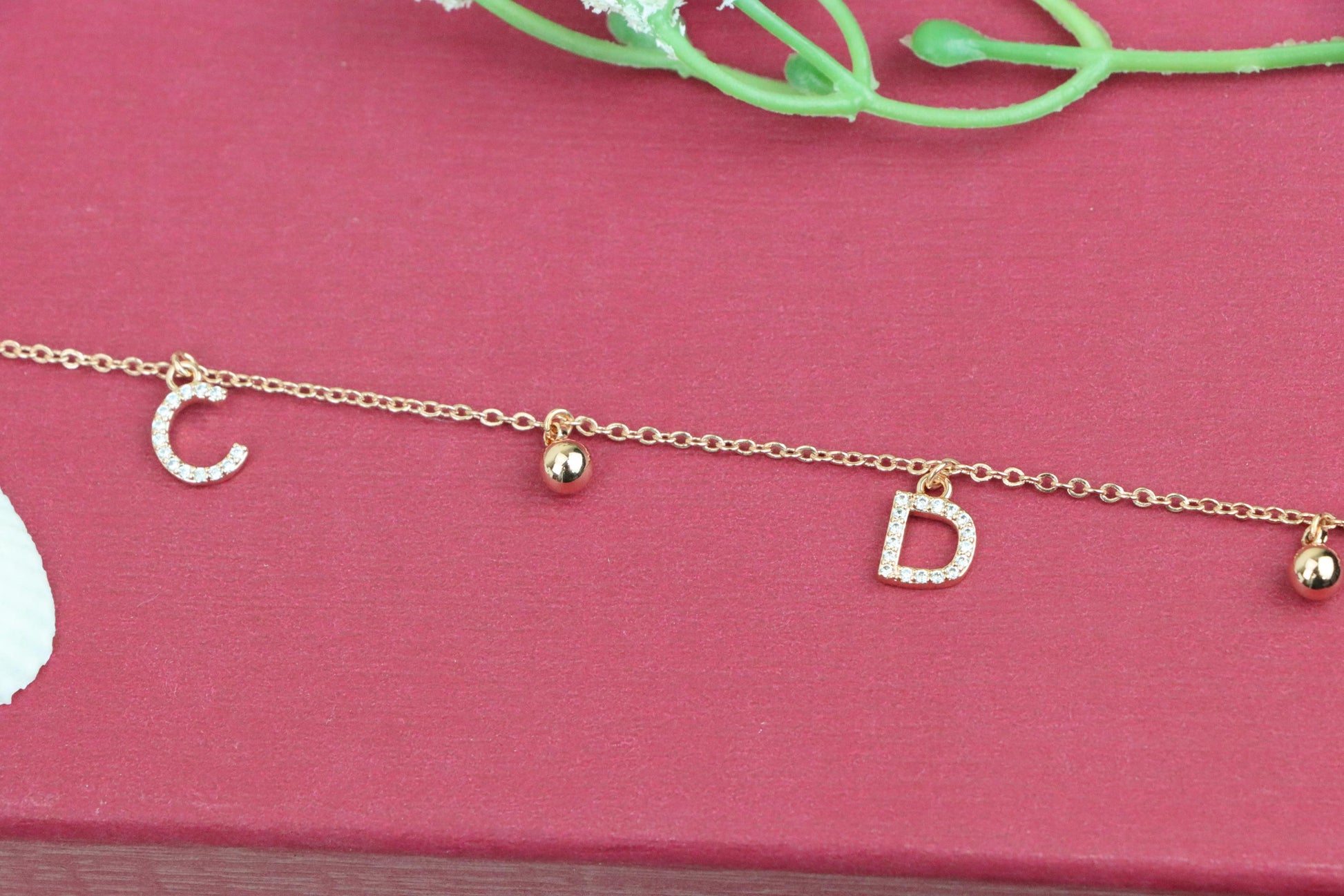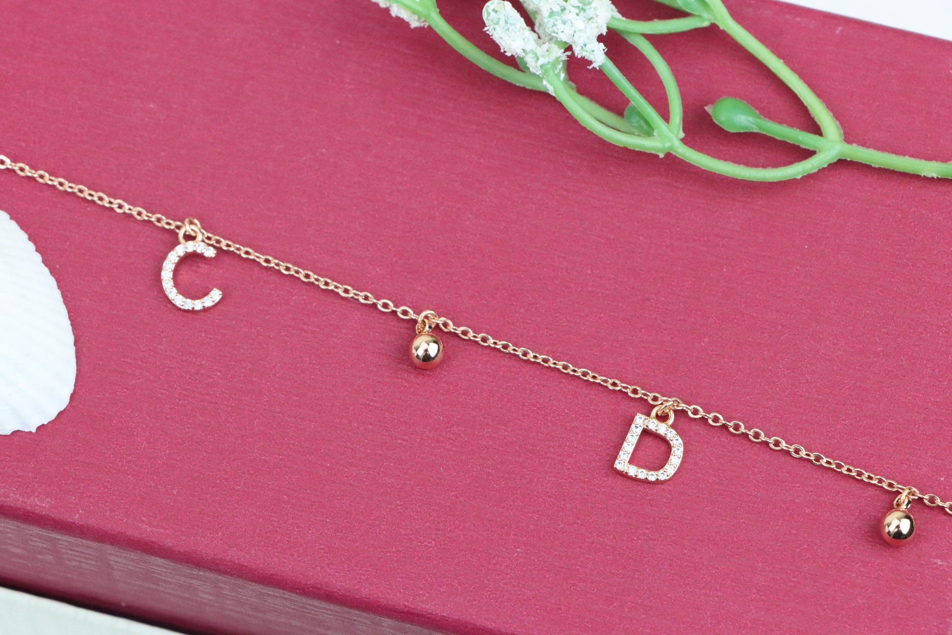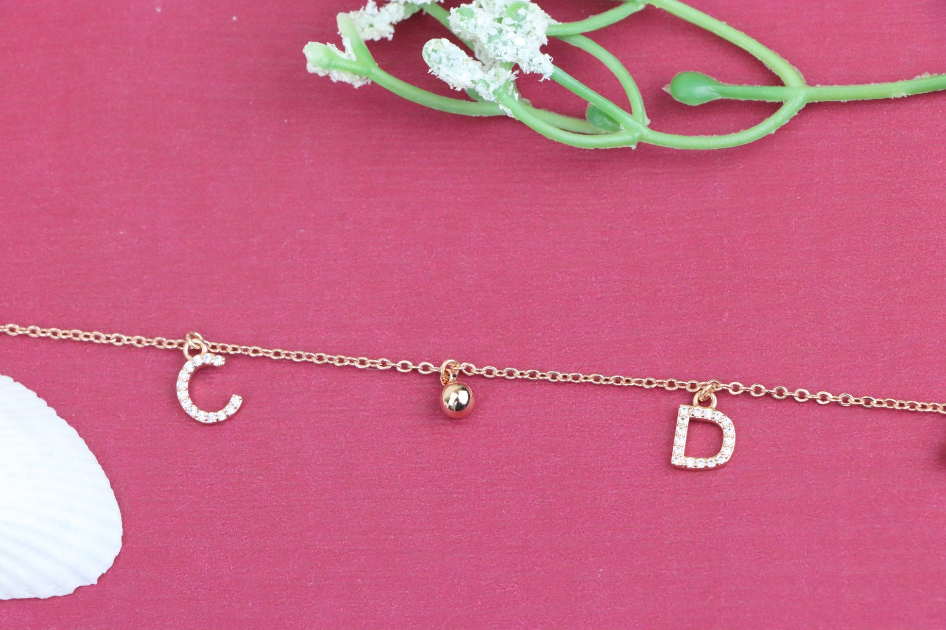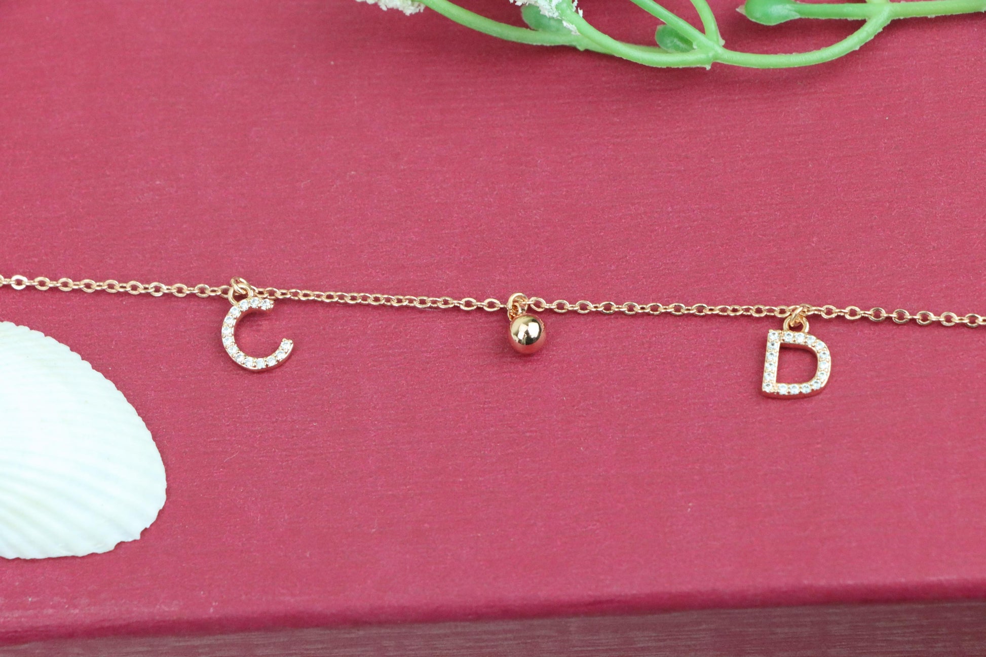 Elegant rose gold bracelet featuring a dazzling 'D' initial charm.