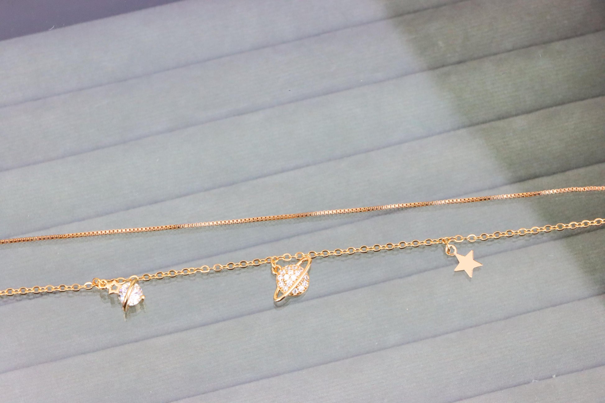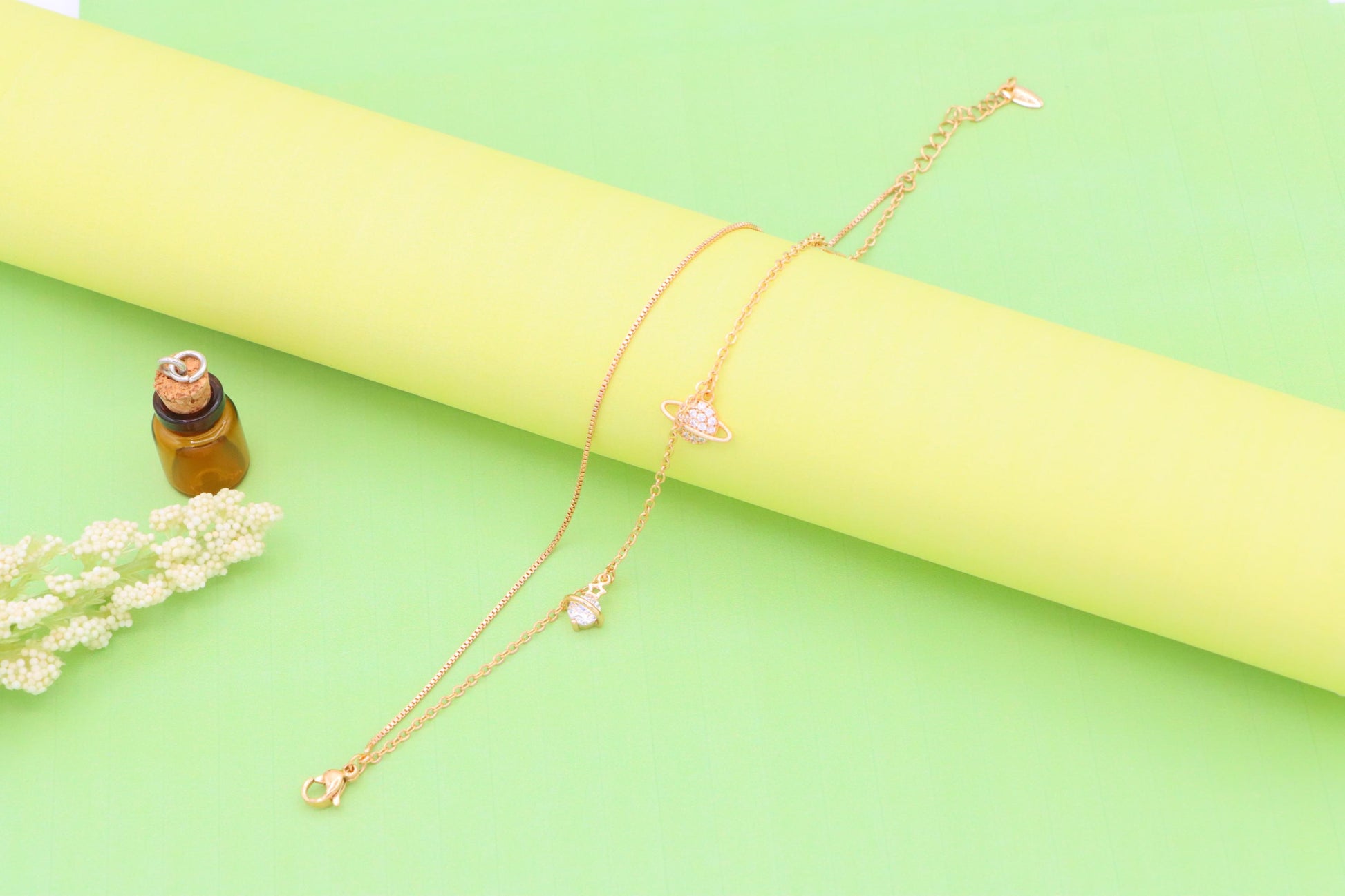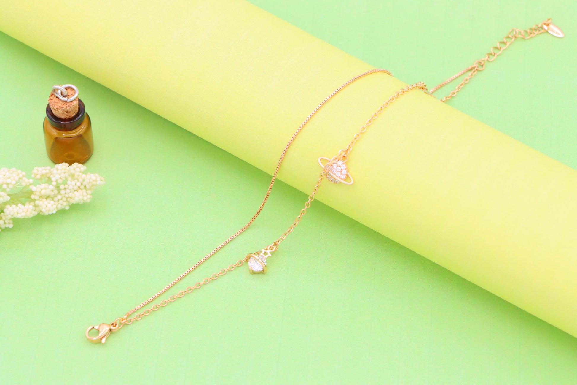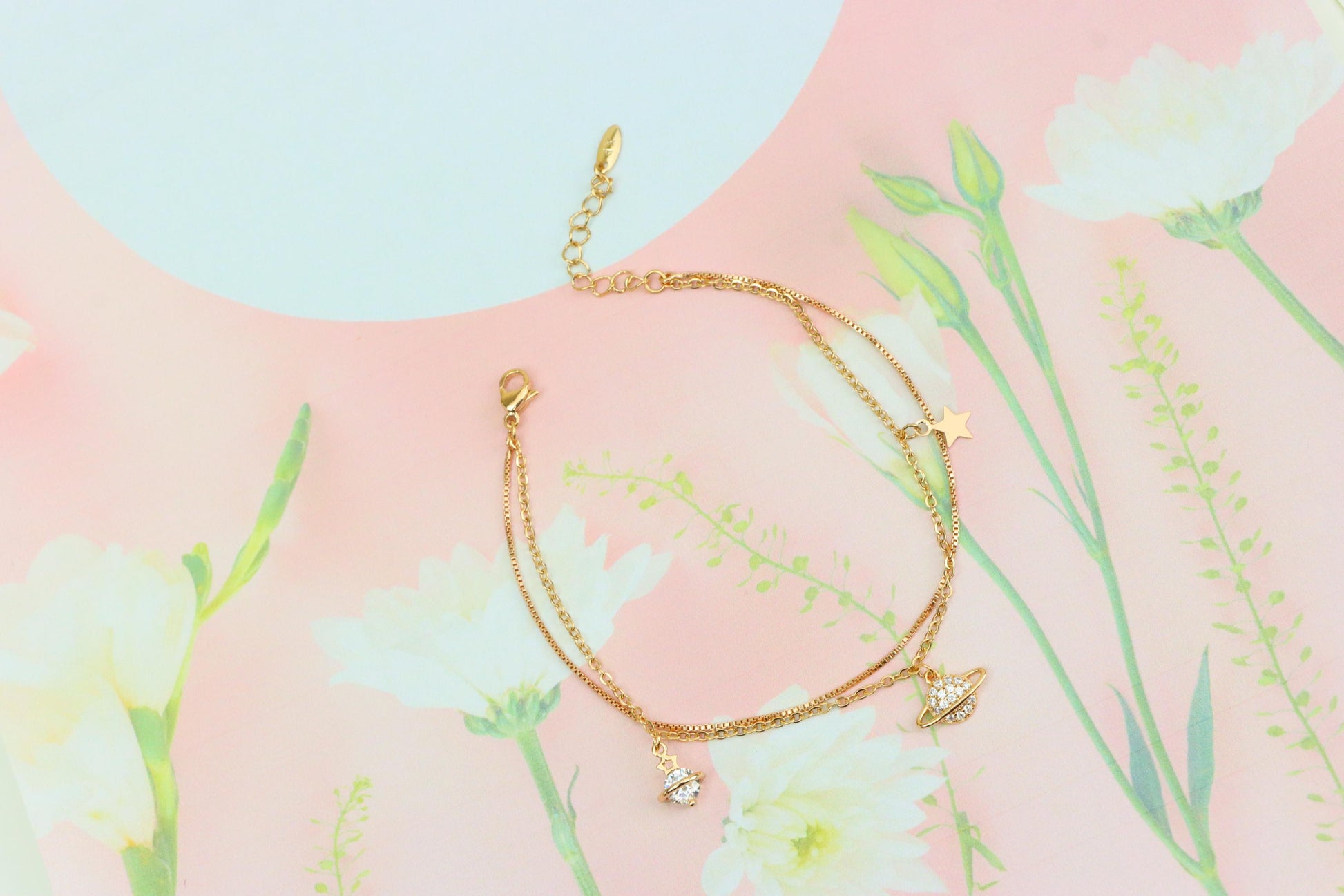 Rose Gold Double Layer Anklet with Planet and Star Charms, XPAL1049