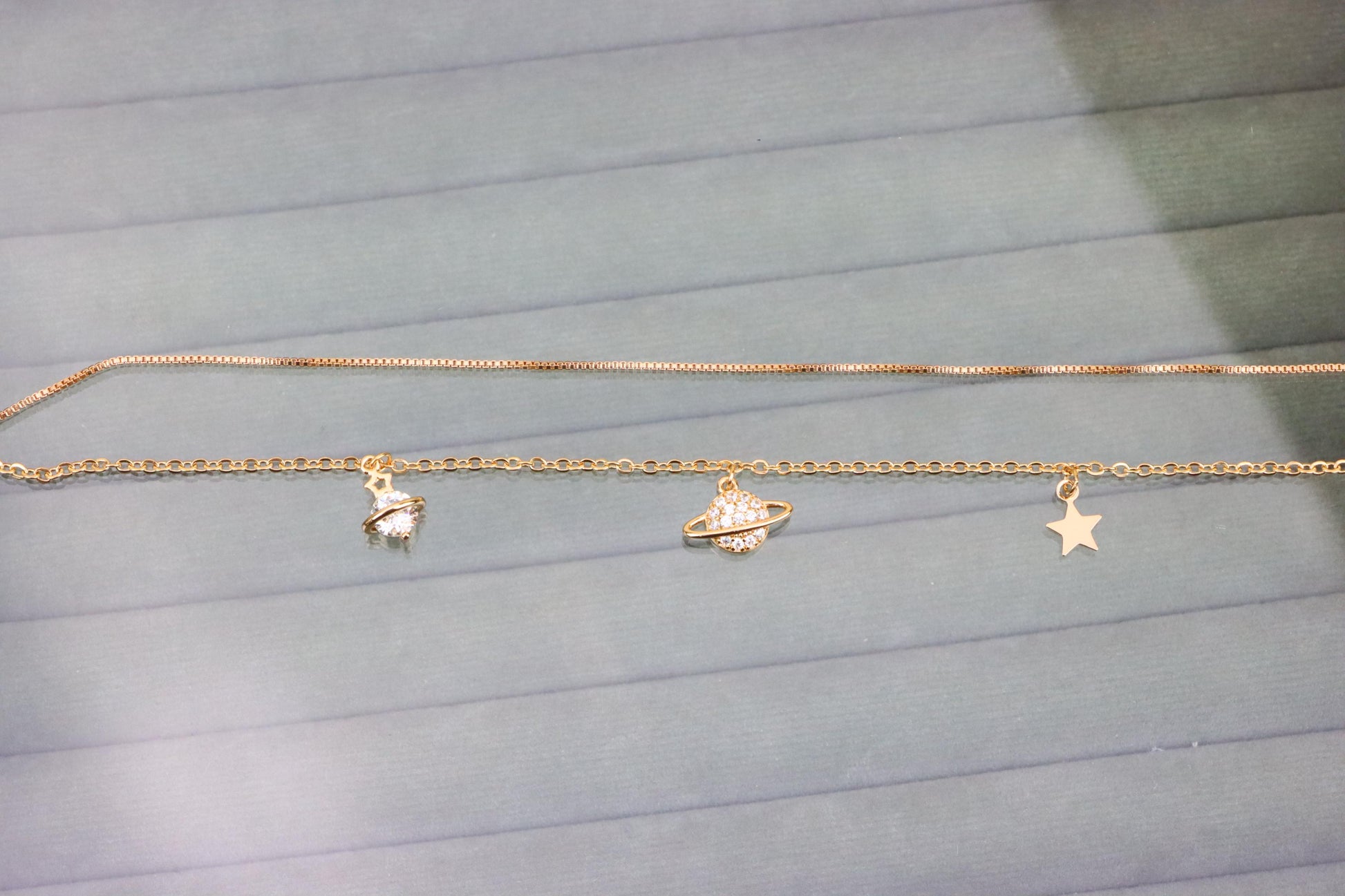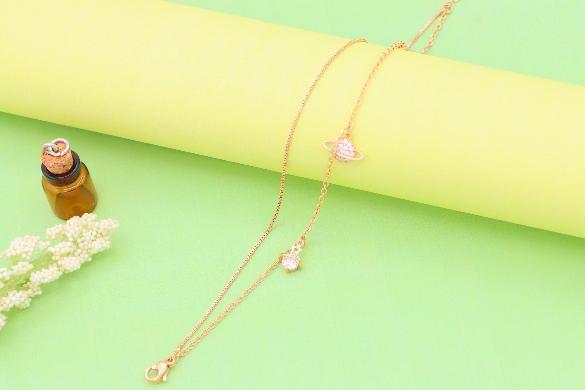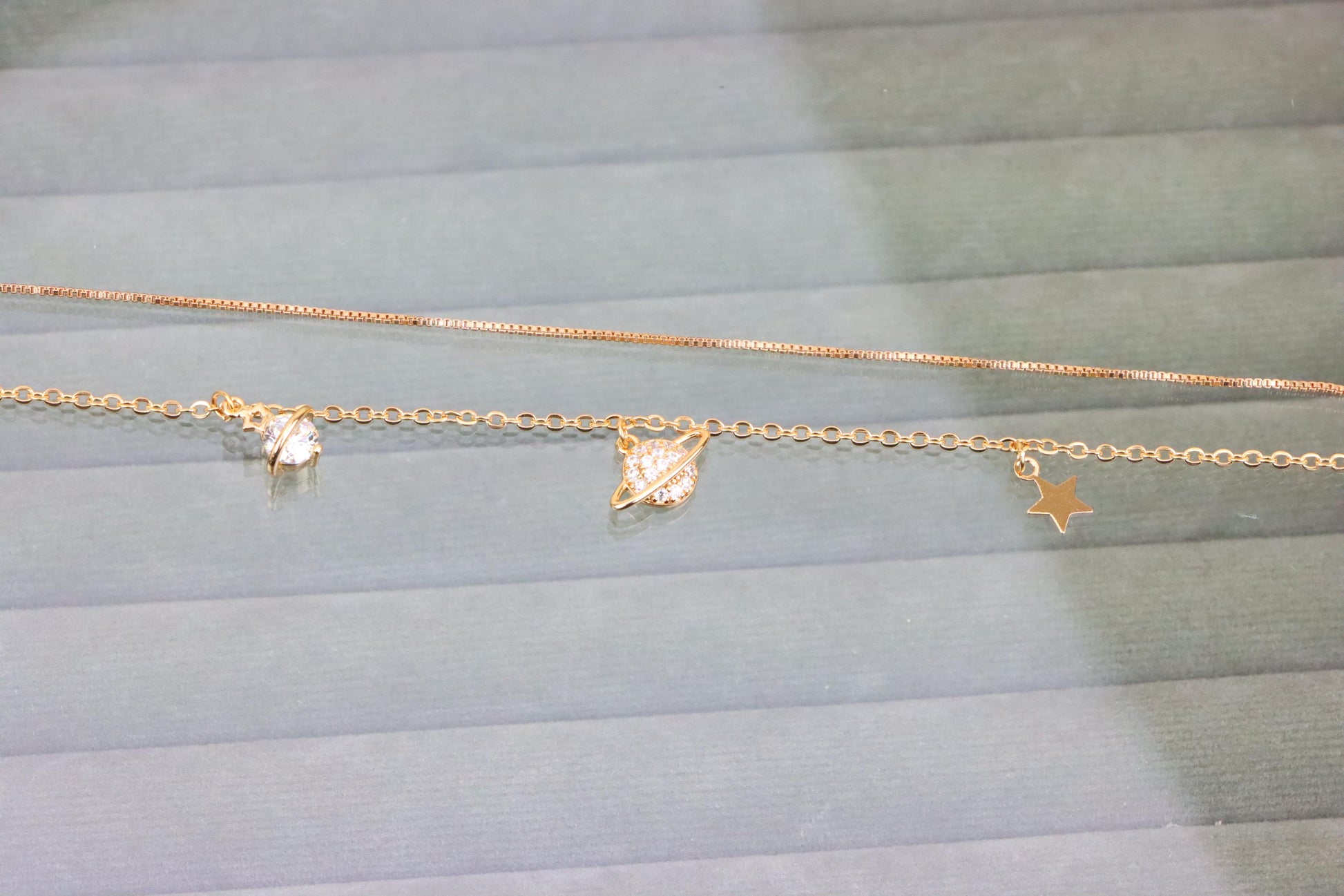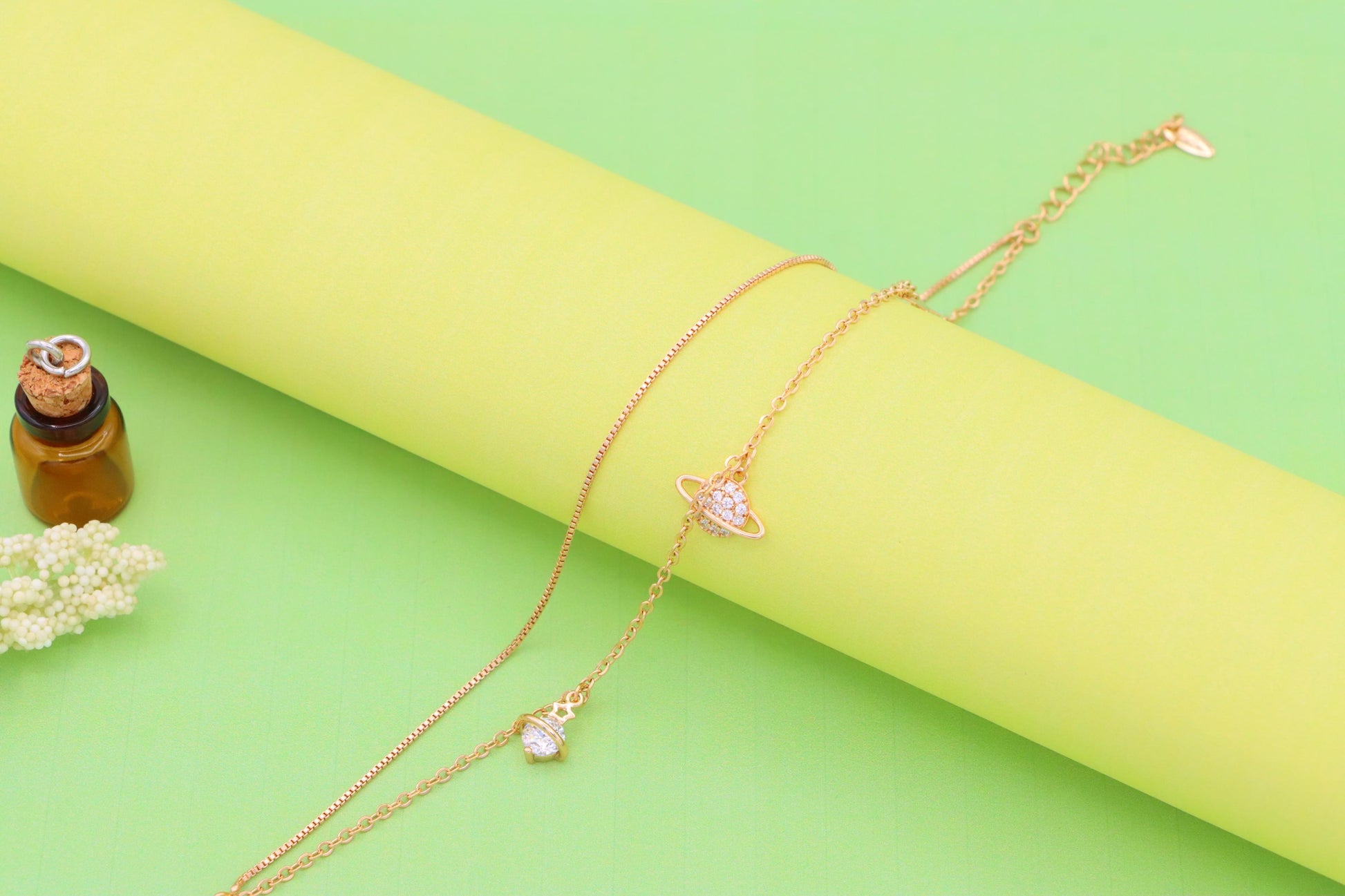 Rose Gold Double Layer Anklet with Planet and Star Charms, XPAL1049