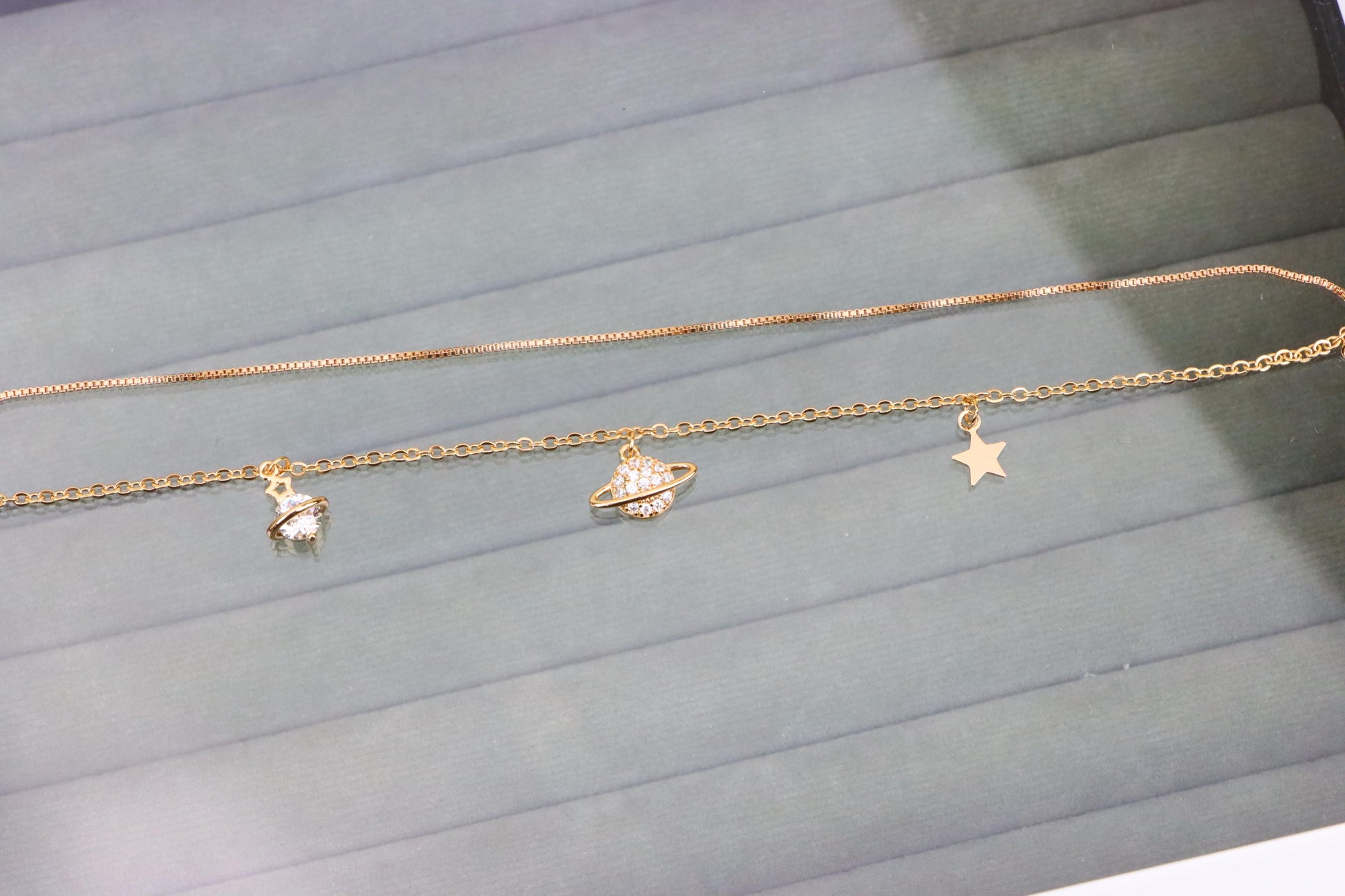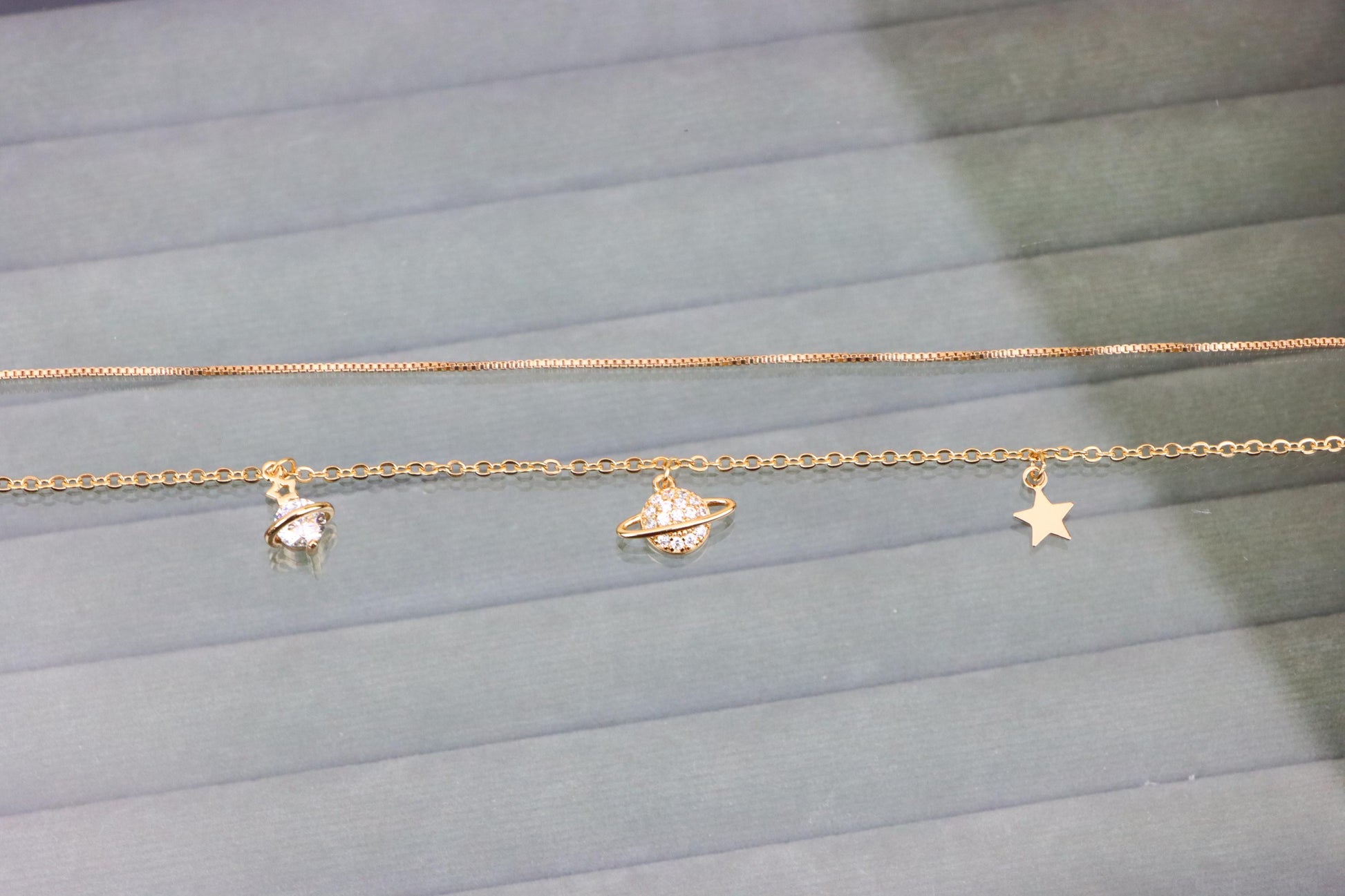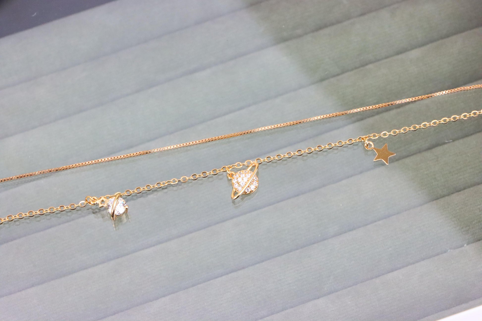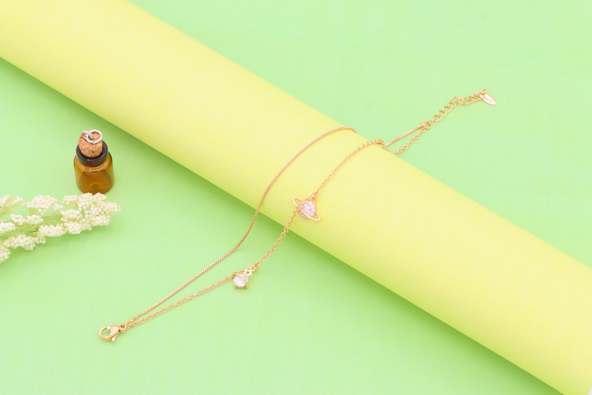 Rose Gold Double Layer Anklet with Planet and Star Charms, XPAL1049