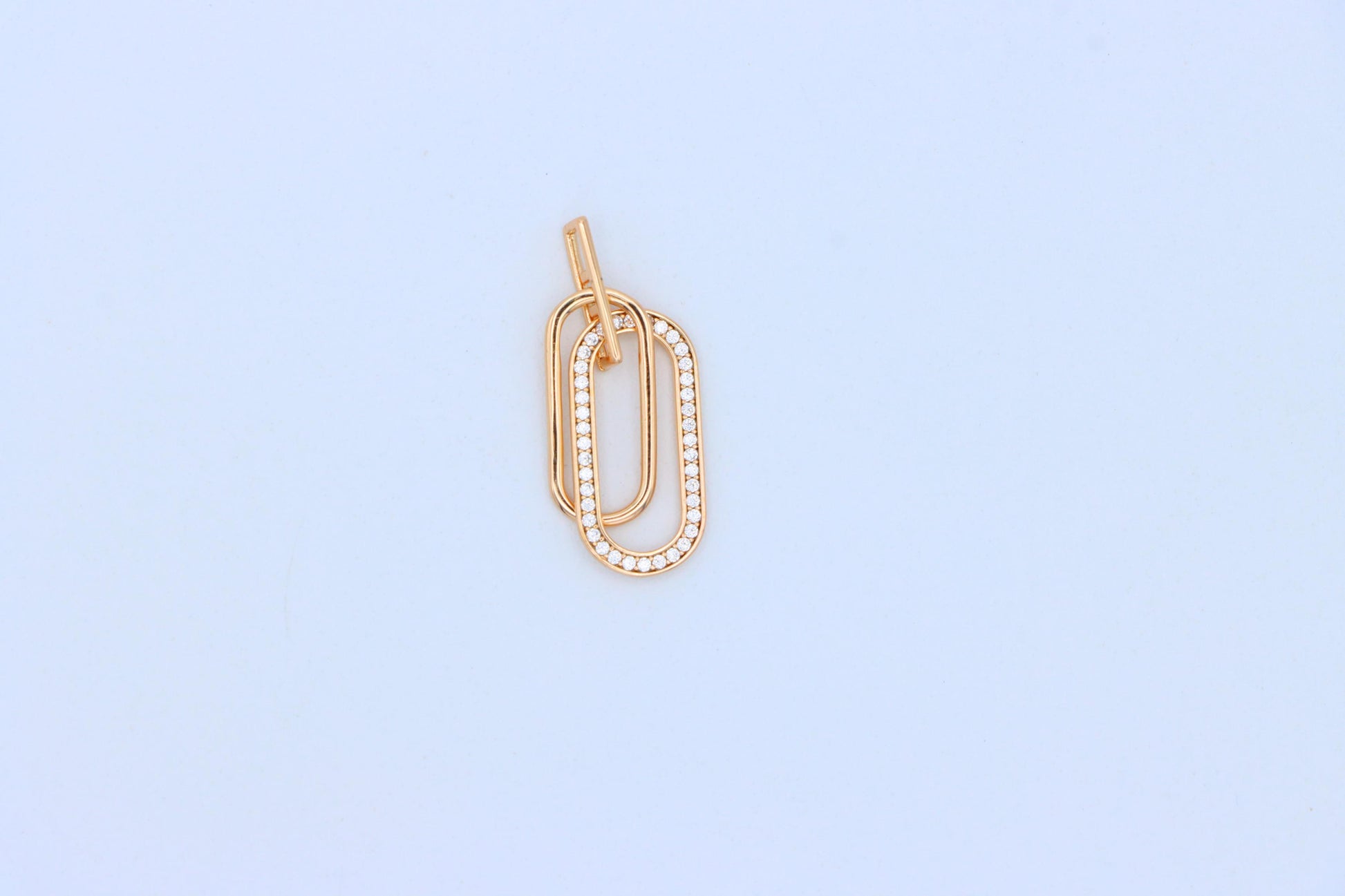 Stylish and modern pendant featuring two linked oval loops, one accented with crystals.