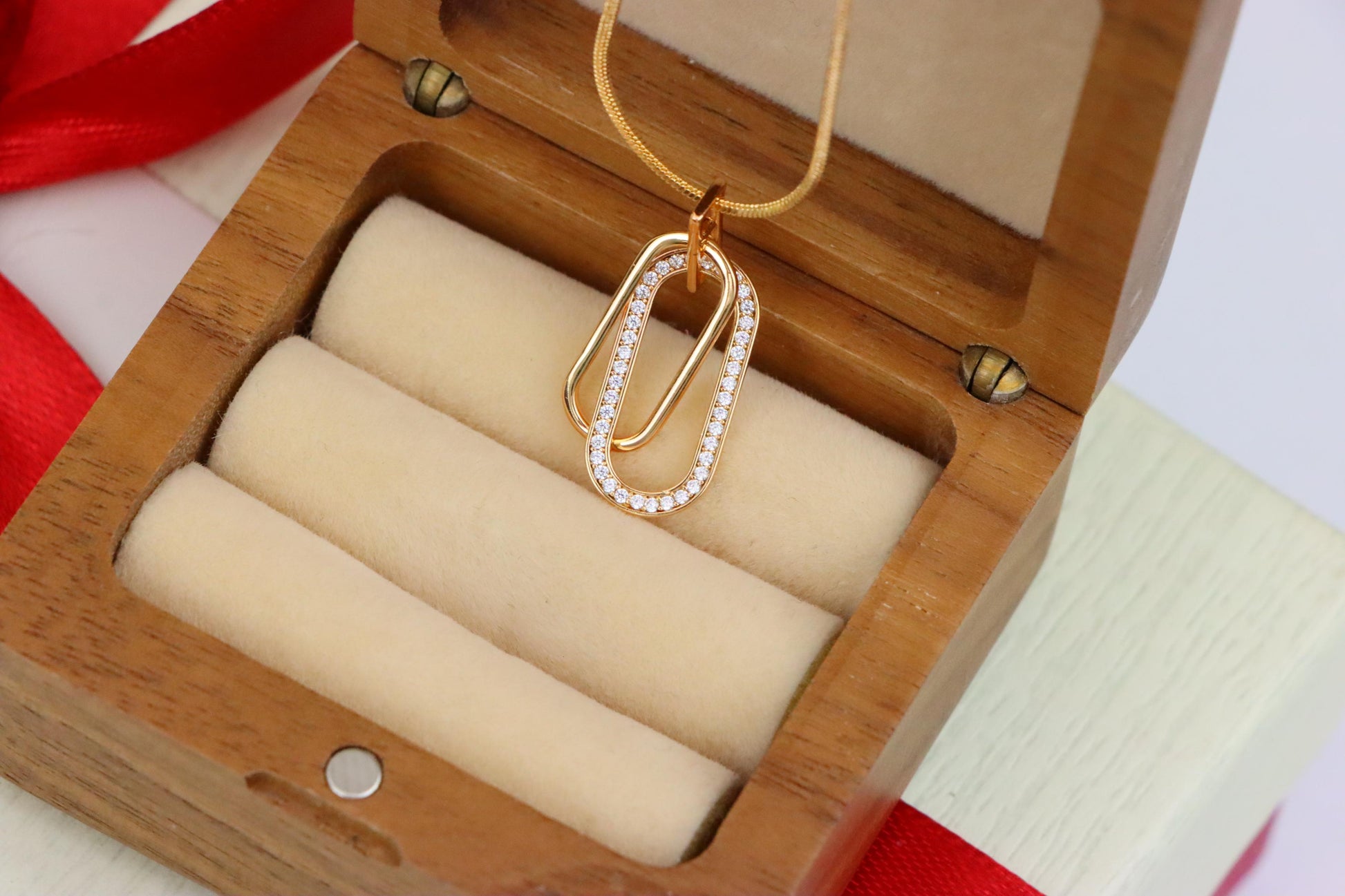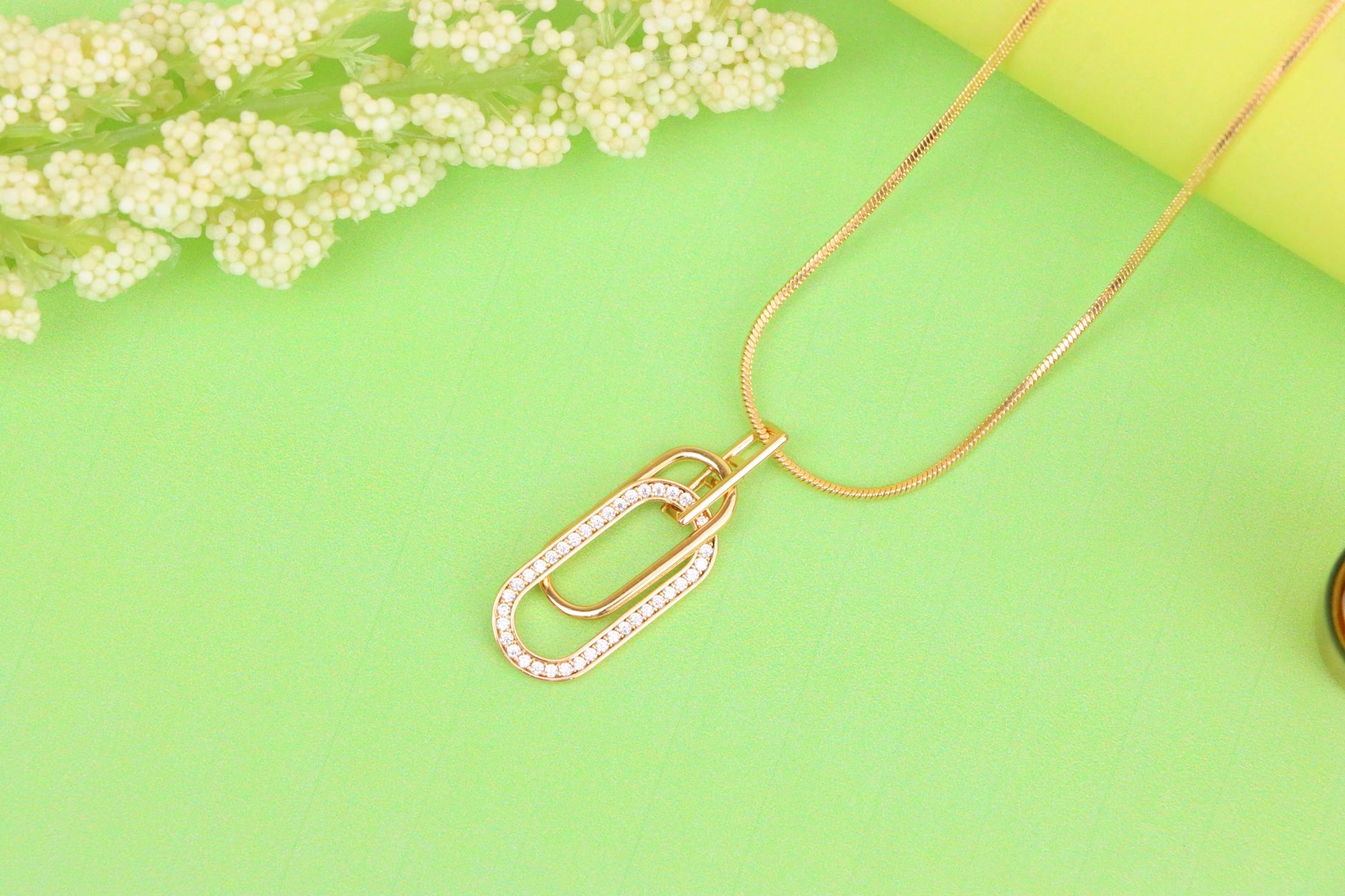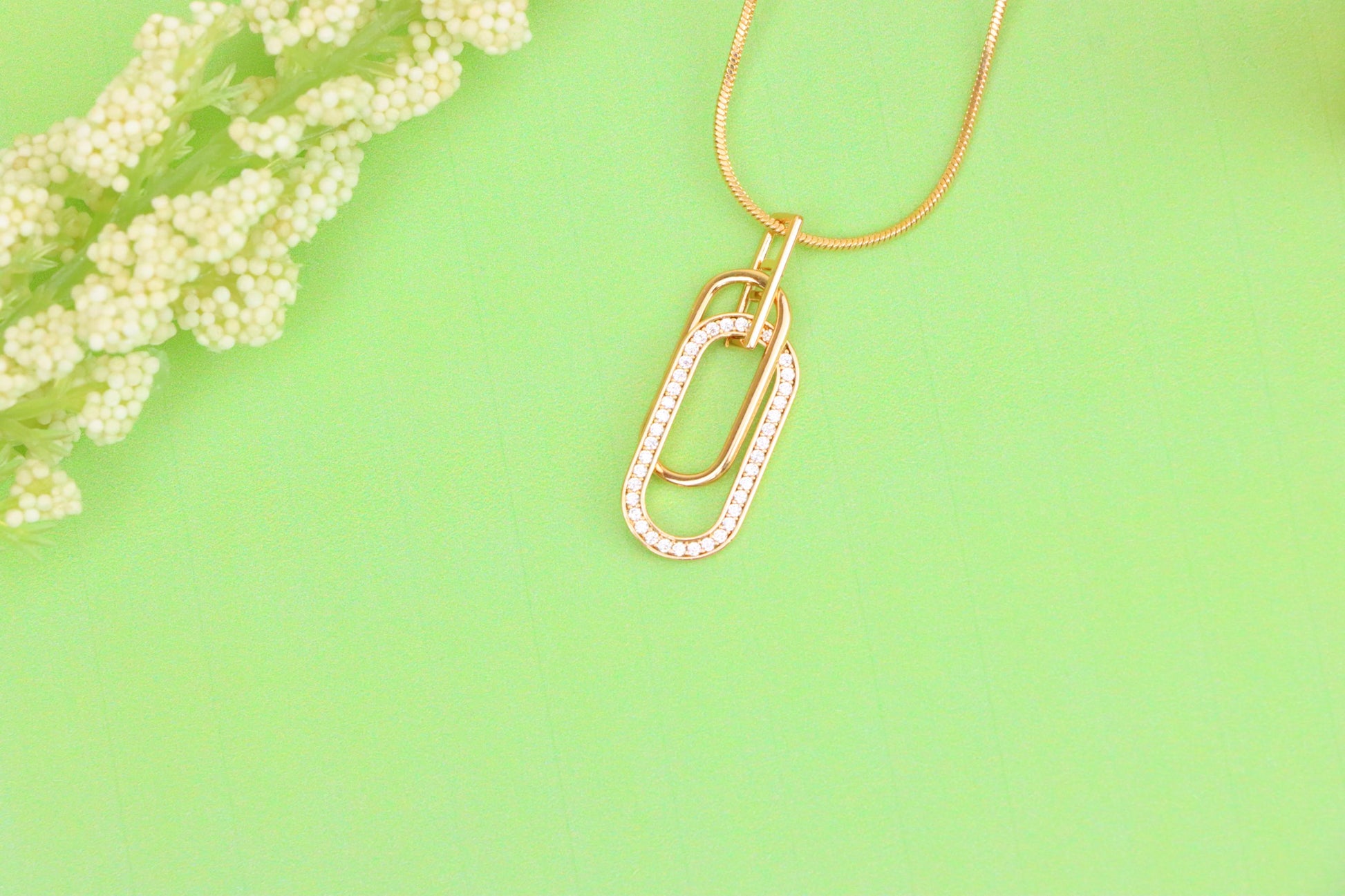 Rose Gold Dual Link Pendant with Sparkling Crystal Detailing, XPPT1512