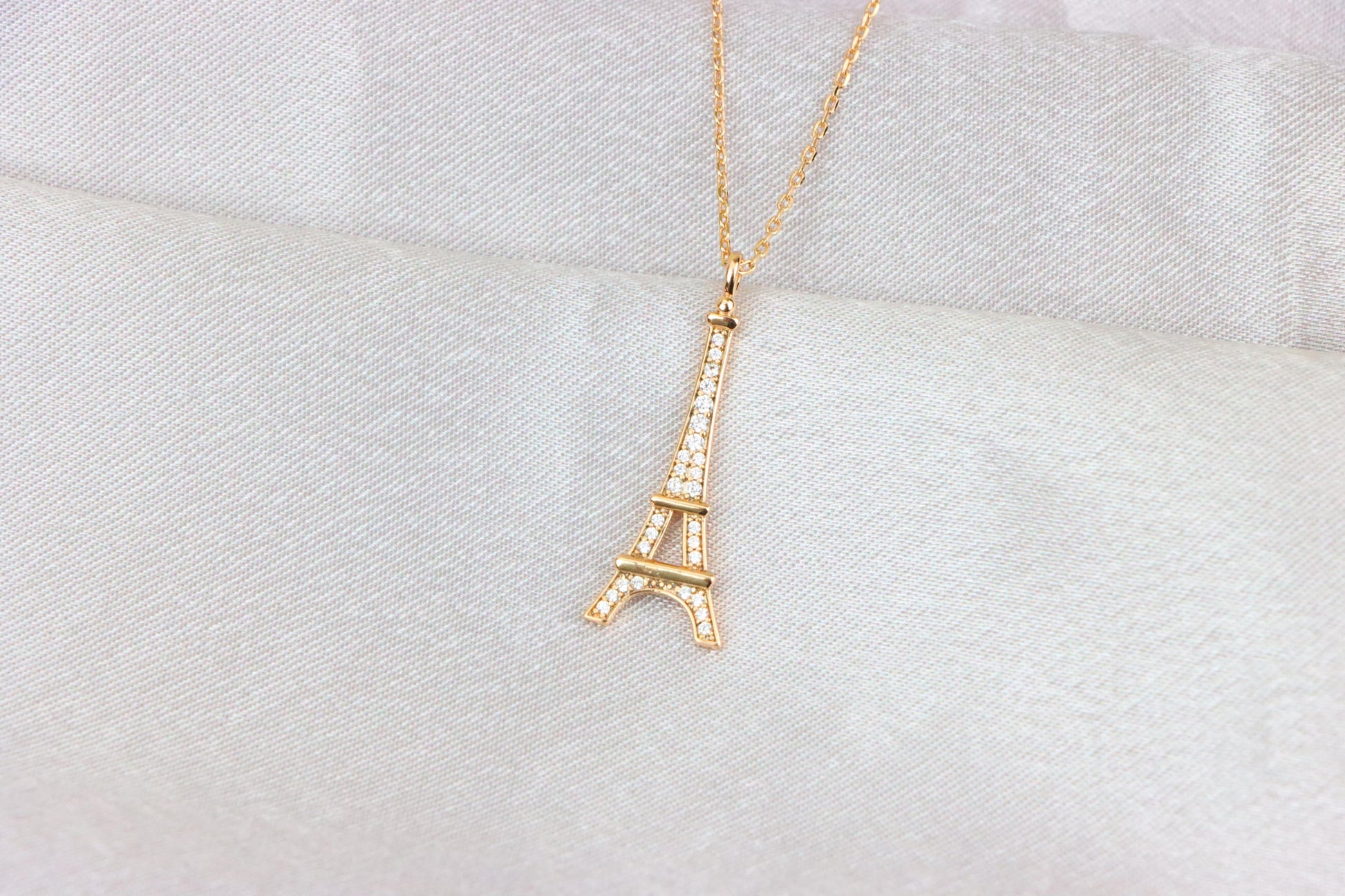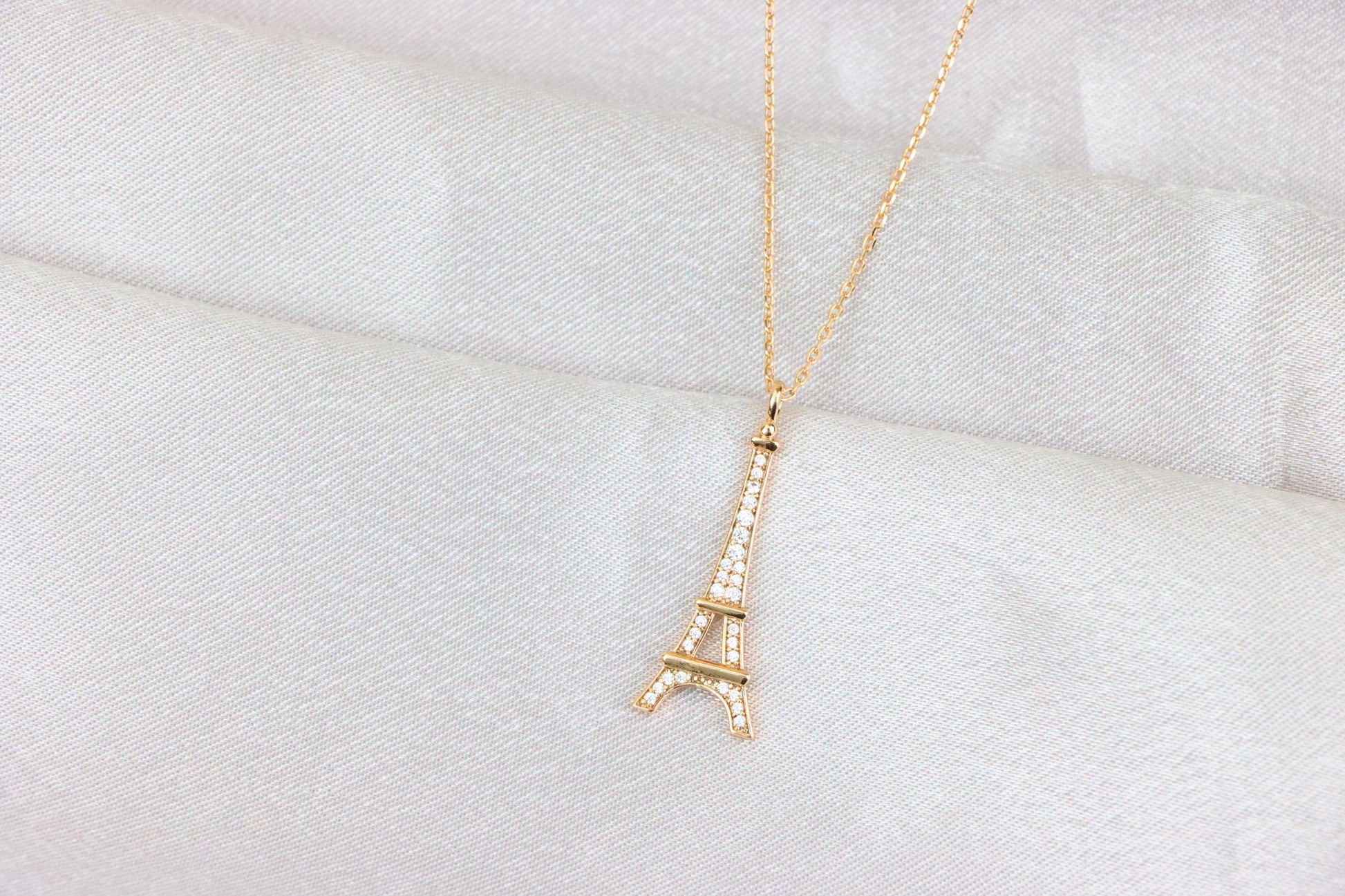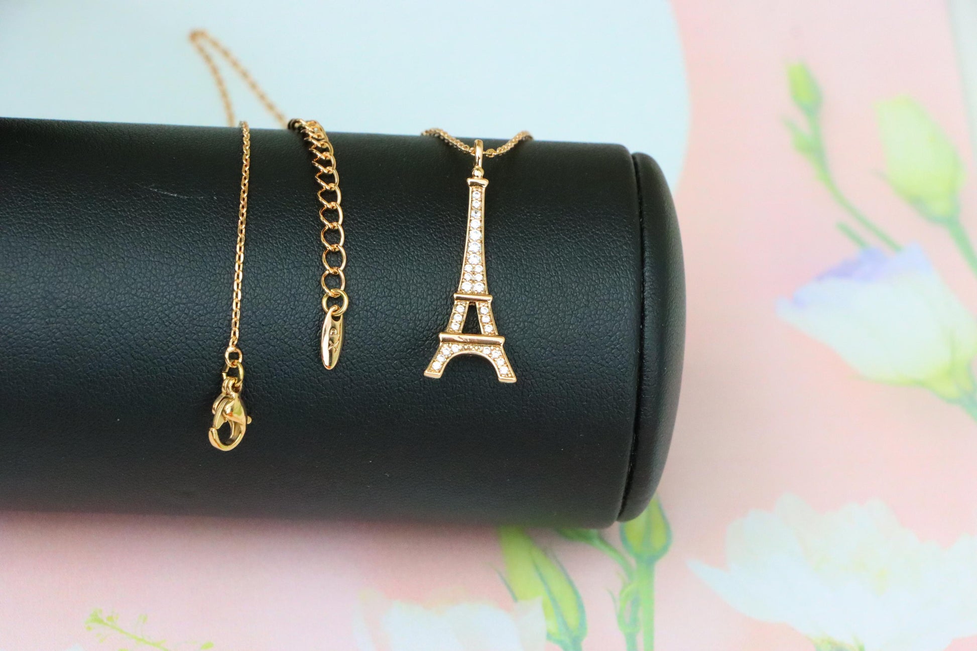 ✔ Eiffel Tower pendant with shimmering crystal accents