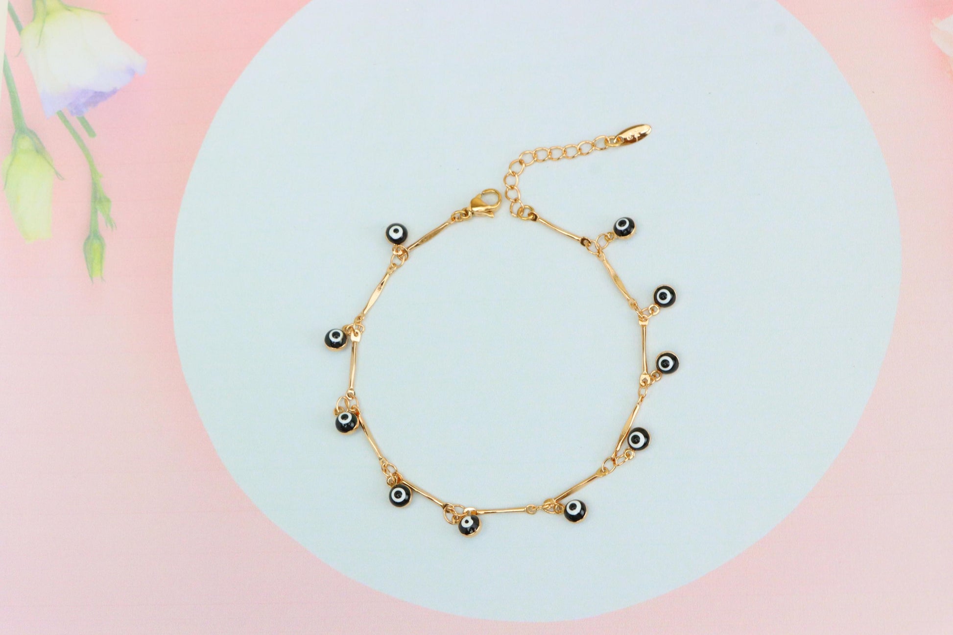 ✅ Features black enamel evil eye charms for protection & style