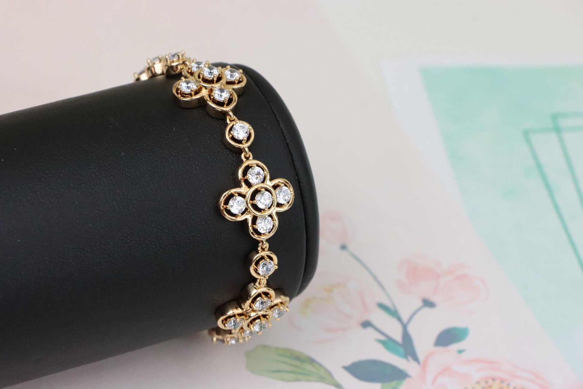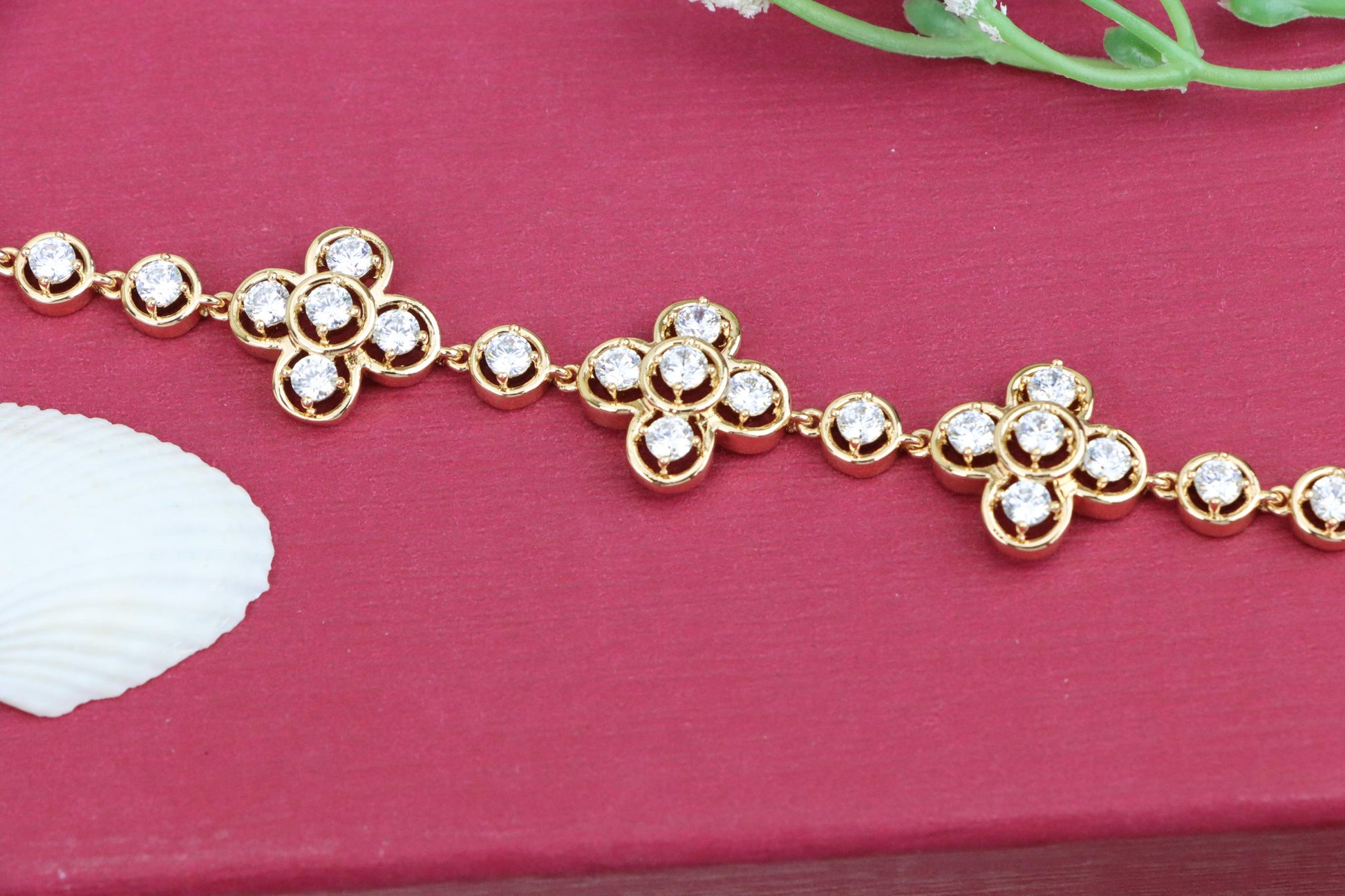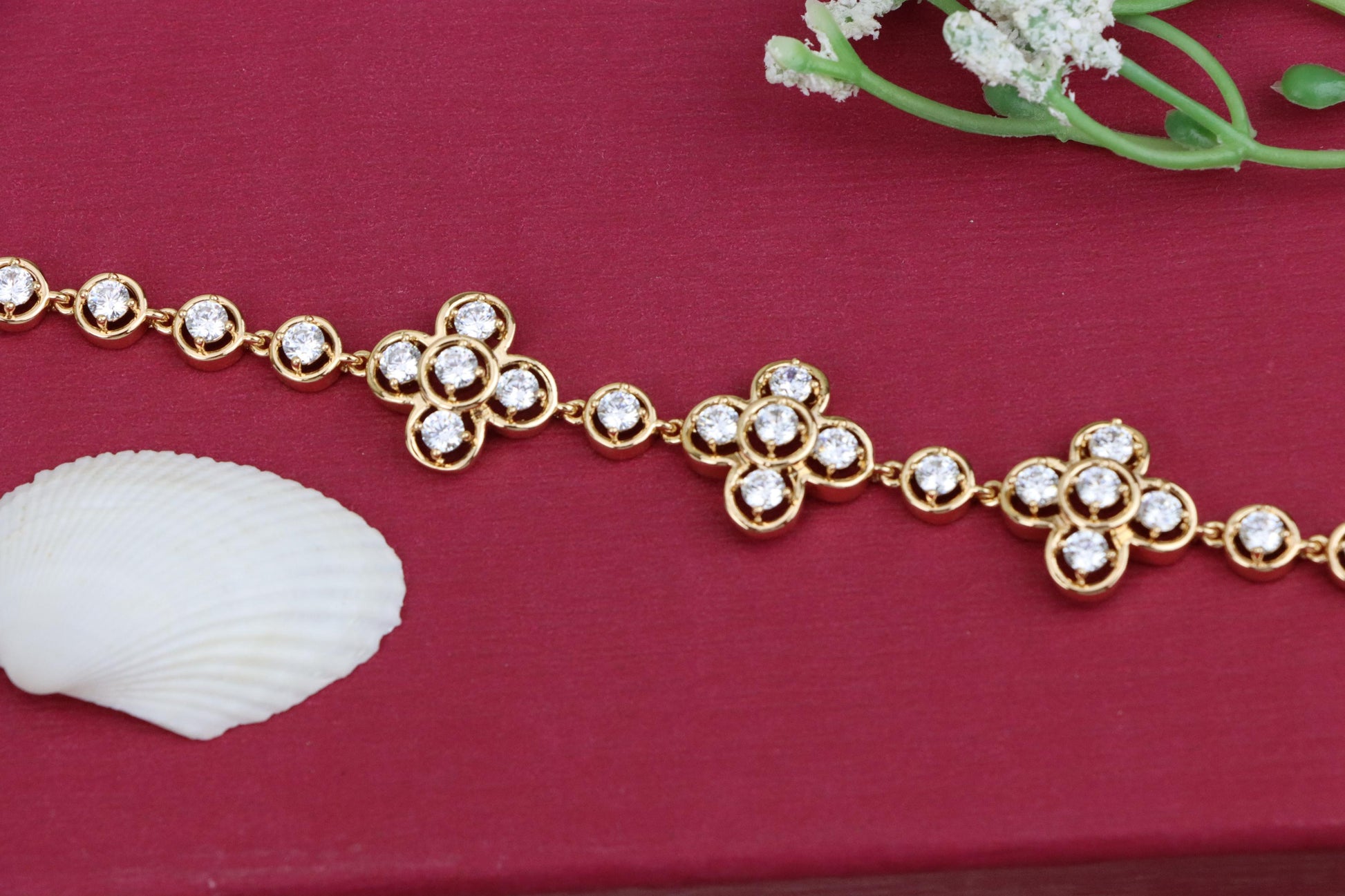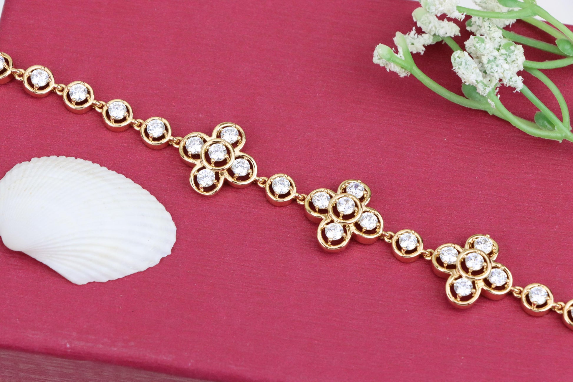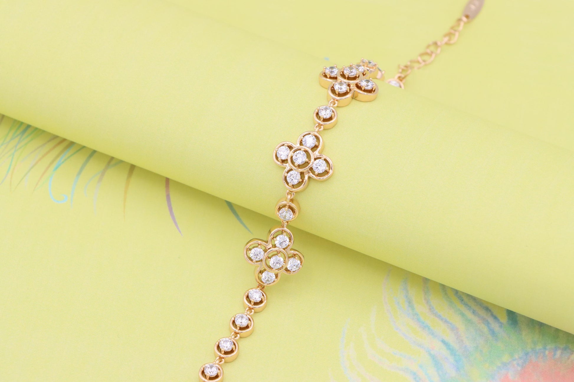 Elegant rose gold bracelet featuring a floral-inspired design with sparkling crystal clusters.