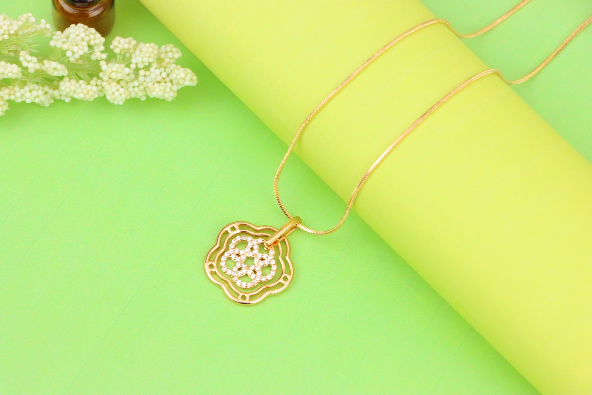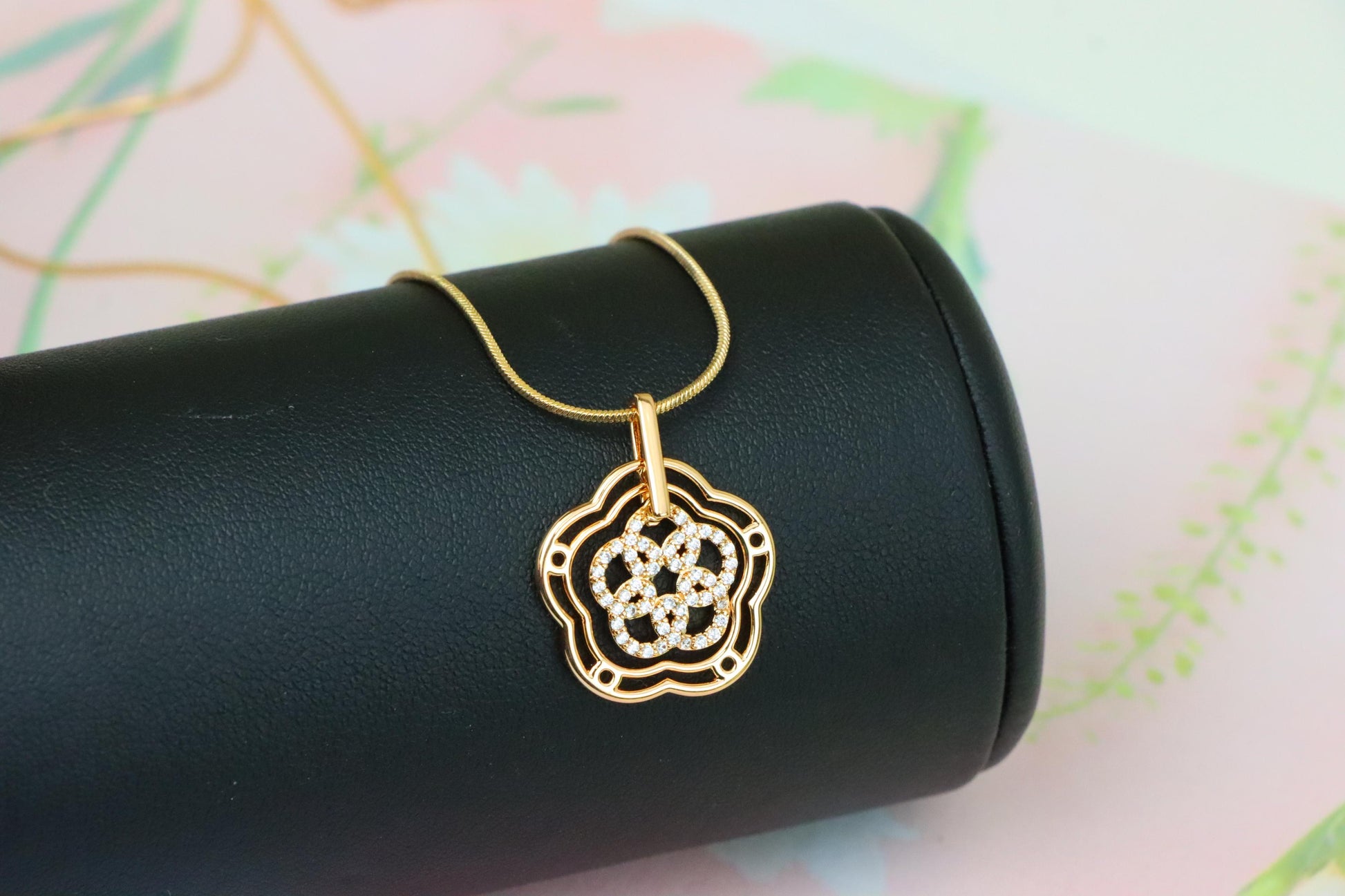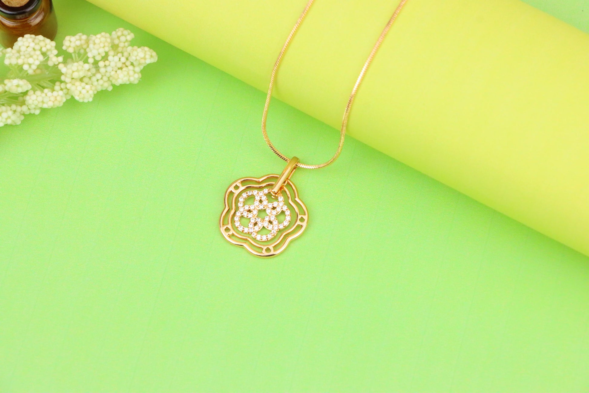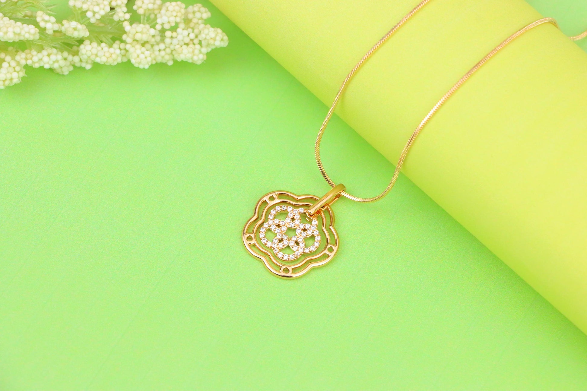 Designed to make a subtle yet elegant statement, this rose gold floral pendant combines symmetry with sparkle. Made with gold-plated high-quality brass and measuring approximately 0.79 x 0.79 inches, it's perfect for both casual and formal wear.