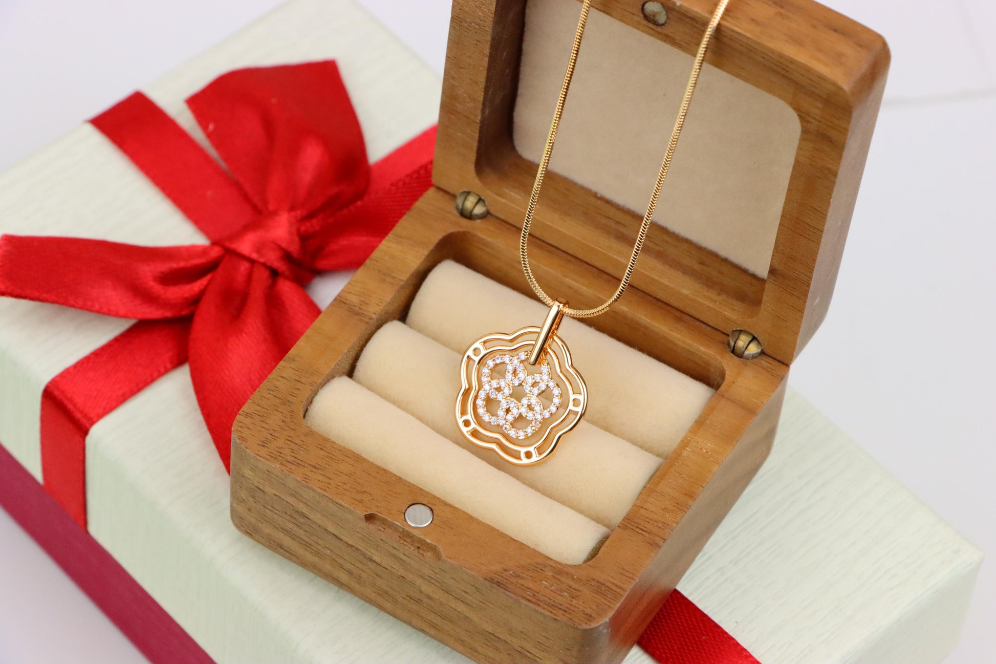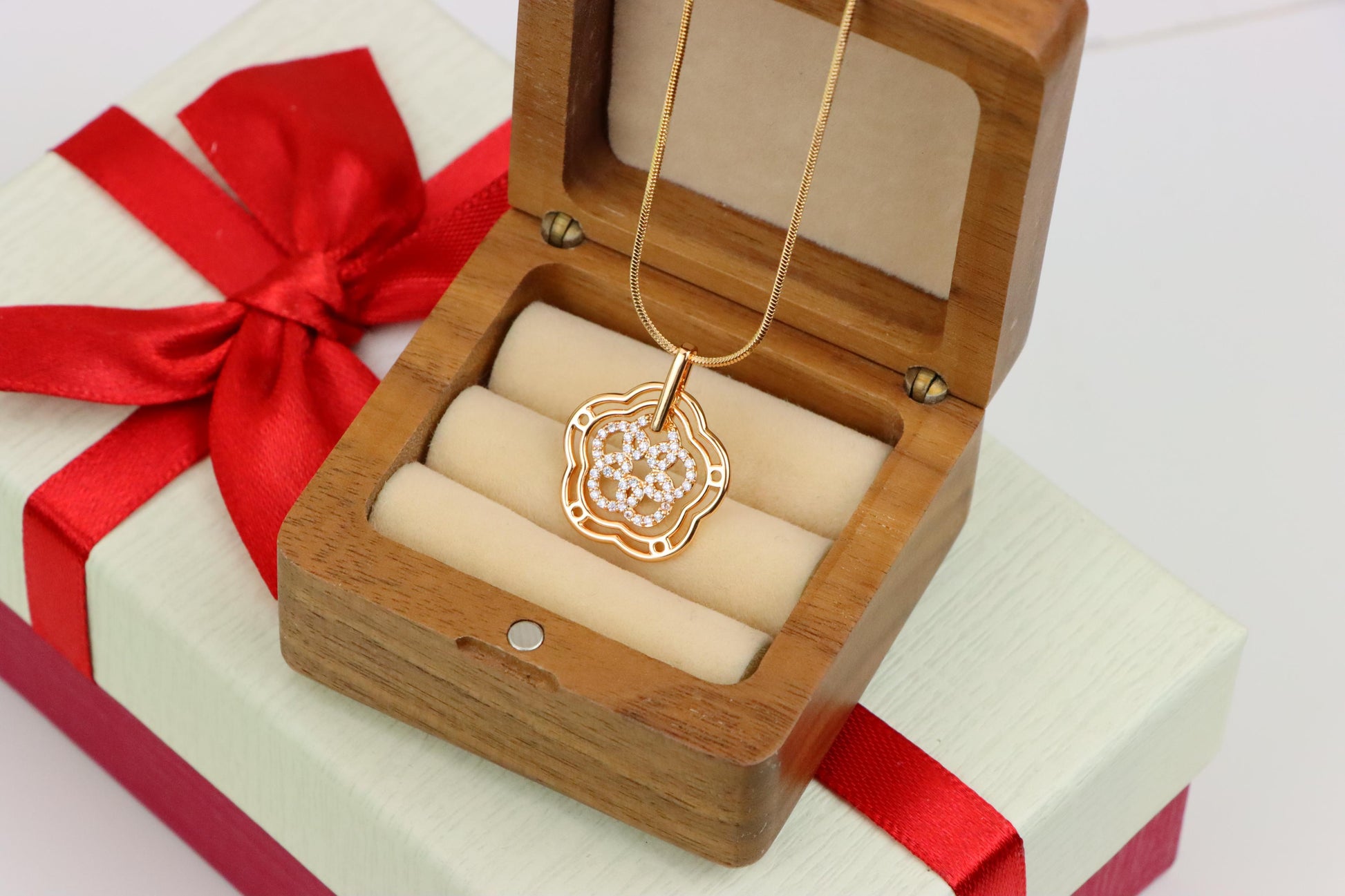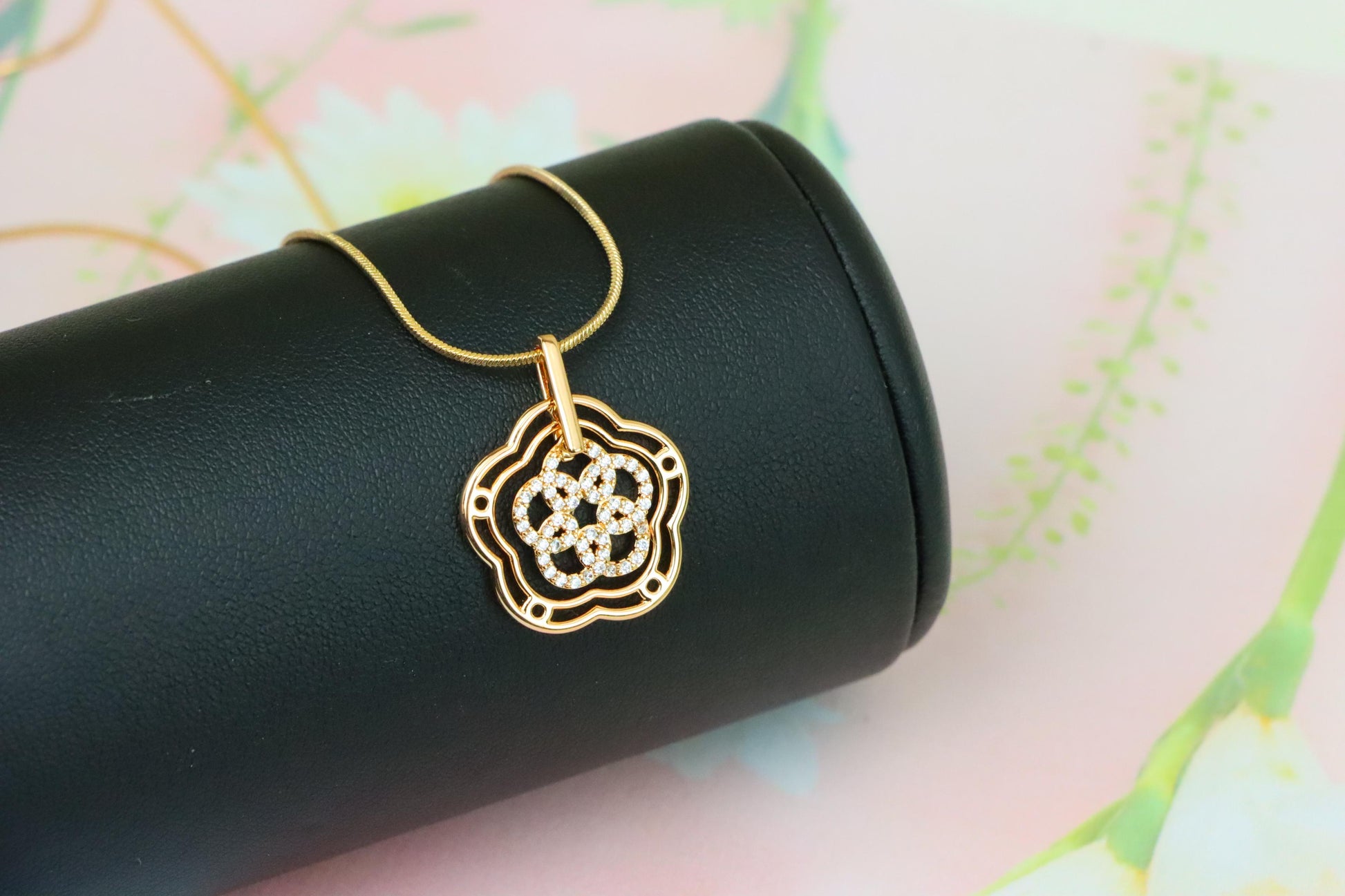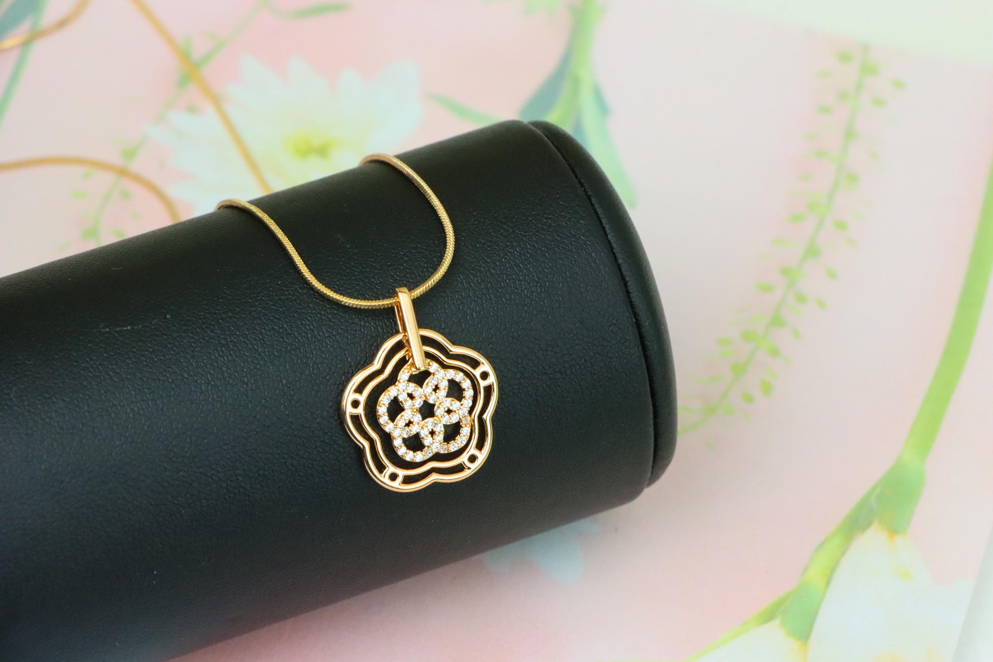 Designed to make a subtle yet elegant statement, this rose gold floral pendant combines symmetry with sparkle. Made with gold-plated high-quality brass and measuring approximately 0.79 x 0.79 inches, it's perfect for both casual and formal wear.