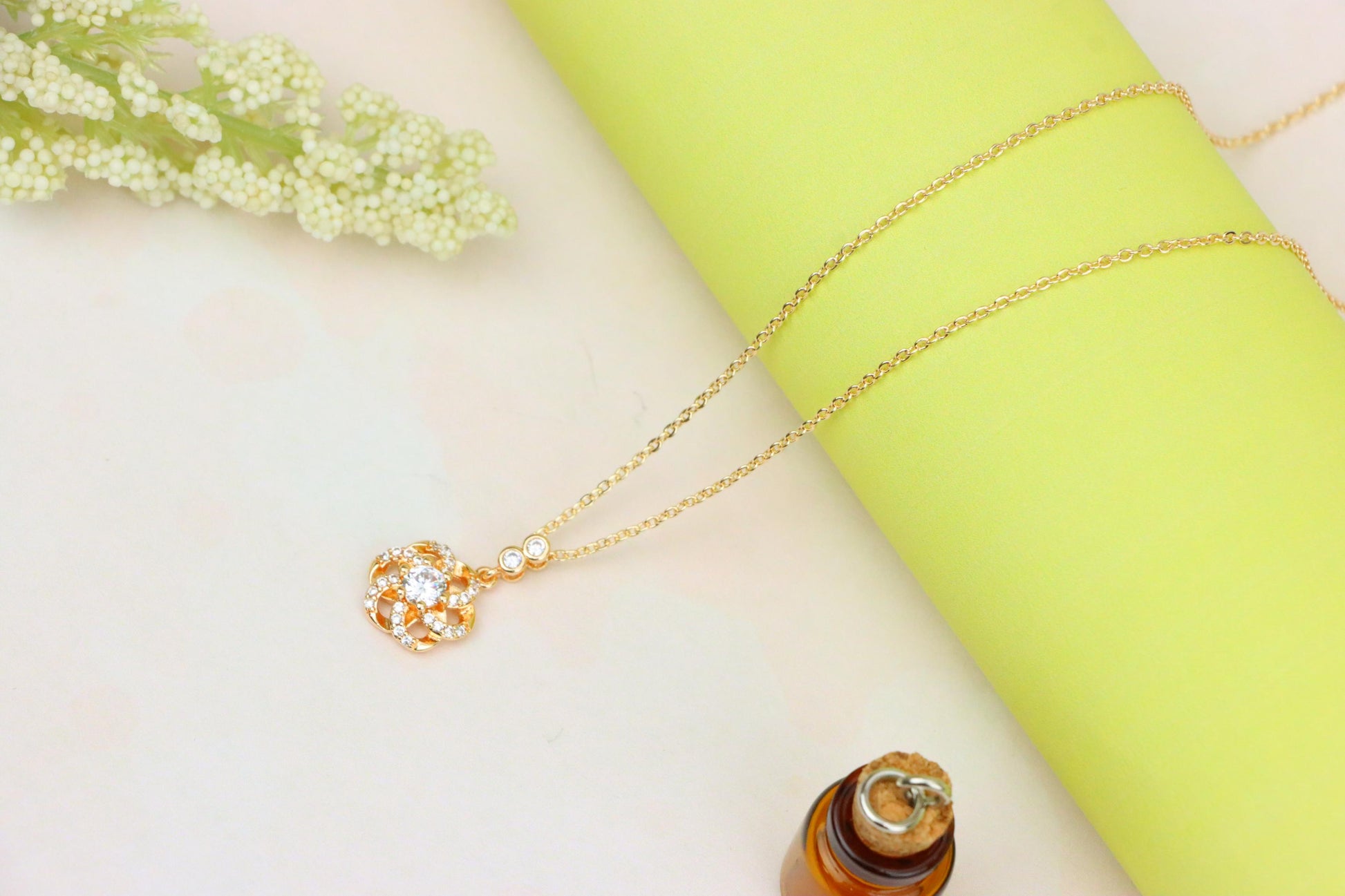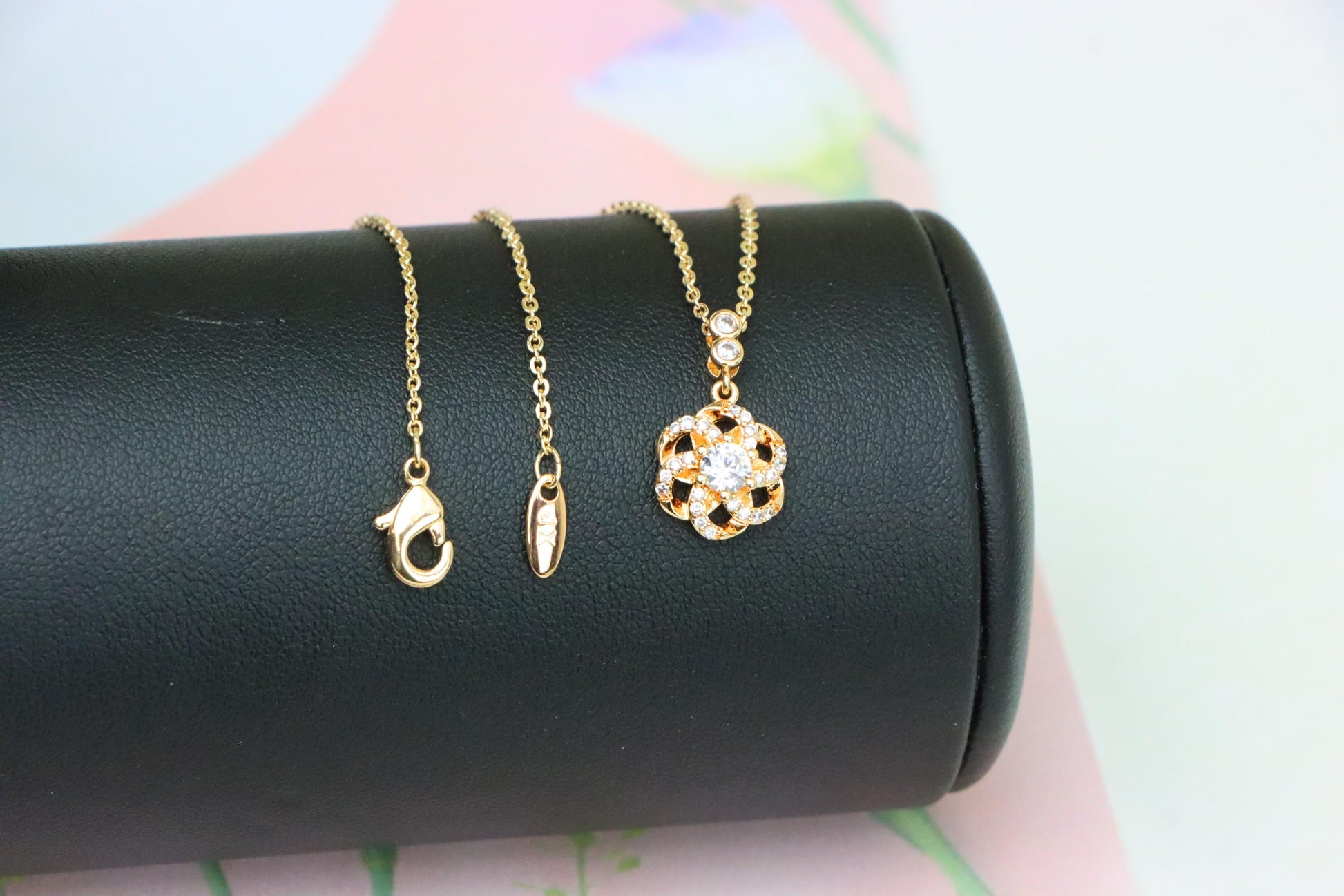 Rose Gold Flower Pendant Necklace with Crystal Detailing, XPNL1907