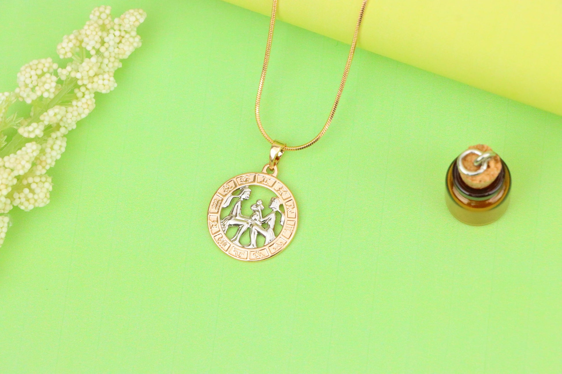 ✔ Features iconic Gemini twins surrounded by zodiac signs