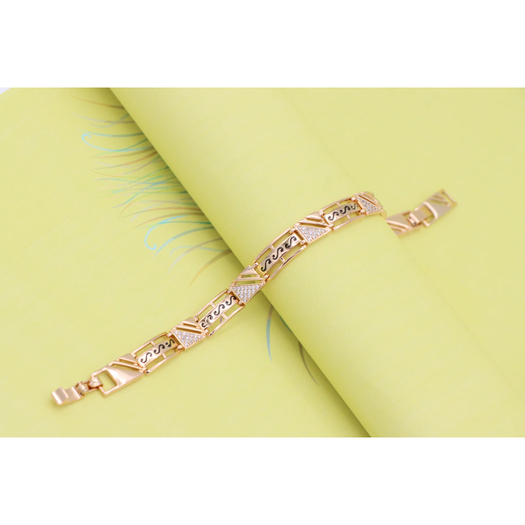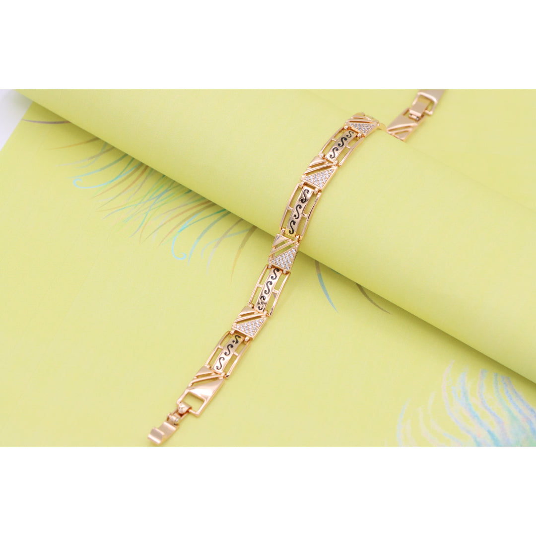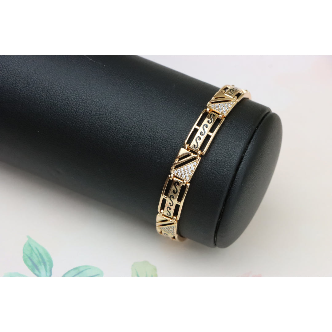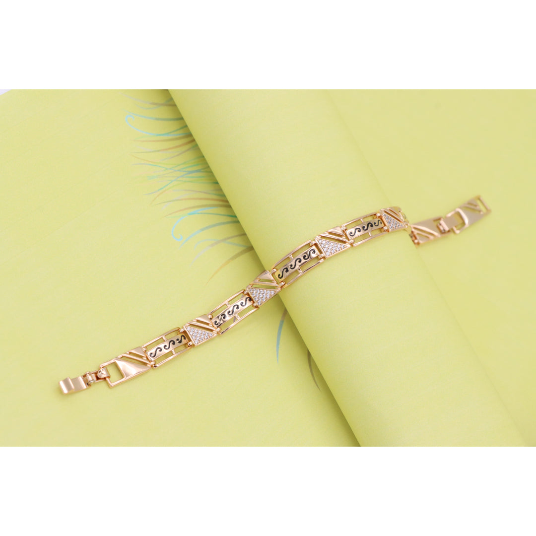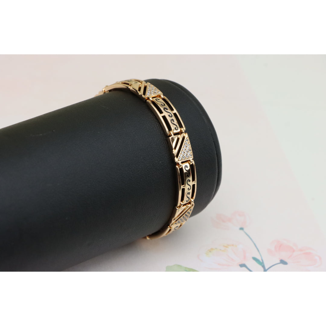 Make a bold statement with this uniquely designed rose gold bracelet featuring a mix of intricate patterns and sparkling details.