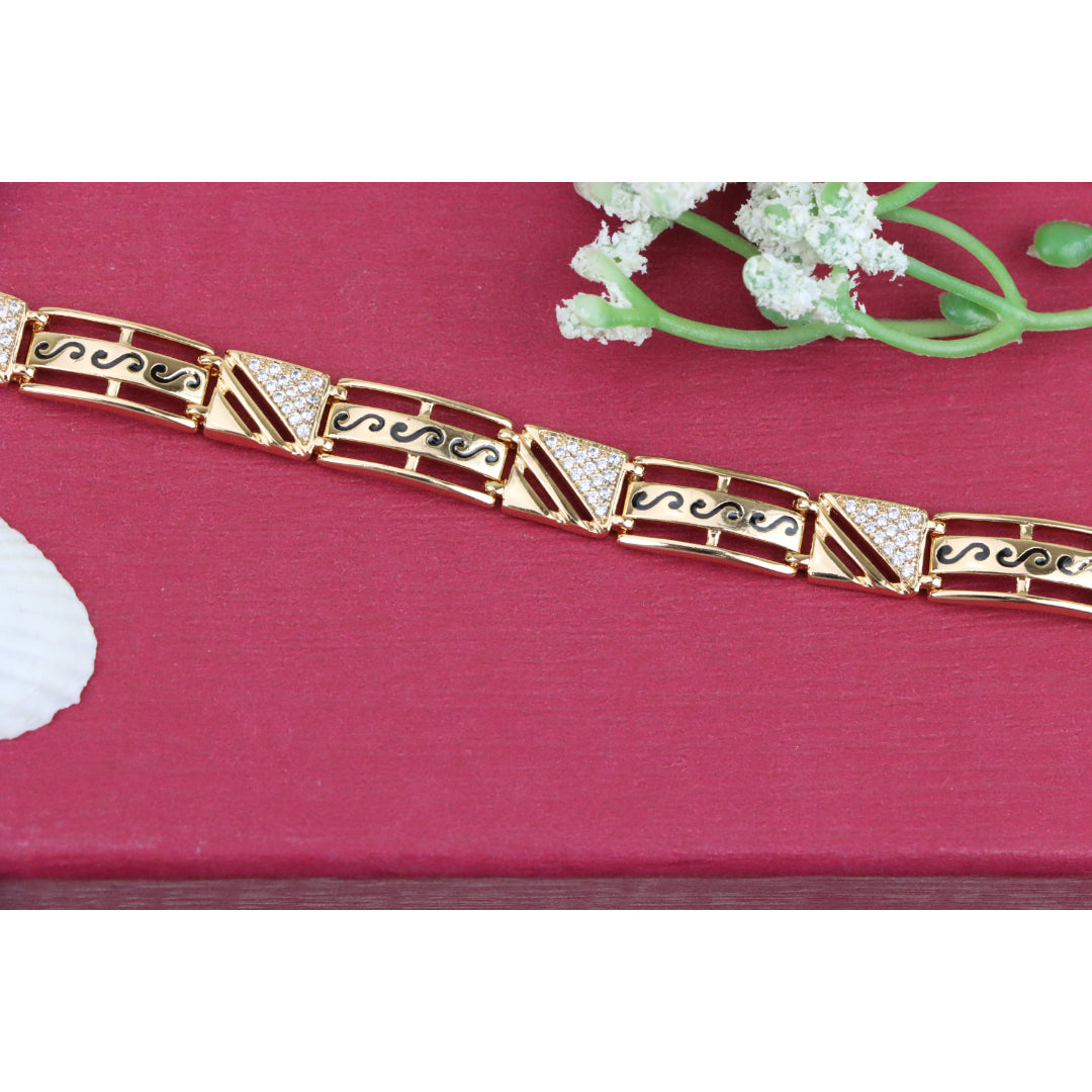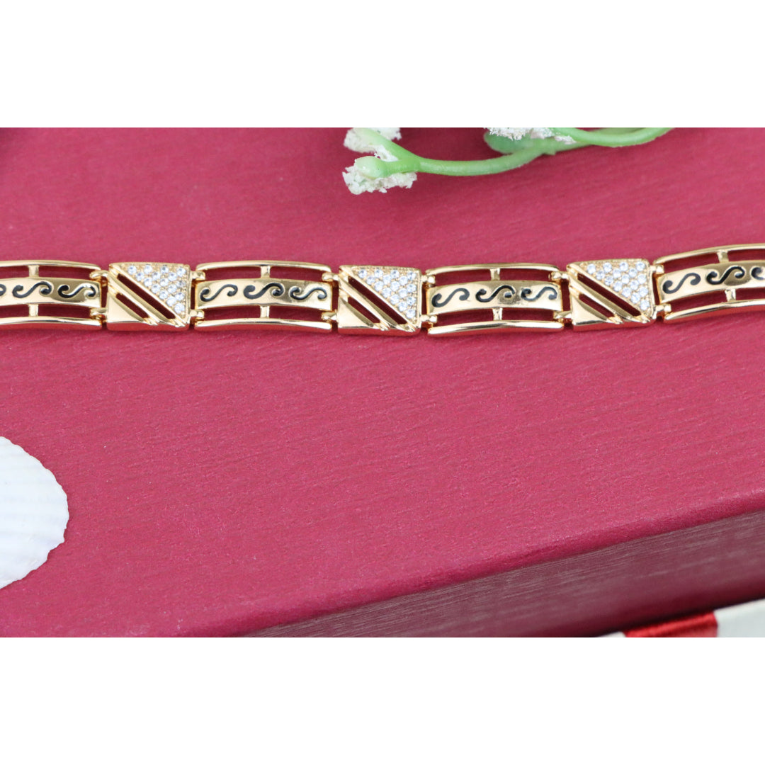 Rose Gold Geometric Link Bracelet with Black and Crystal Accents, XPBL0810
