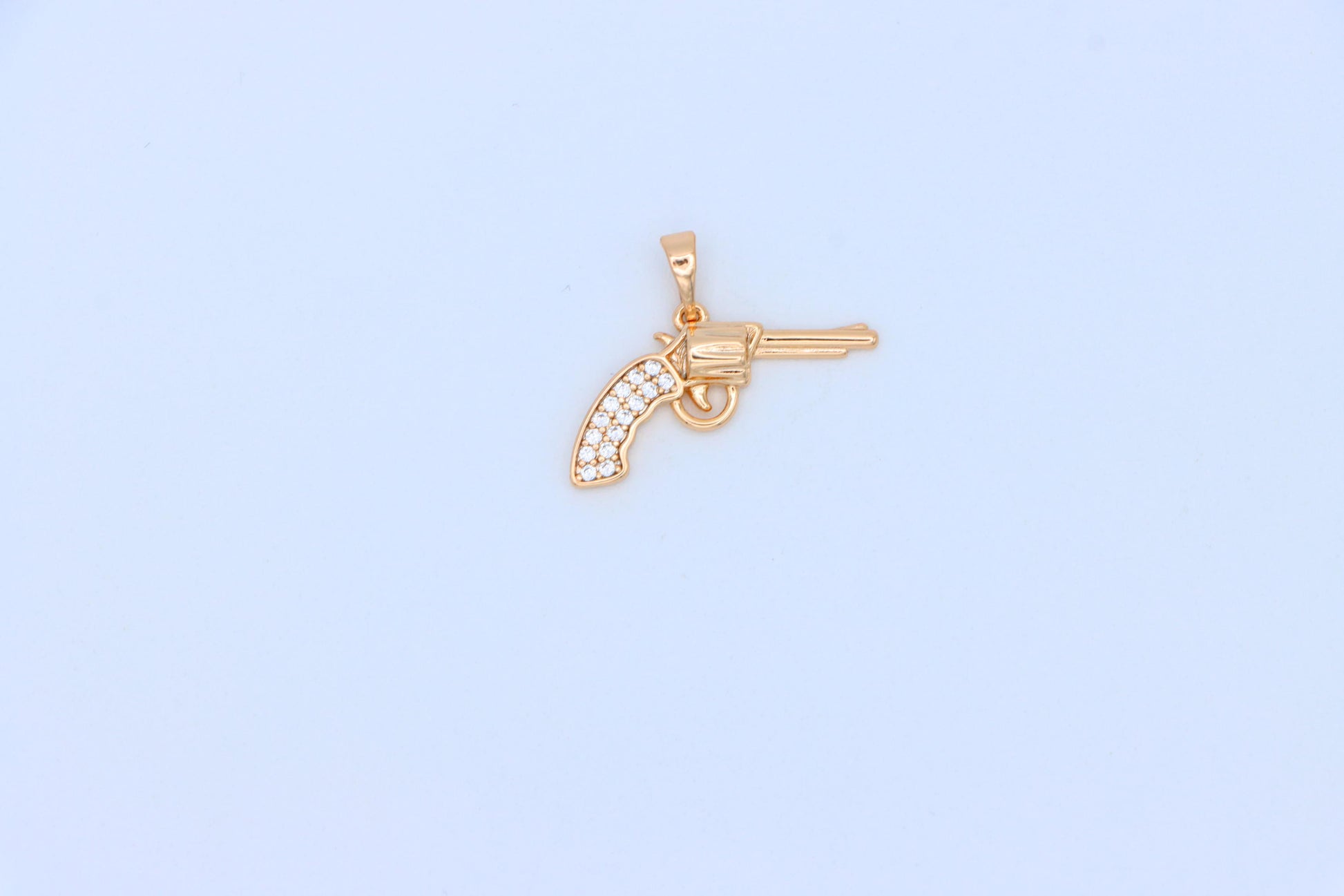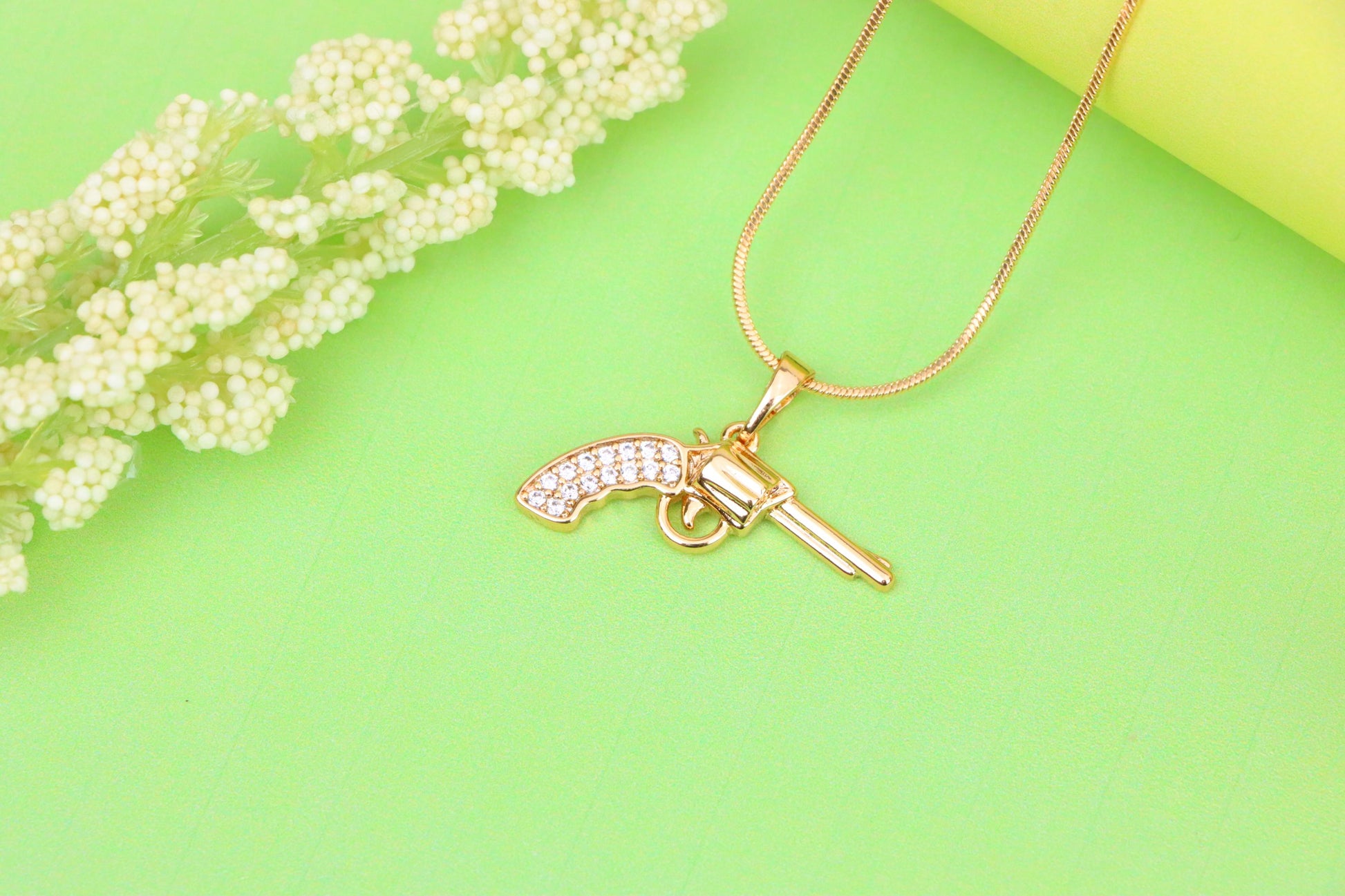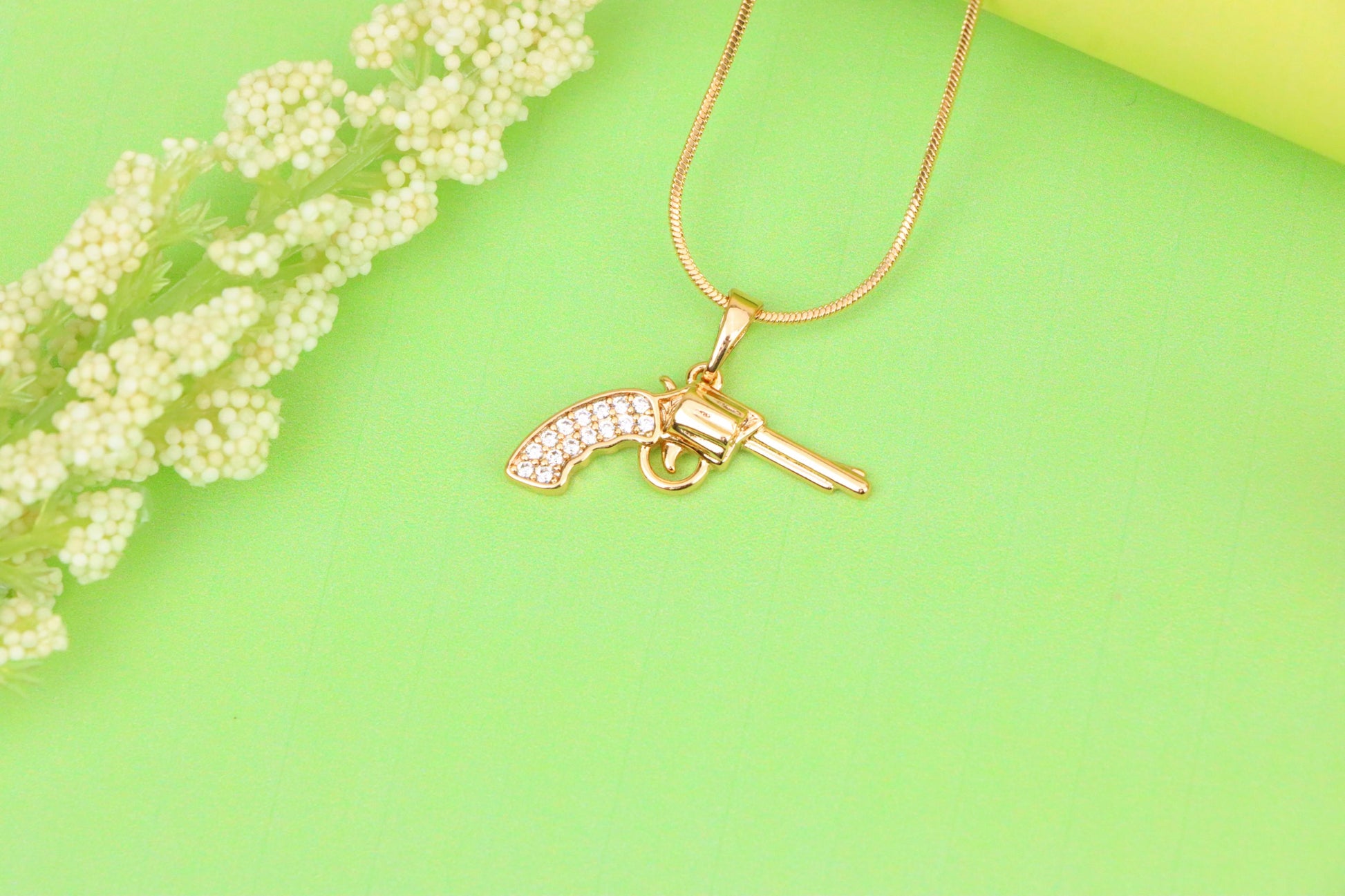 Striking rose gold pistol-shaped pendant with sparkling CZ detail.