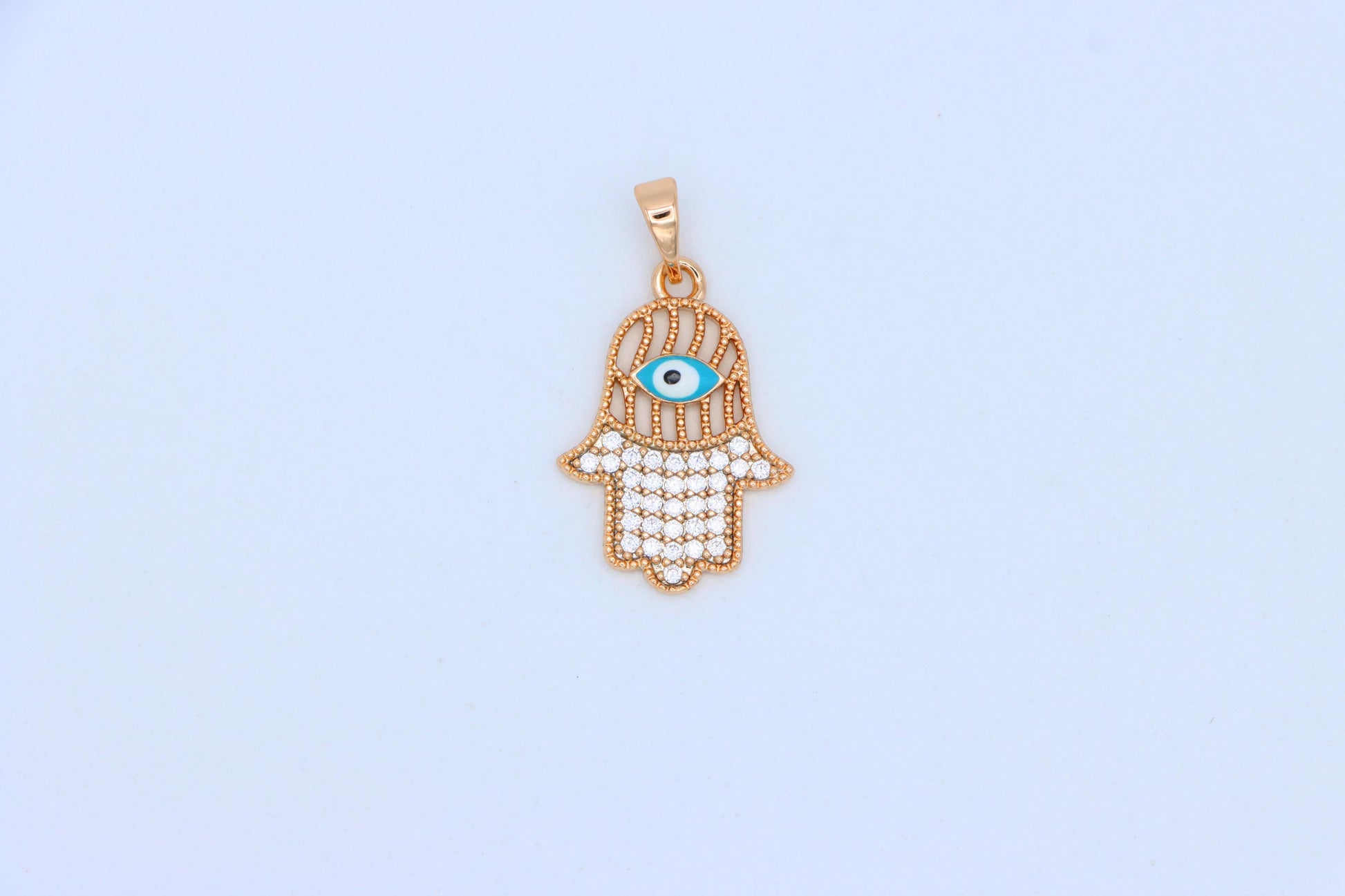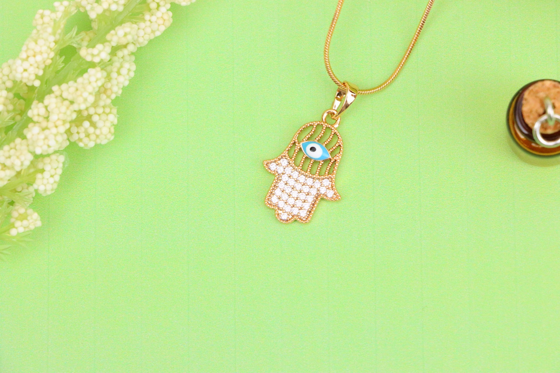 Rose Gold Hamsa Hand Pendant with Evil Eye and Crystal Accents, XPPT1609