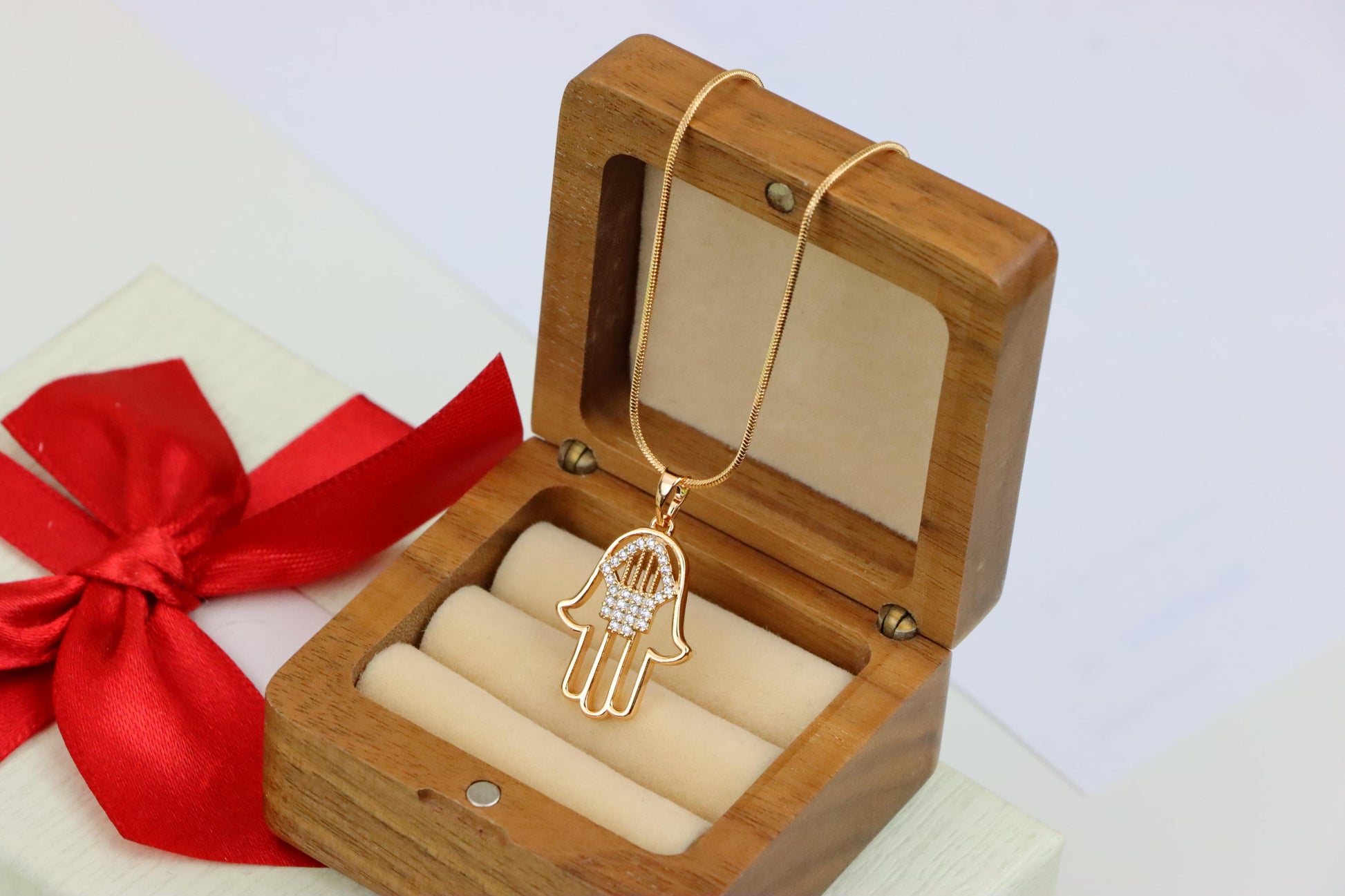 ✔️ Features iconic Hamsa hand design with embedded clear stones