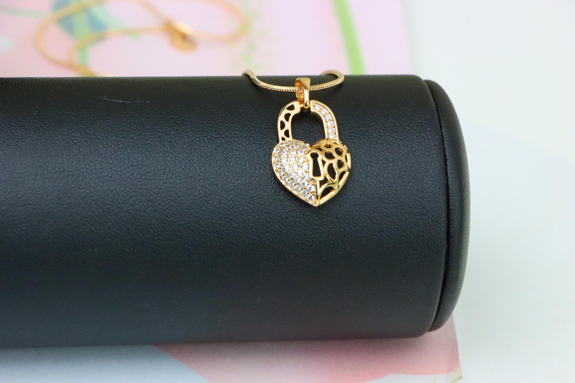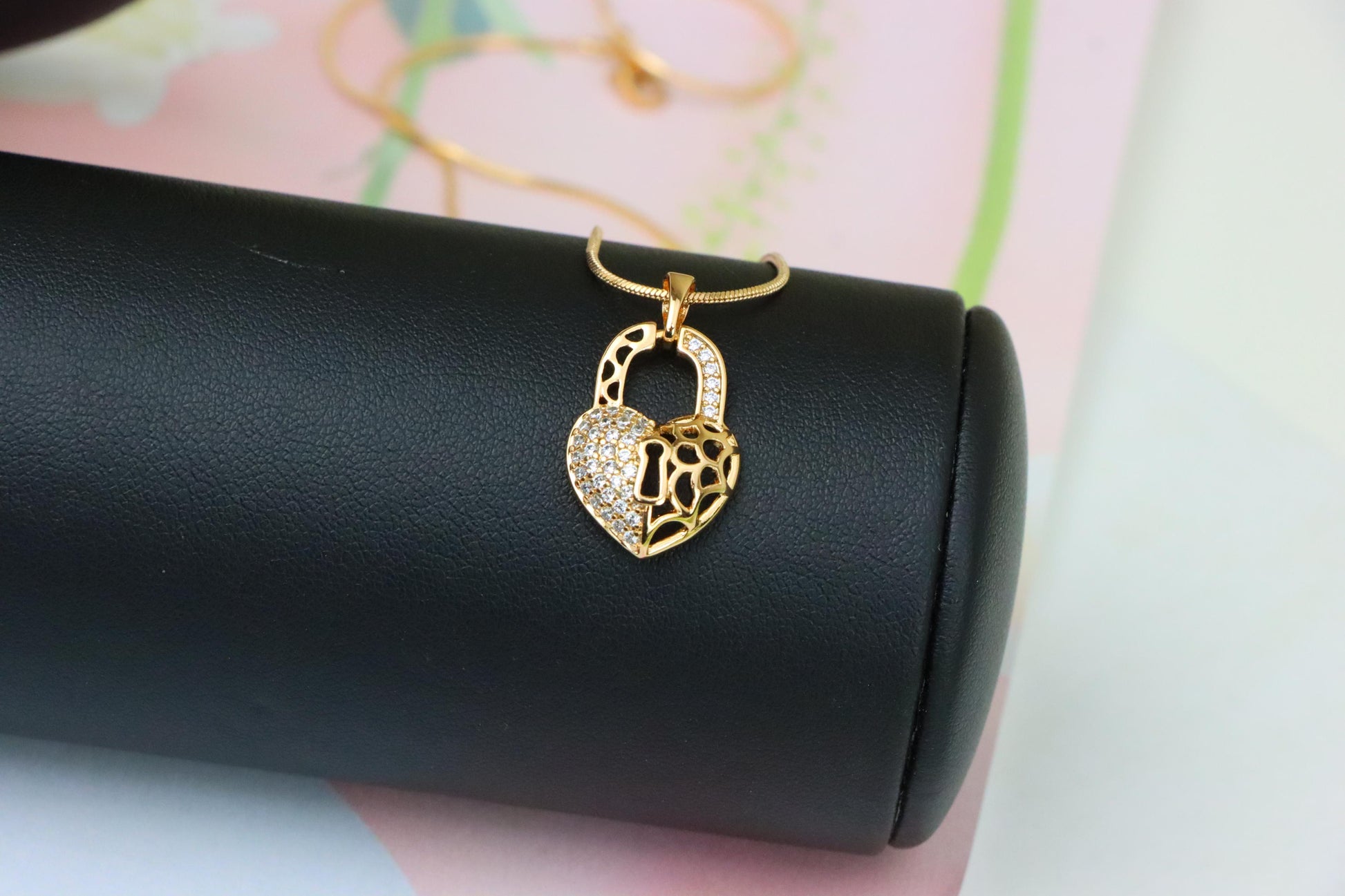 Rose Gold Heart Lock Pendant with Crystal Accents and Cutout Design, XPPT1252