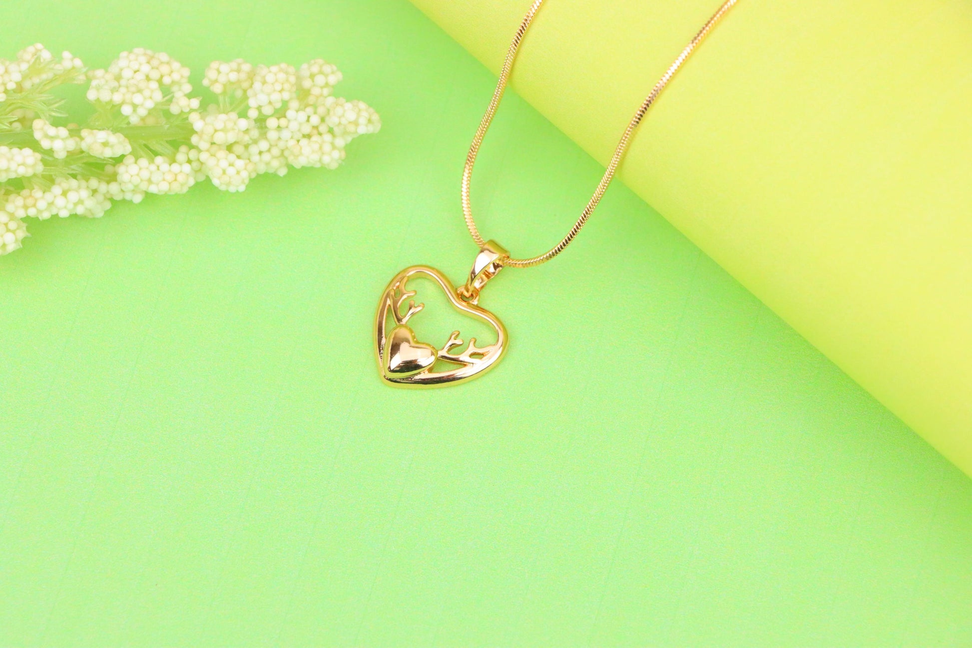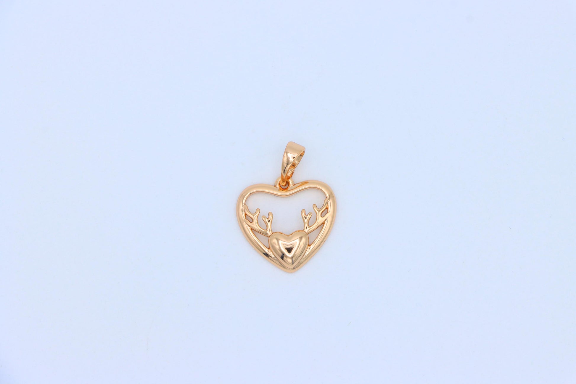Rose Gold Heart Pendant with Antler-Inspired Minimal Design, XPPT1248