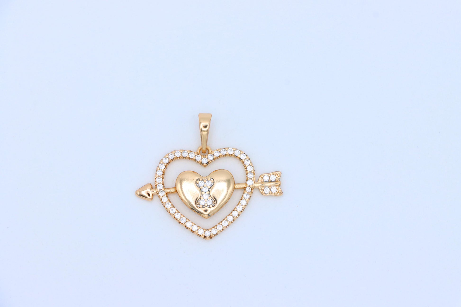 Charming heart-shaped pendant with arrow and crystal bear detail.