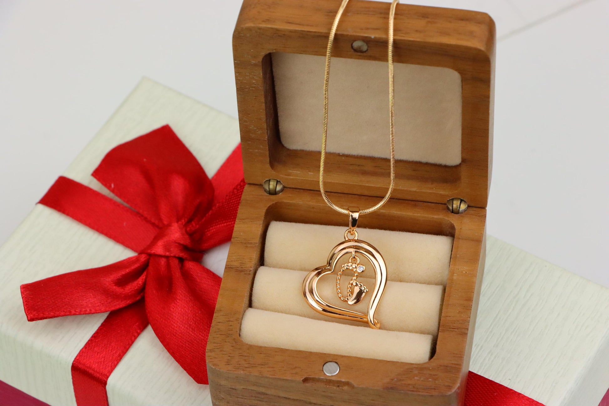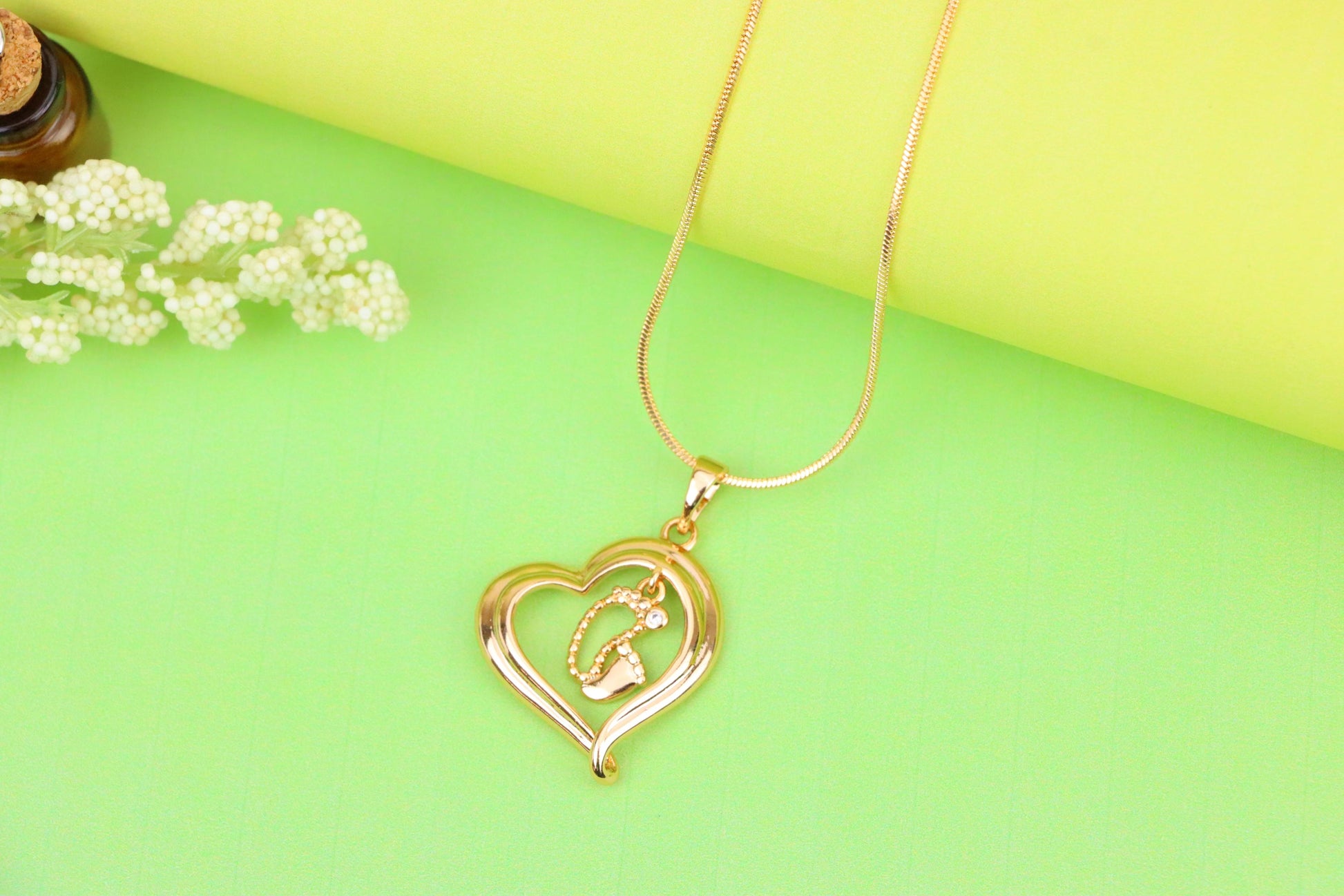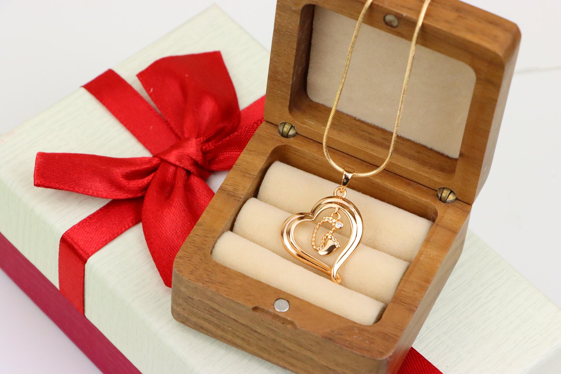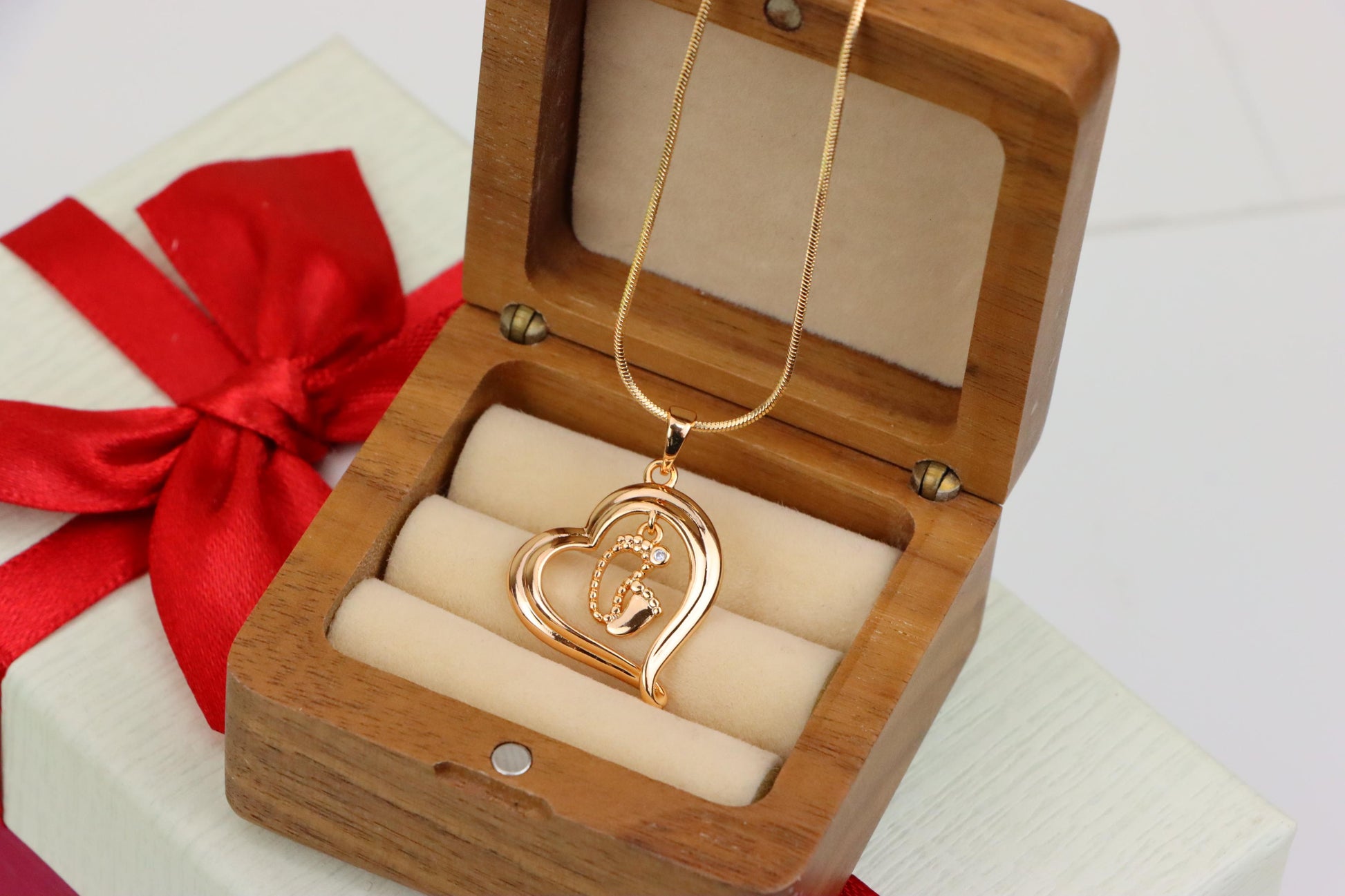 Rose Gold Heart Pendant with Baby Footprint Charm – Elegant Look, XPPT1199