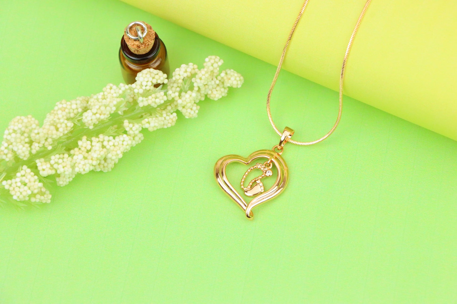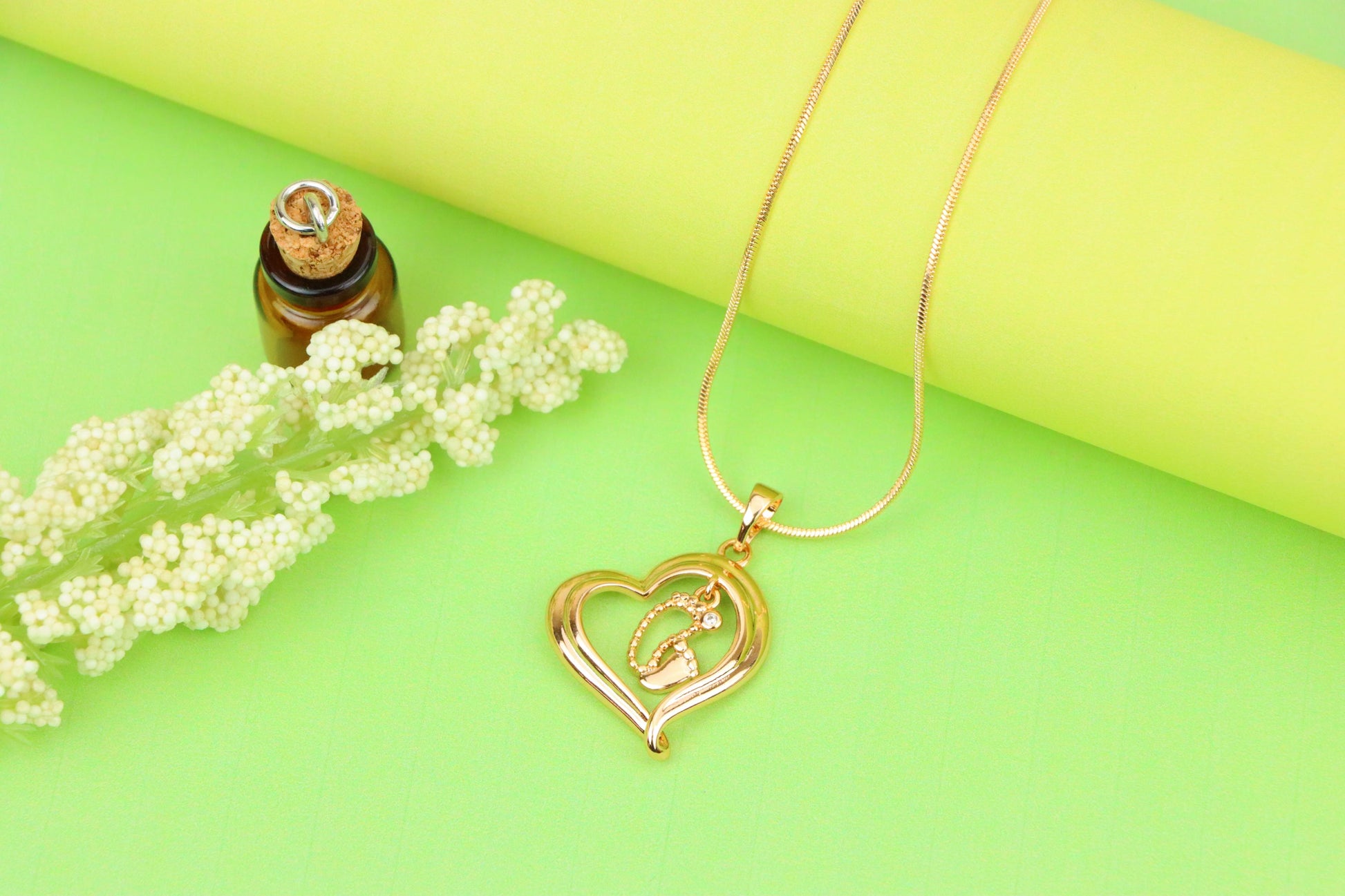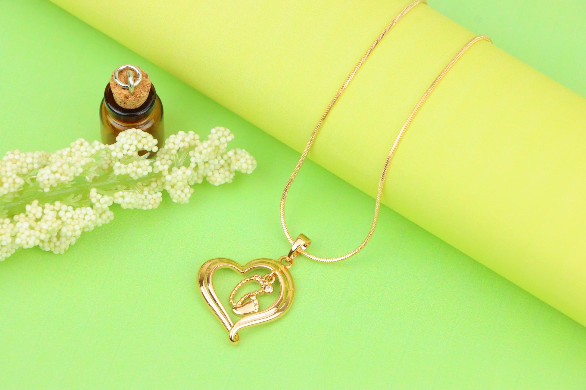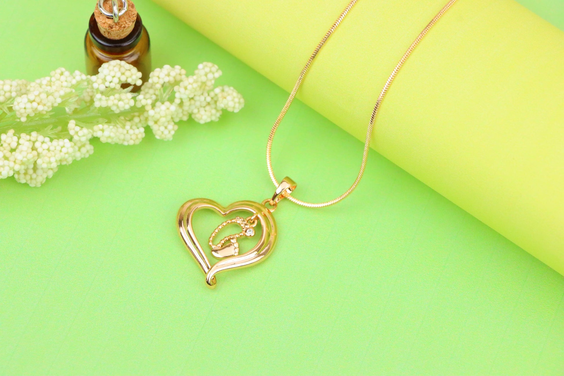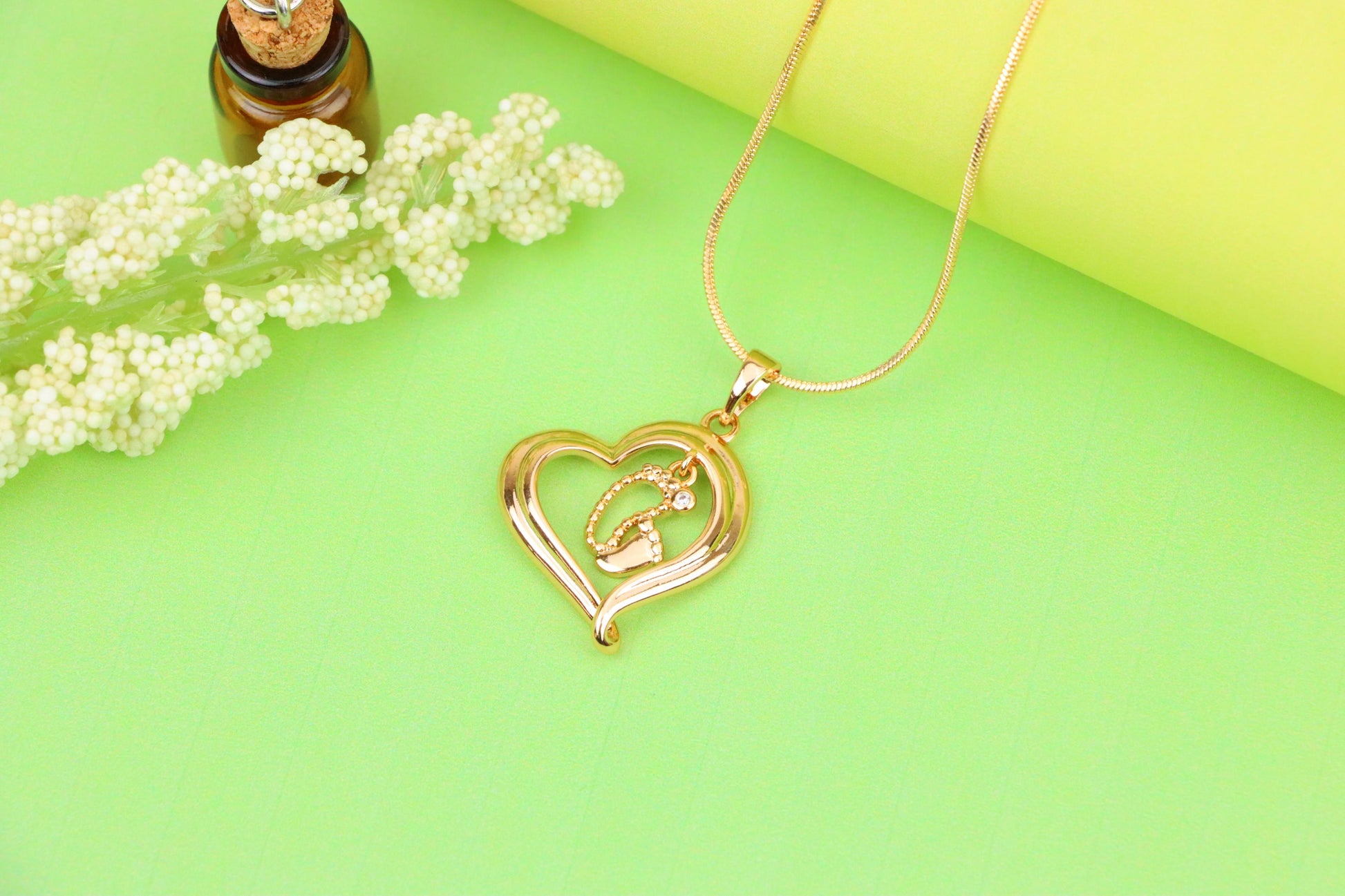 ✔️ Elegant rose gold finish with a symbolic heart and baby footprint