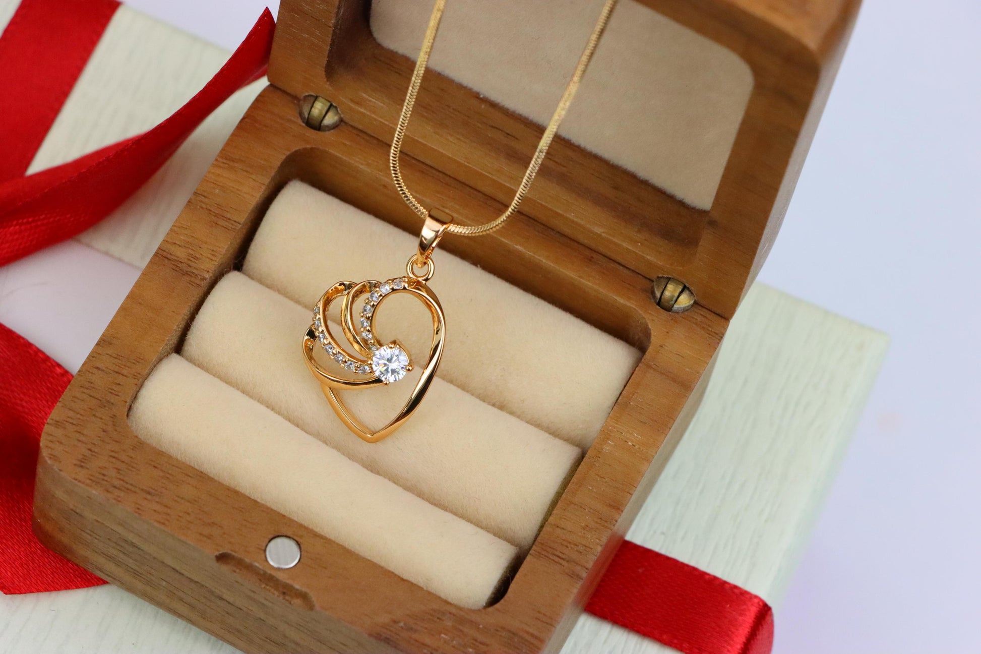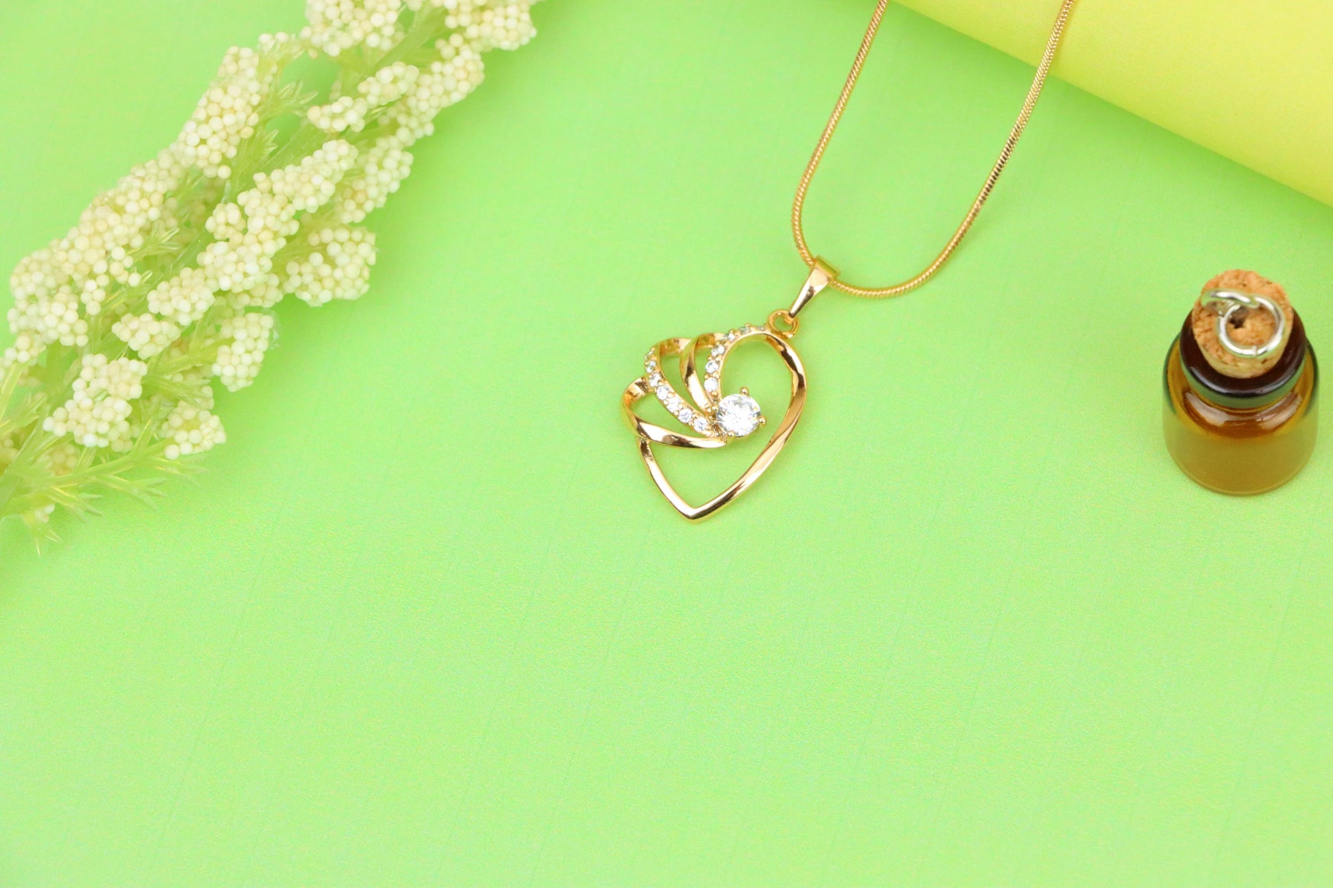 Elegant and romantic, this rose gold heart pendant features a sparkling CZ centerpiece and a graceful open swirl design—perfect for daily wear or gifting.